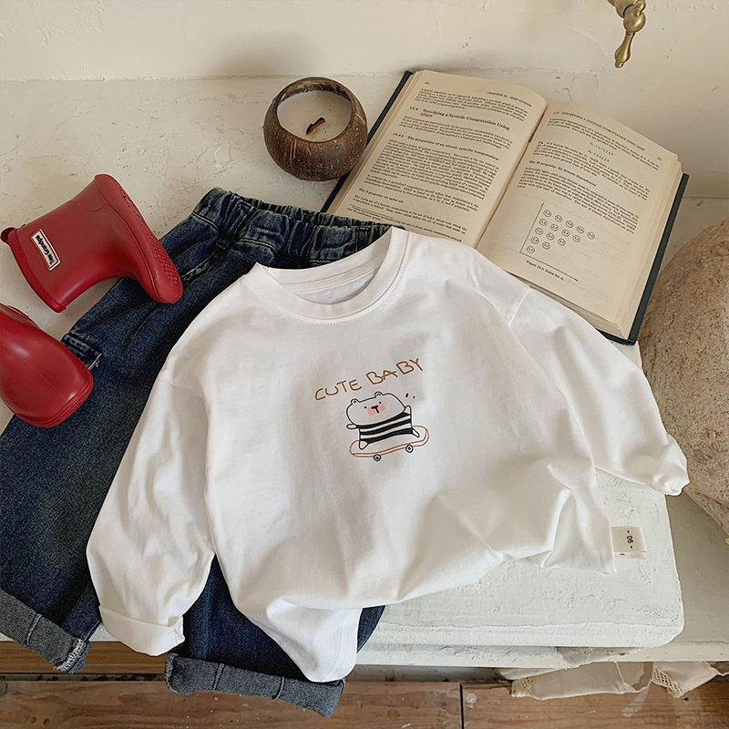2024 봄 새 어린이 긴팔 어린이 한국 봄 티셔츠 소년 면베이스 셔츠 어린이 착용 아기 봄