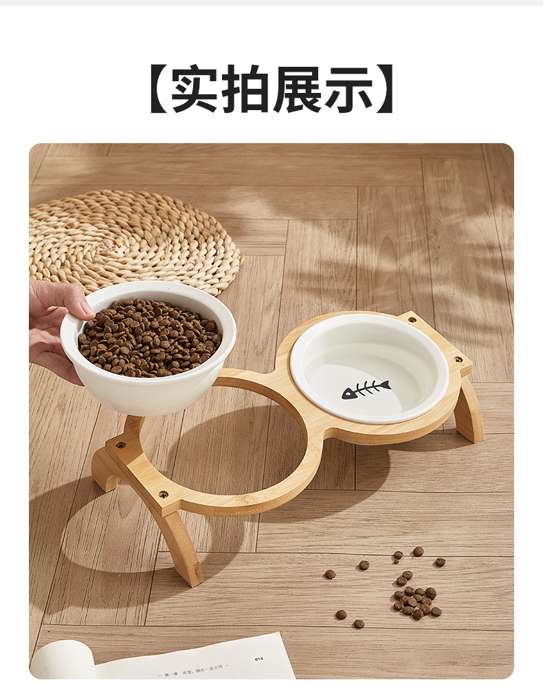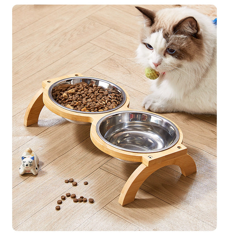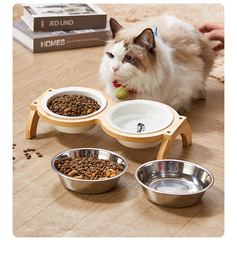 고양이 밥그릇 스테인리스 높이 조절 그릇 고양이 식탁 경추 보호 고양이 사료 그릇 물그릇 밥그릇 이중 그릇 일체형 강아지 그릇