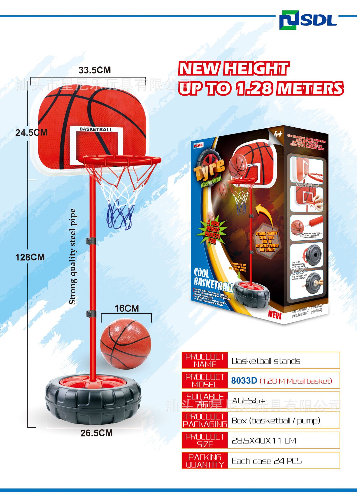 • 1.28m 철제 프레임 농구대 [영어 컬러 박스]