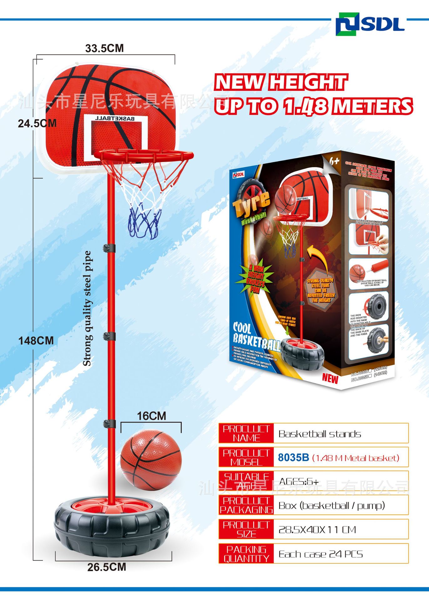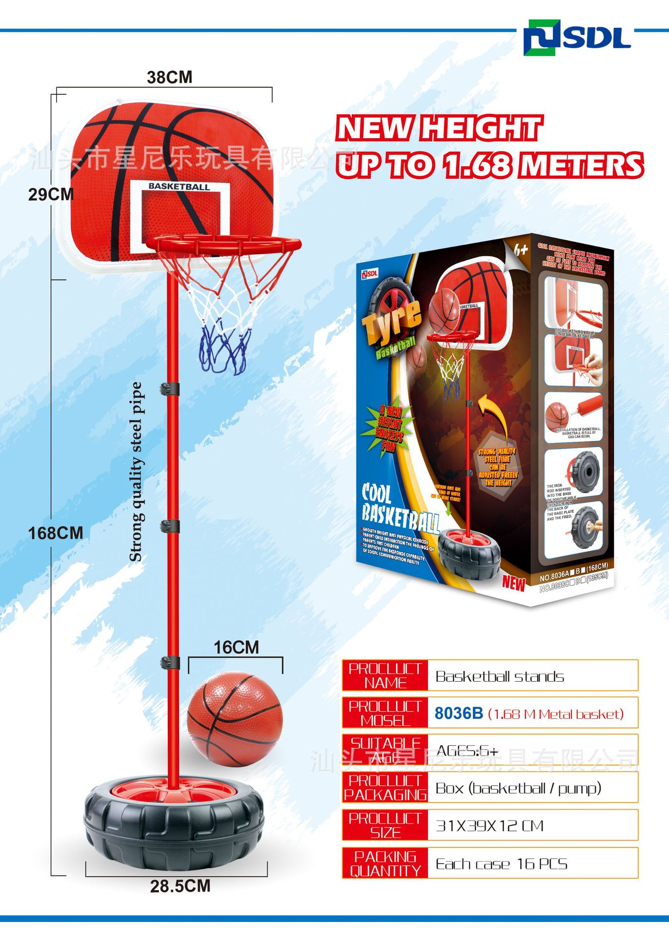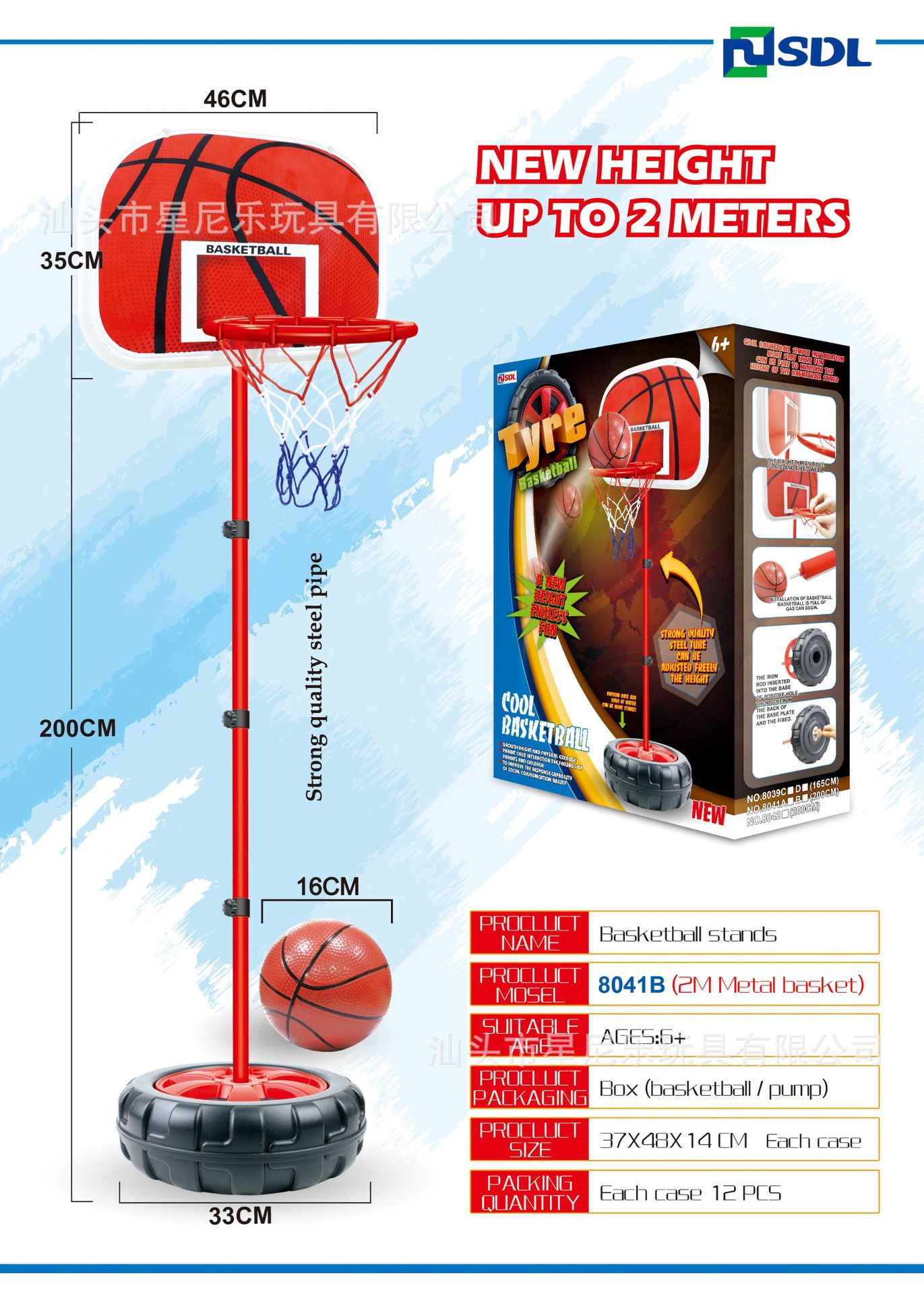 • 2m 철제 프레임 농구대 [영어 컬러 박스]