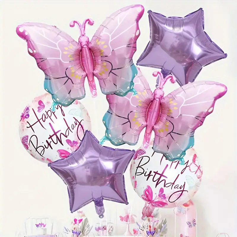 그라디언트 나비 다섯개 별 풍선 빔 생일 파티 장면 레이아웃 알루미늄 필름 풍선 세트