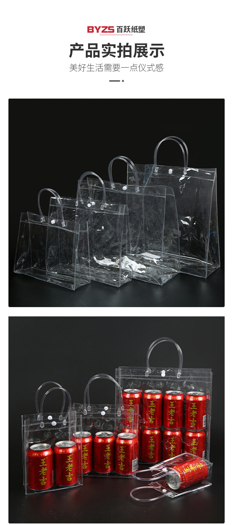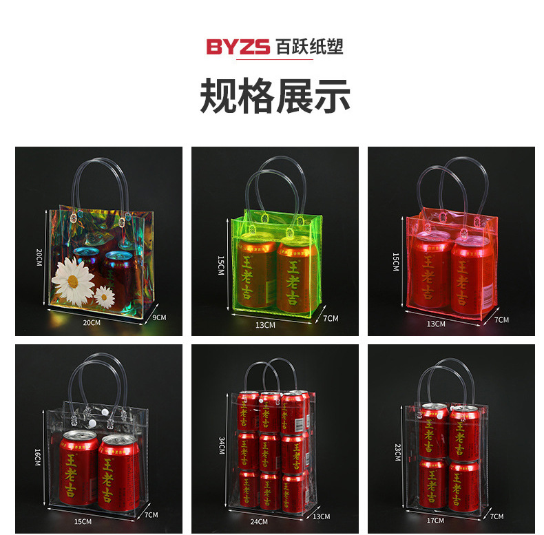 PVC 플라스틱 투명 휴대용 선물 가방, 맞춤형 로고 인쇄, 단오절 쌀만두, 꽃, 선물 포장 가방 주문 제작