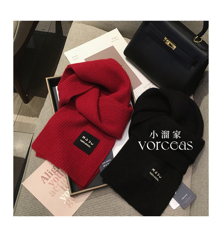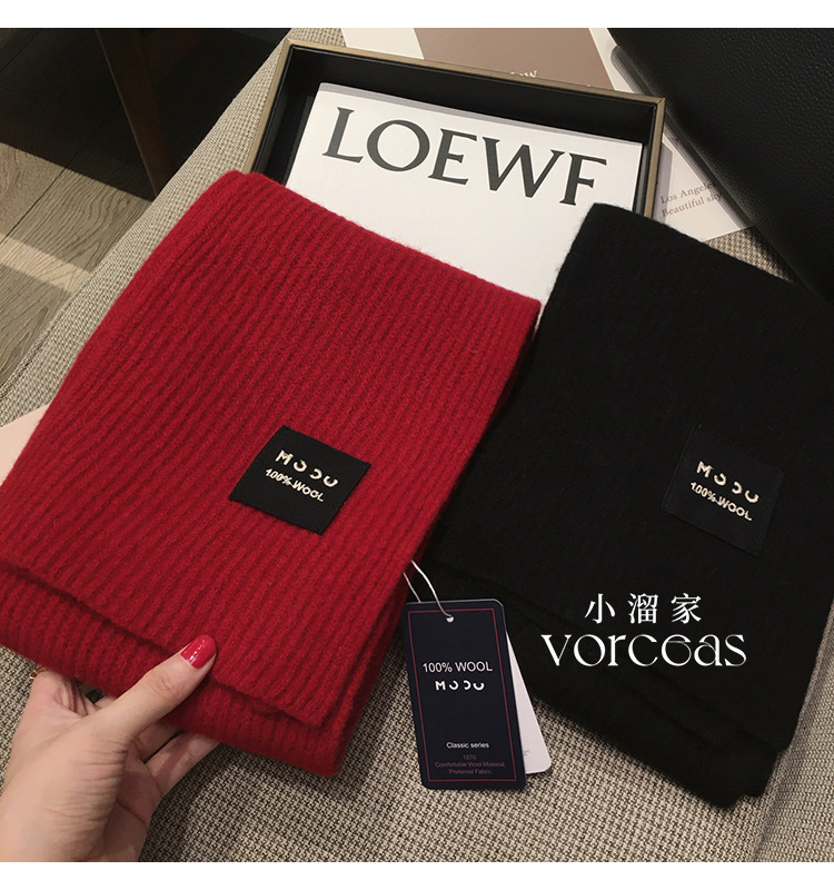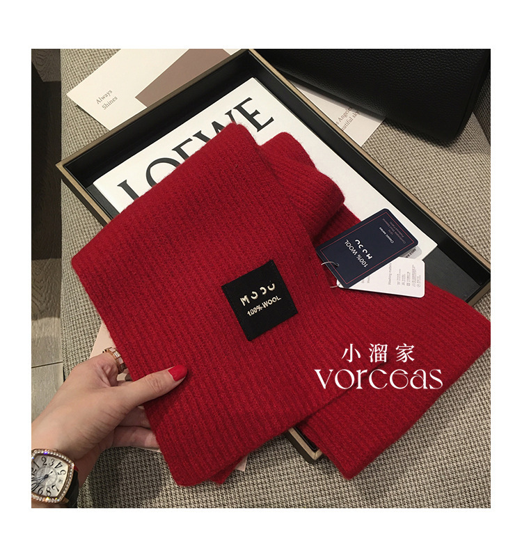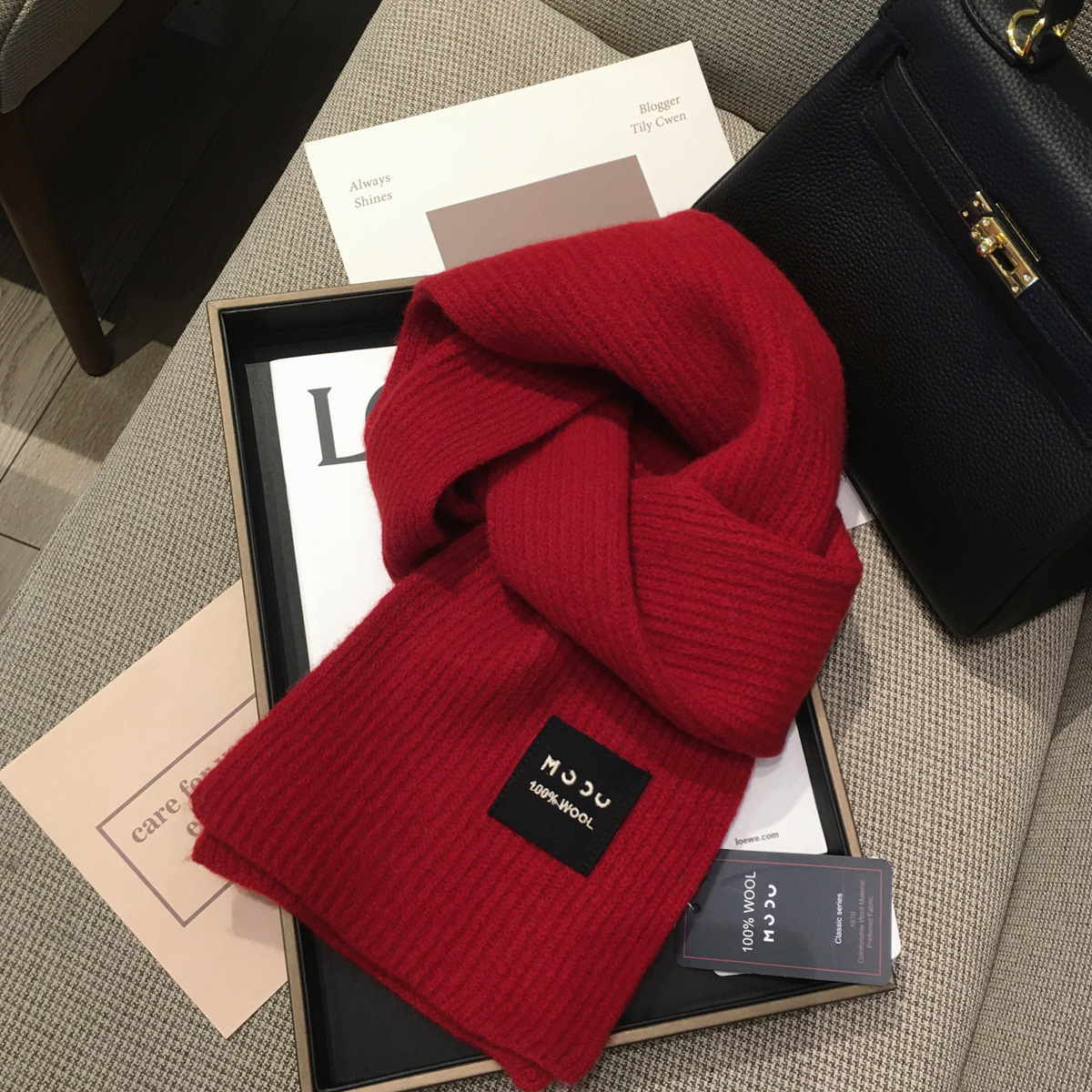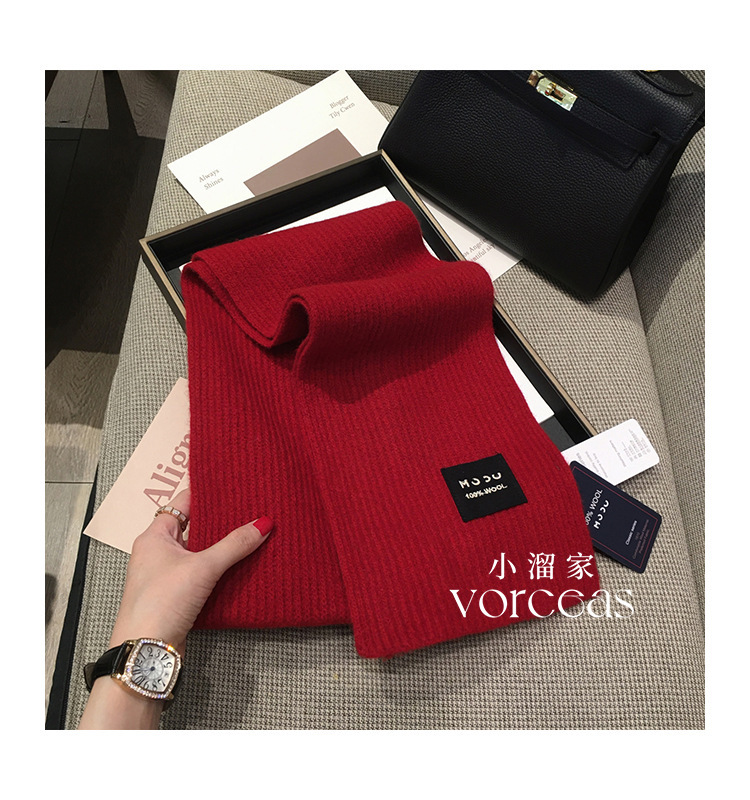 100 순수 울 레드 스카프 여자 겨울 올 매치 솔리드 컬러 캐시미어 연인을위한 따뜻한 니트 스카프스토어 가기