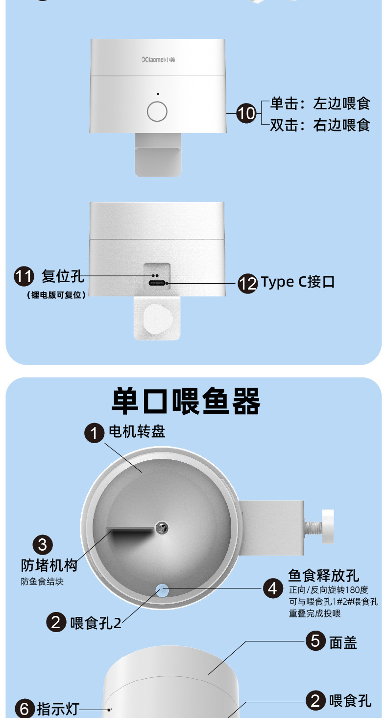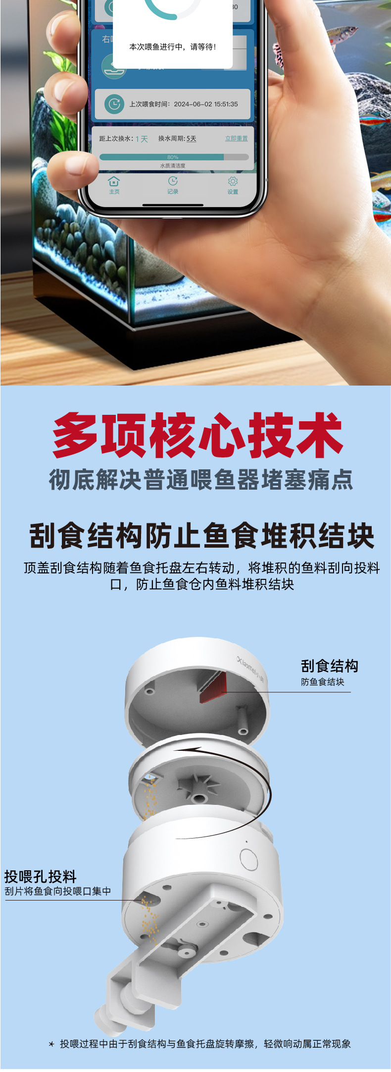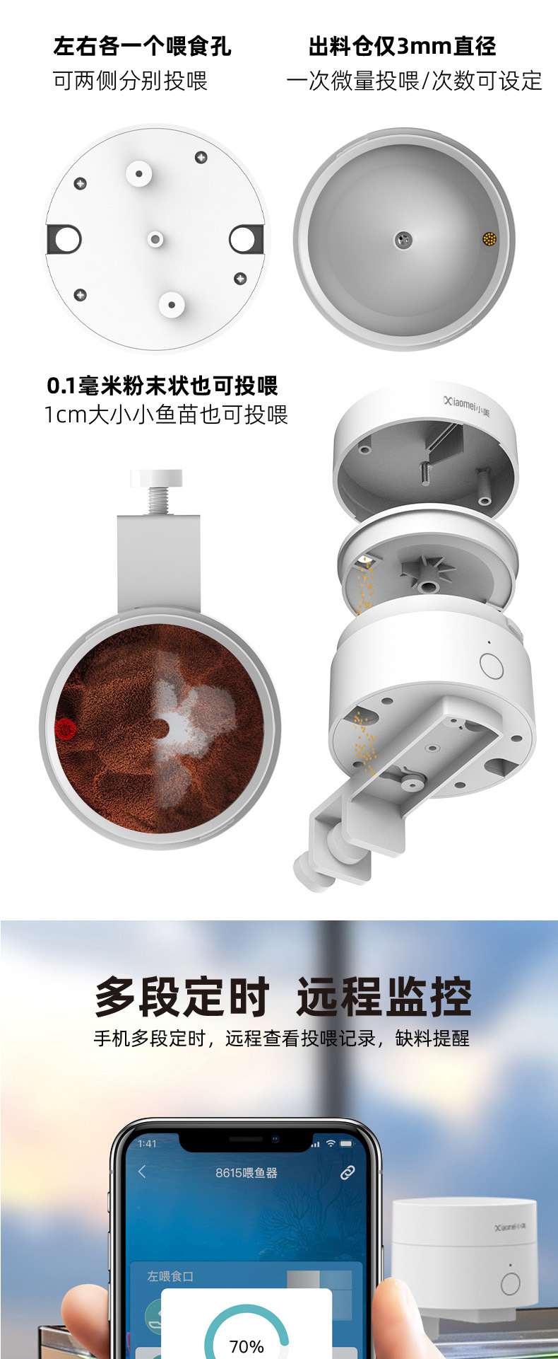 (단일구멍) 분리형 급식기는 어항을 막히지 않으며, 스마트 타이밍 초소형 물고기 급식기는 WiFi 원격 제어를 통해 작동합니다.