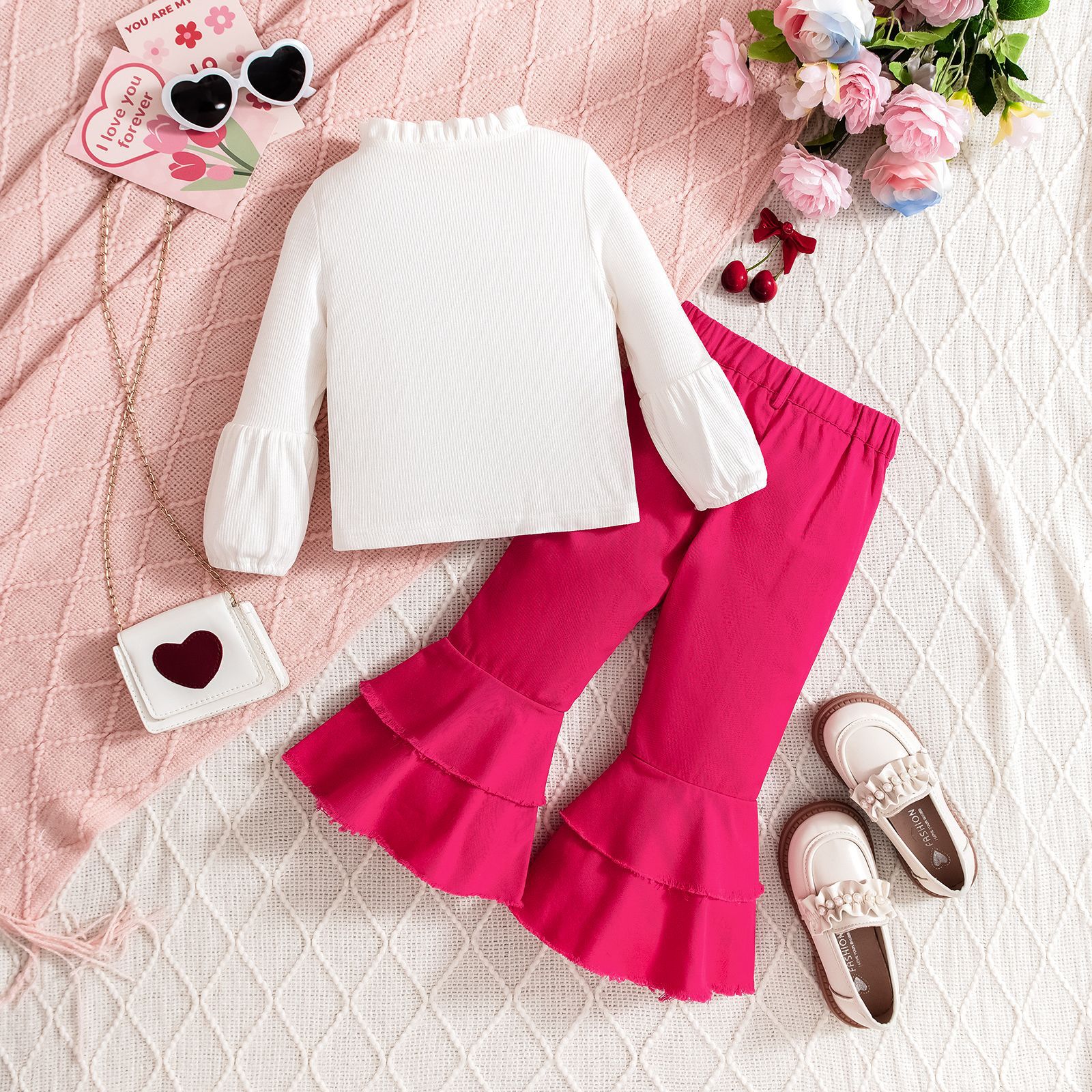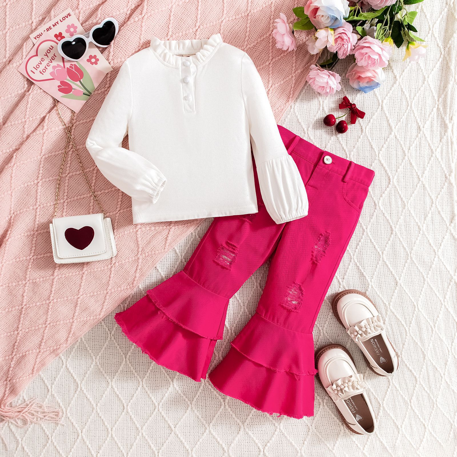아마존 대외 무역 어린이 세트 유럽과 미국의 봄과 가을 소녀 퍼프 슬리브 하이 칼라 탑 데님 홀드 혼 바지 세트