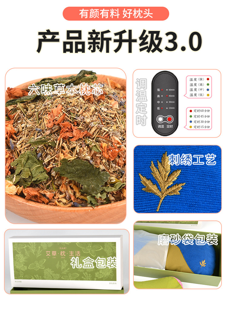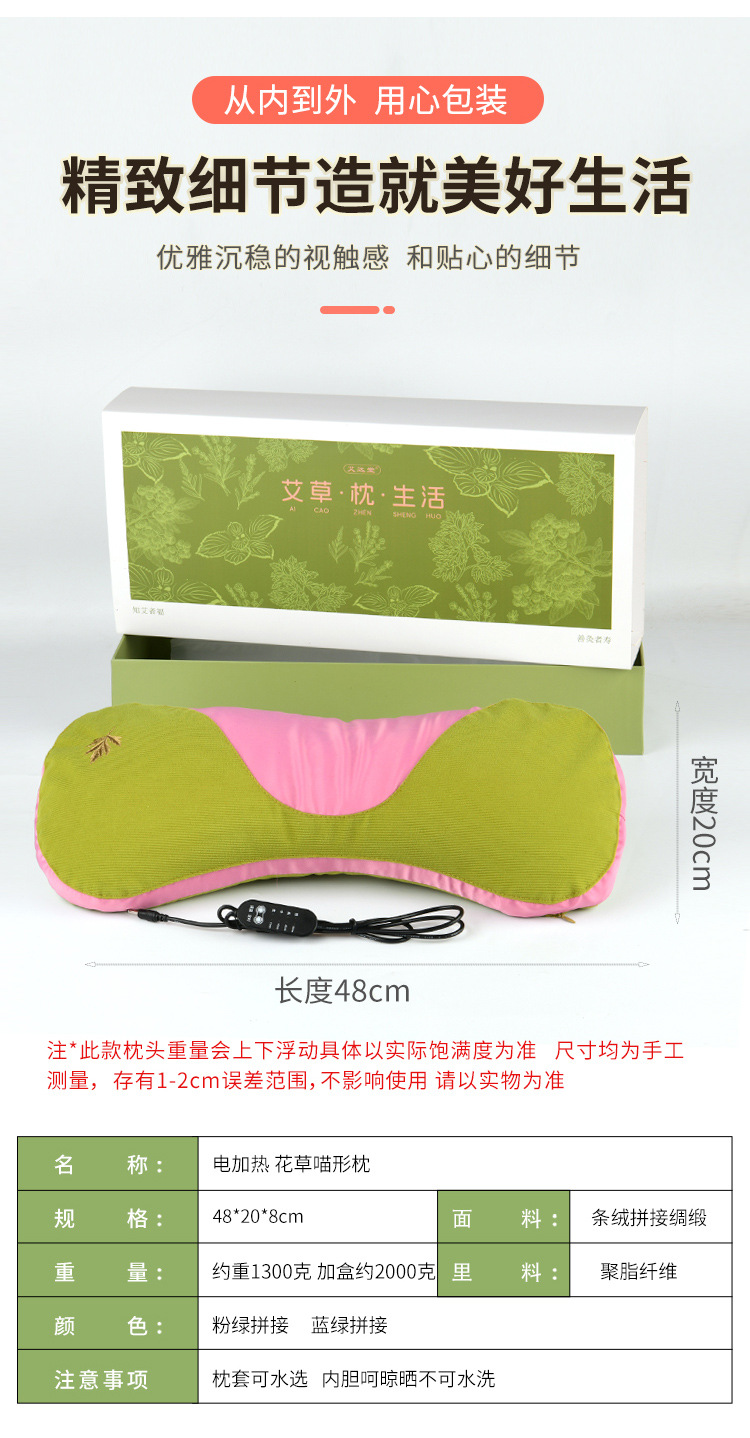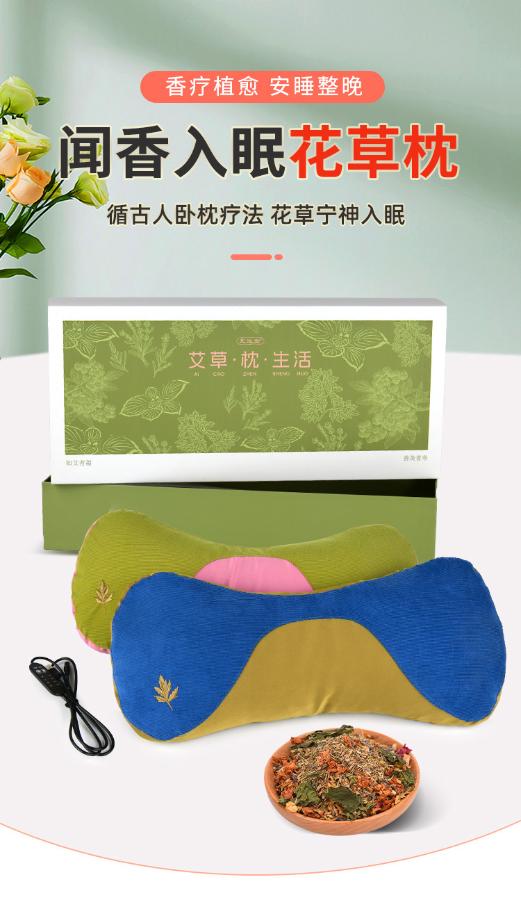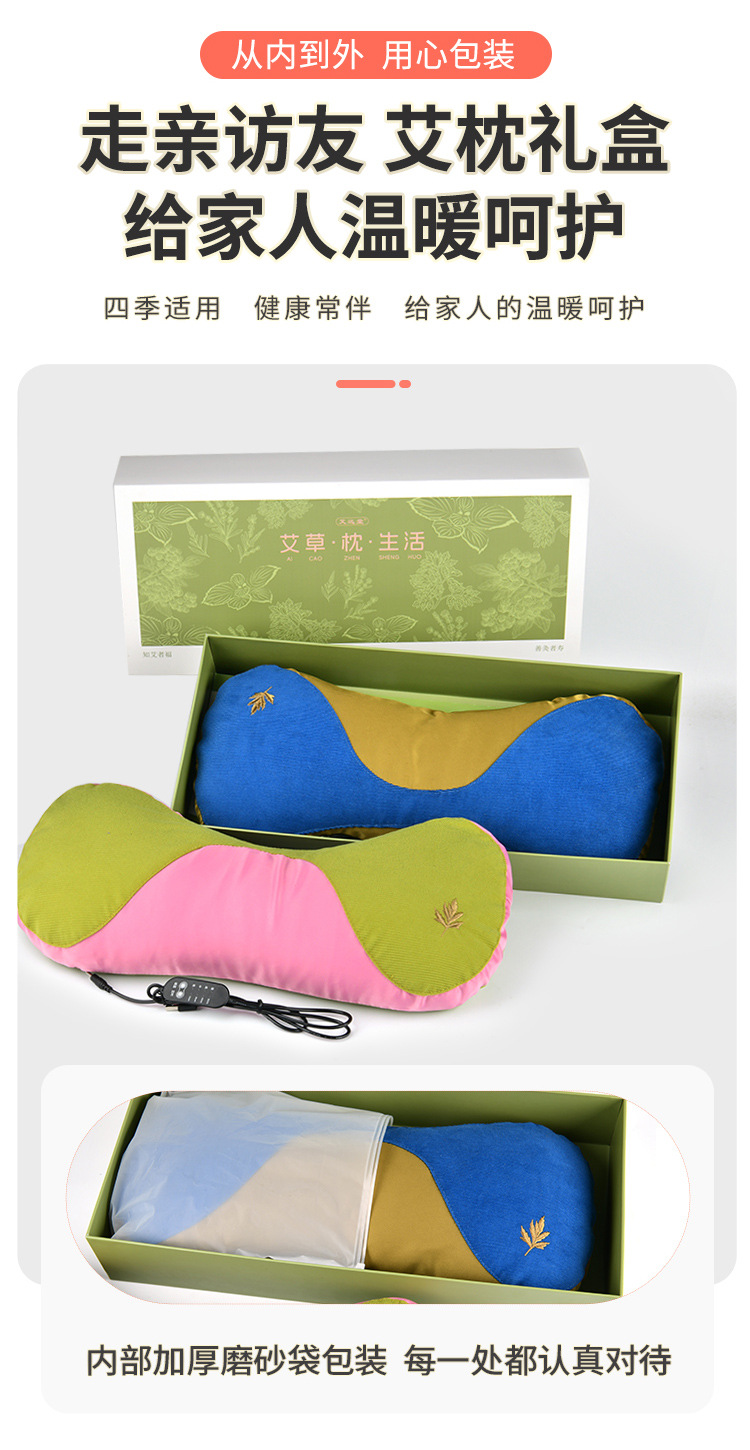 Wormwood 베개 선물 상자 Moxibustion 건강 베개 도매 겨울 뜨거운 압축 Wormwood 자궁 경부 척추 물리 치료 홈 난방 쑥 베개