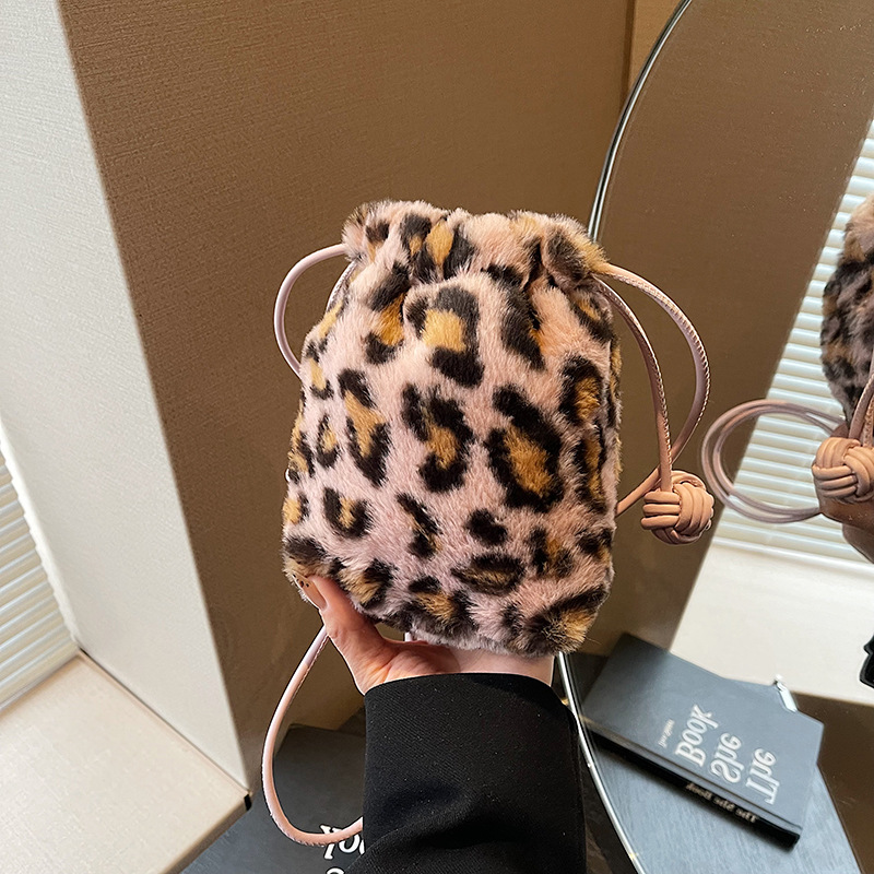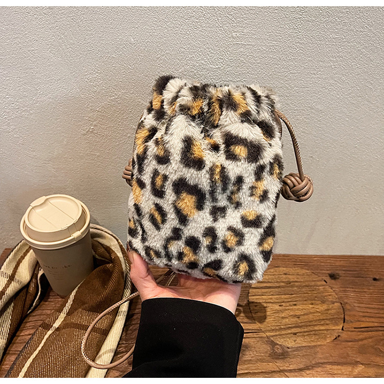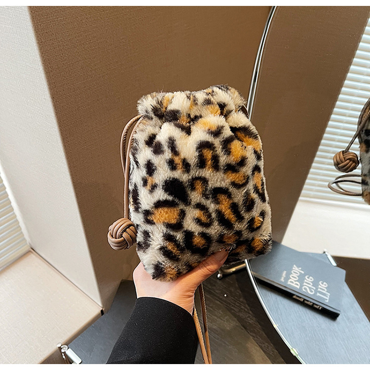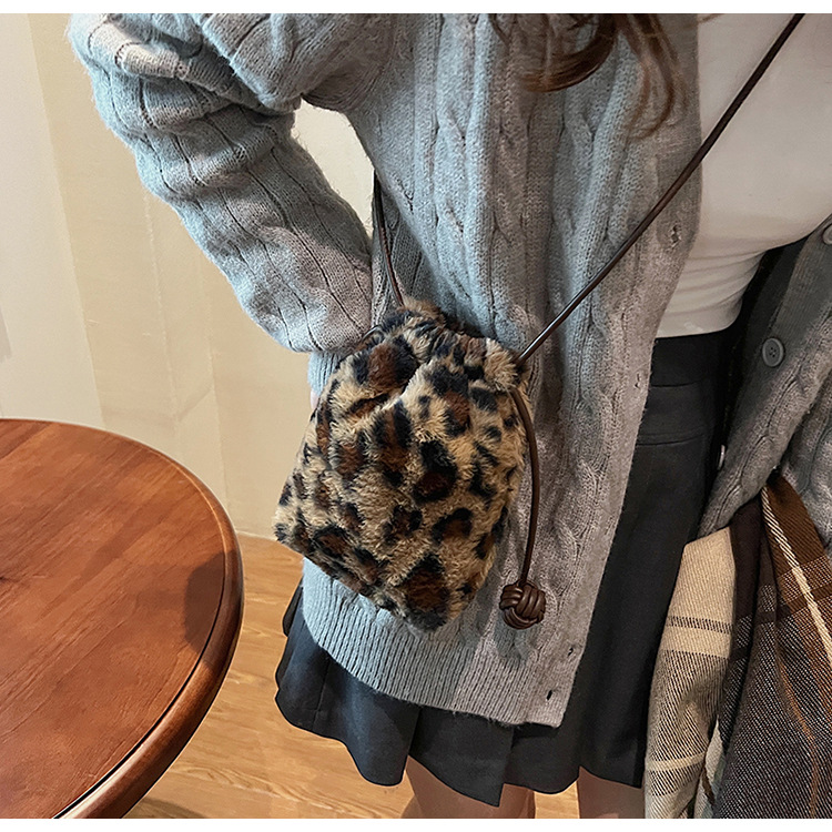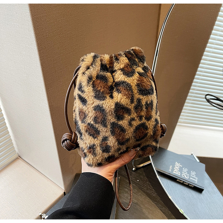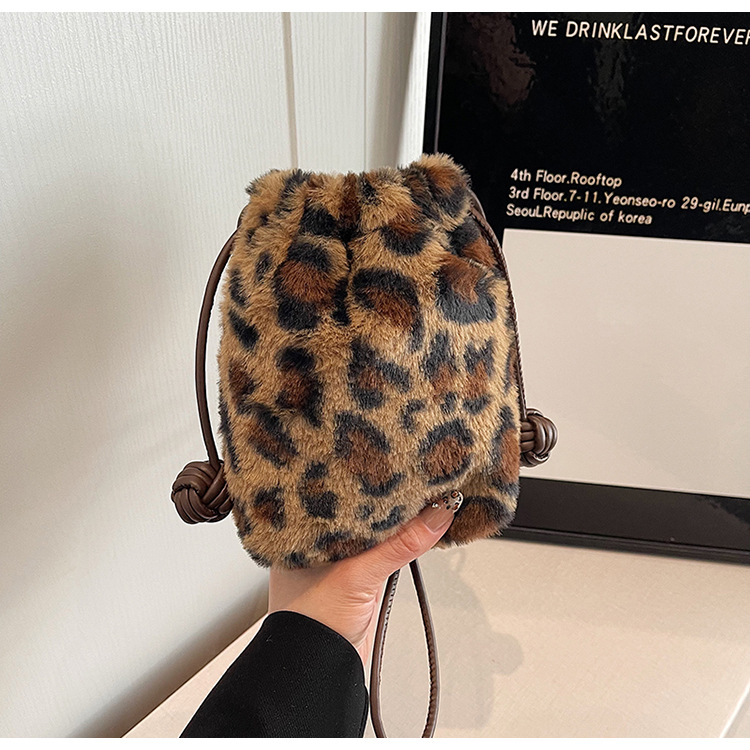 외부 싱글 레오파드 봉제 버킷 백 2024 한국 트렌디 한 세련된 패션 어깨 가방 틈새 캐주얼 올 매치 여성용 가방스토어 가기