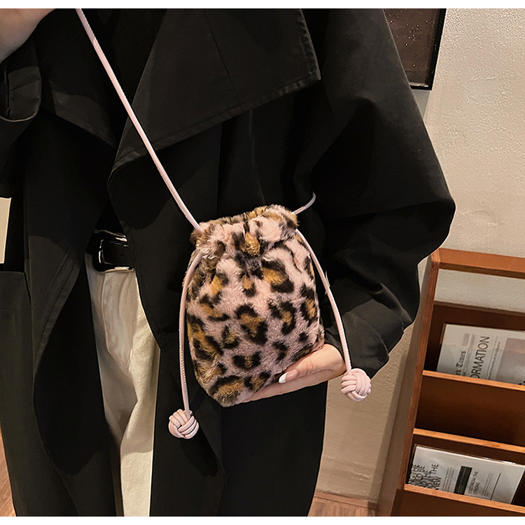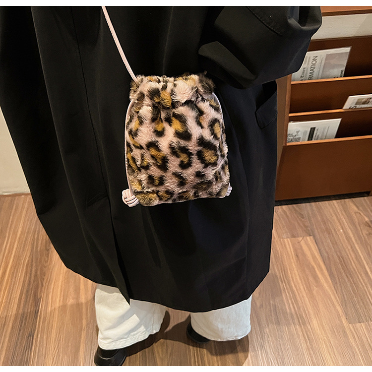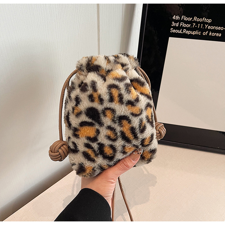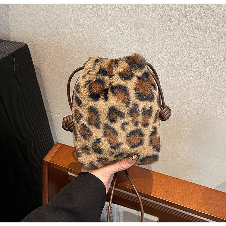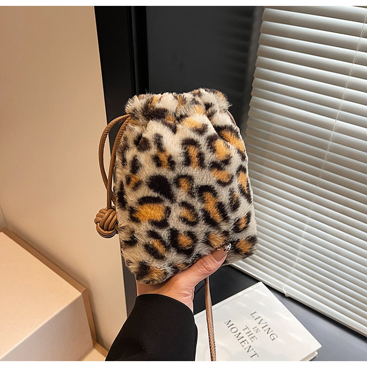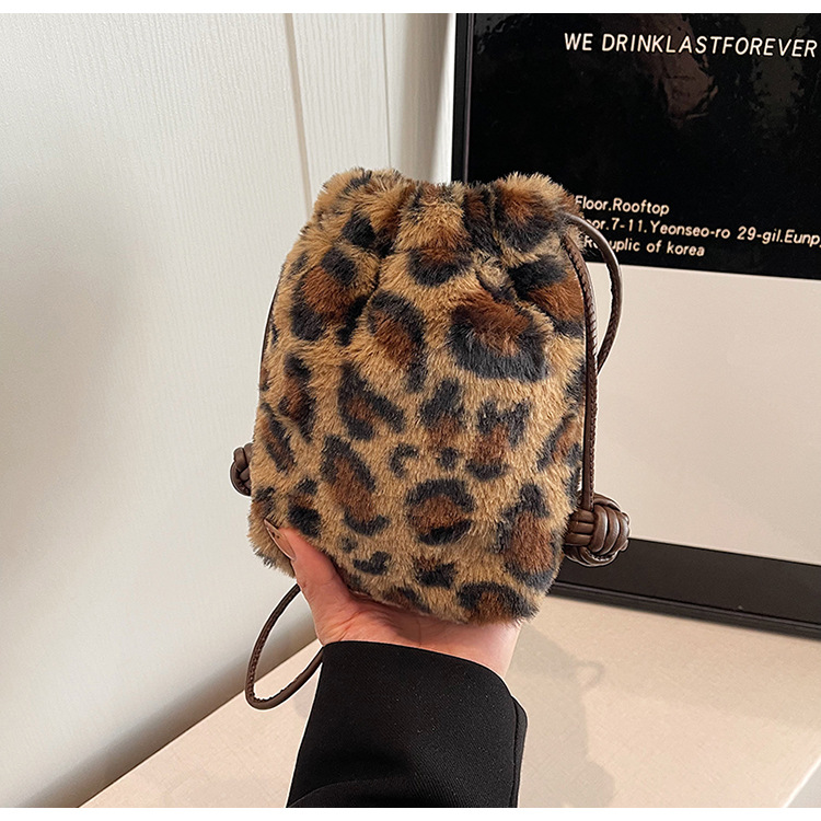 외부 싱글 레오파드 봉제 버킷 백 2024 한국 트렌디 한 세련된 패션 어깨 가방 틈새 캐주얼 올 매치 여성용 가방스토어 가기
