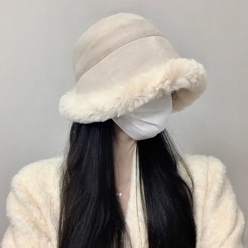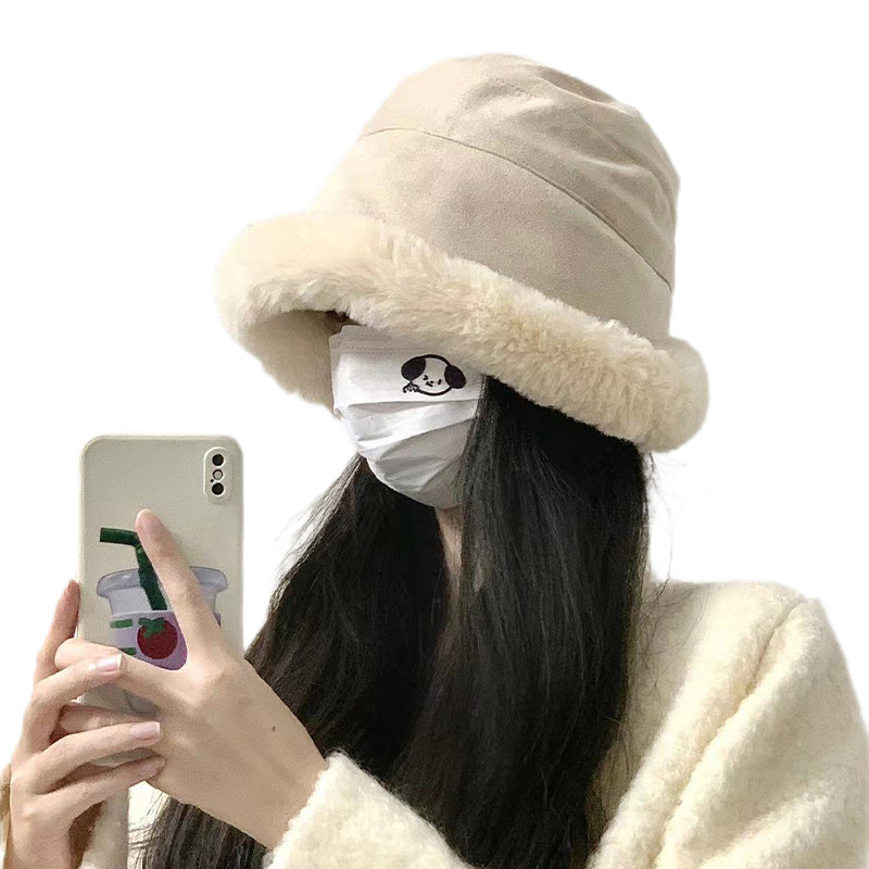 어부 모자 여성의 새로운 가을 및 겨울 봉제 올매치 따뜻한 큰 머리 귀 보호 냉방성 두꺼운 얼굴 보여주는 작은 분지 모자