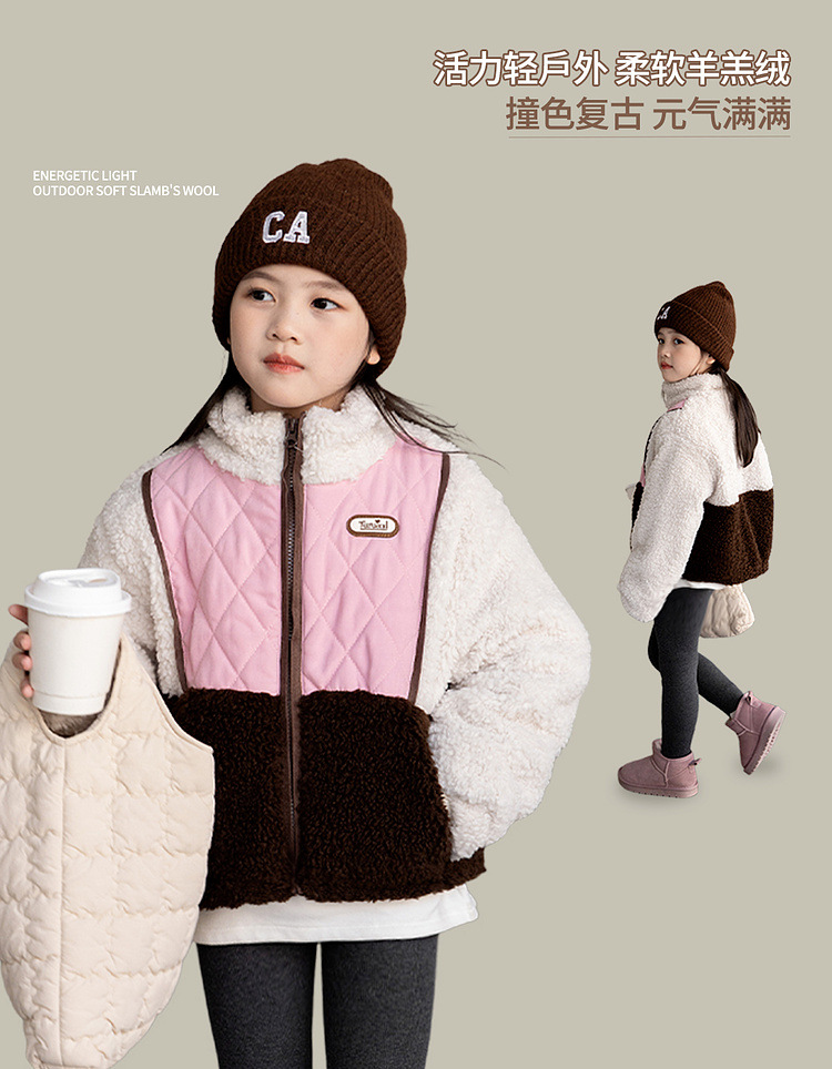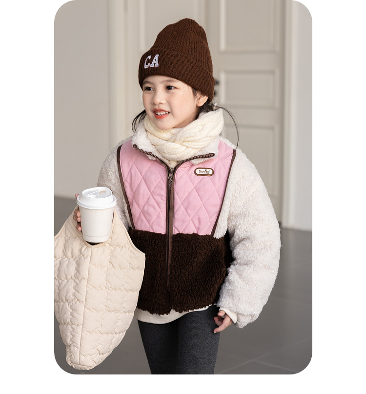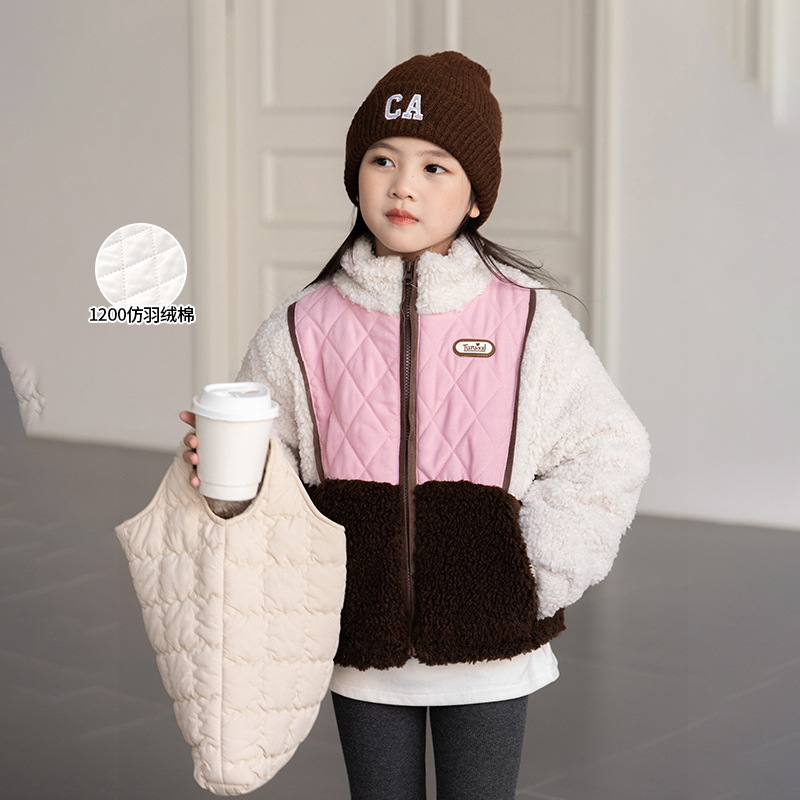 【클리어런스 12% off 】여아용 양털 자켓 겨울 신상품 플러스 벨벳 코튼 코트 아동용 두꺼운 스플라이싱 상의