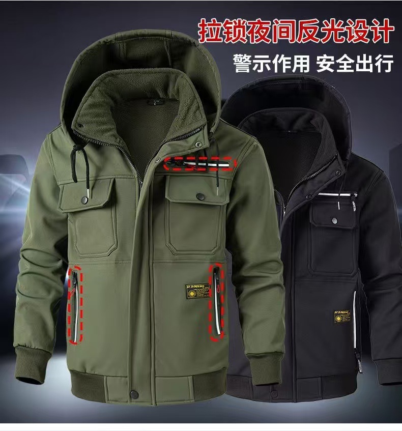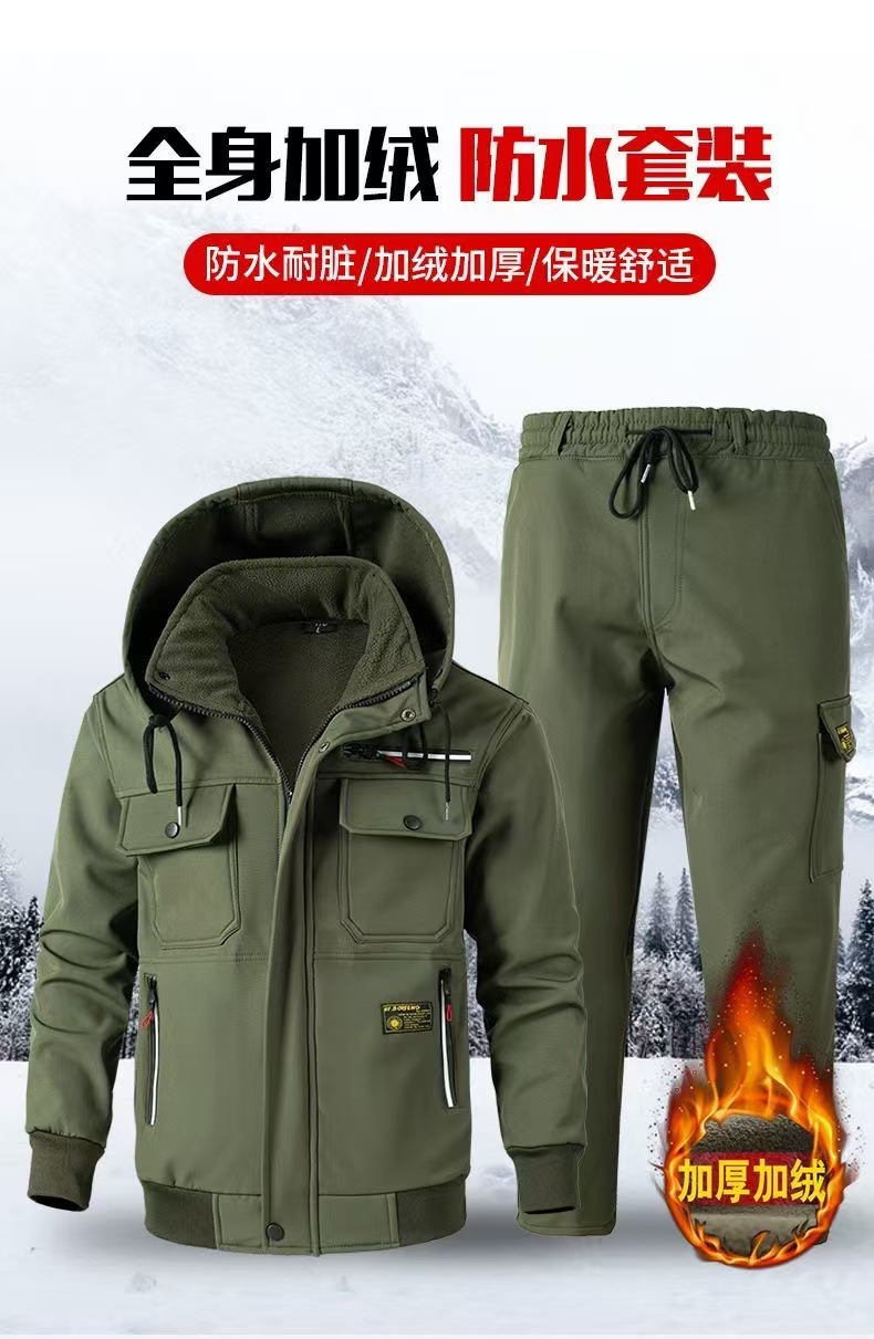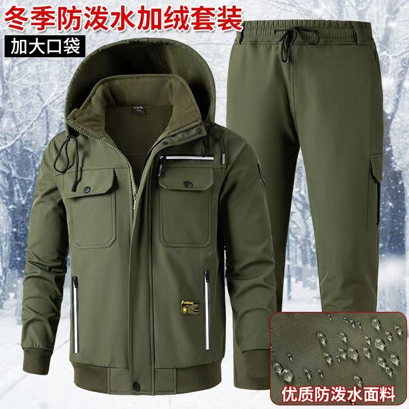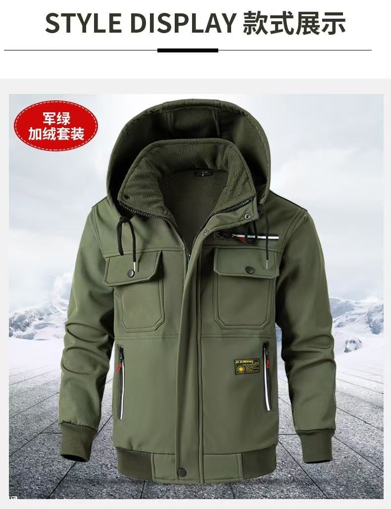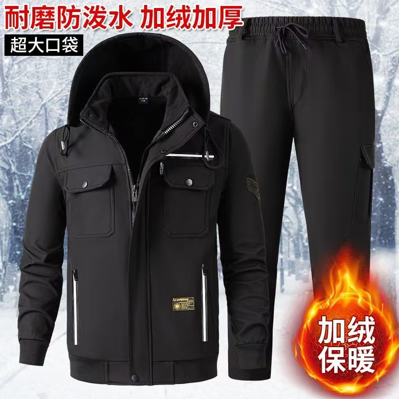 남성용 재킷, 면 재킷, 플리스 안감, 두꺼운 방수, 보온, 내마모성, 가을 겨울 신상 작업복 세트