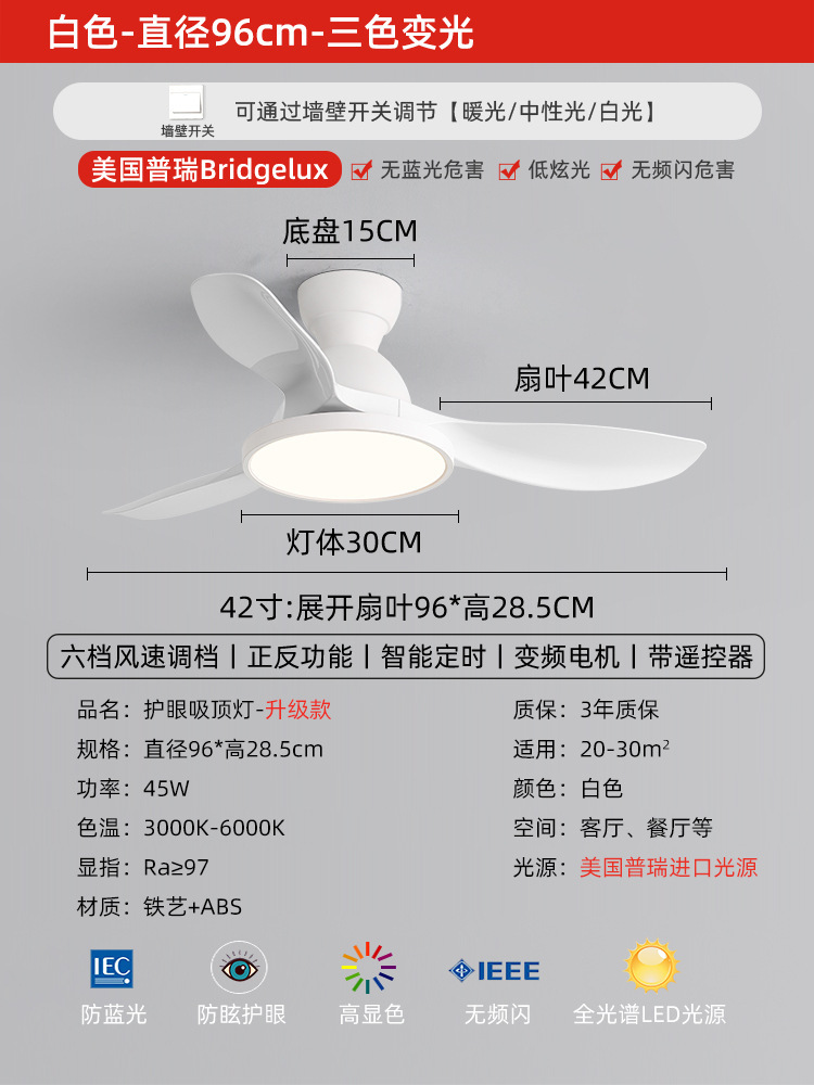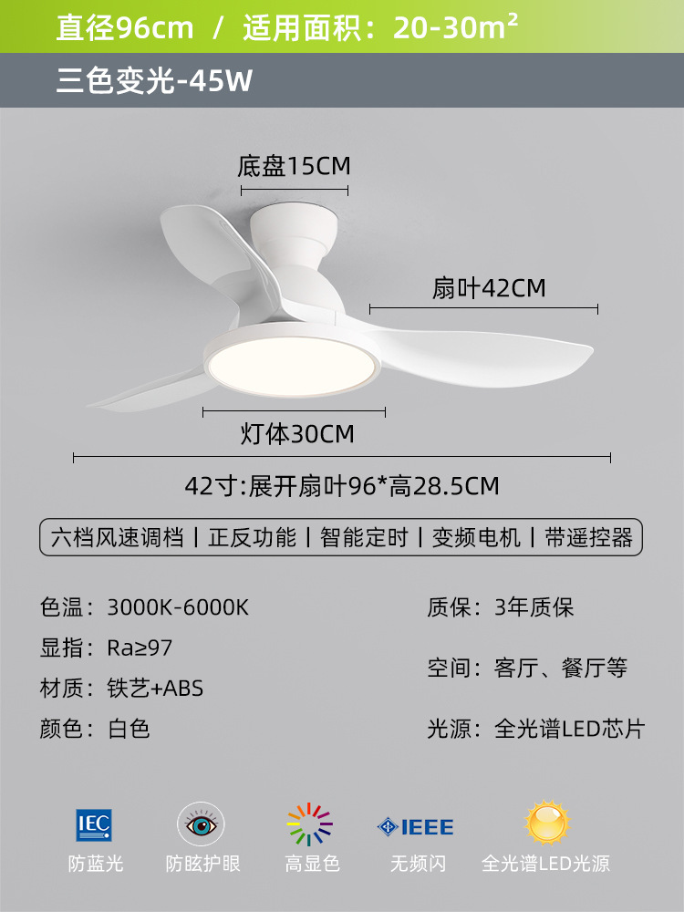 • 흰색 42inch -6단 원격 제어 전체 스펙트럼 눈 보호 세 가지 색상