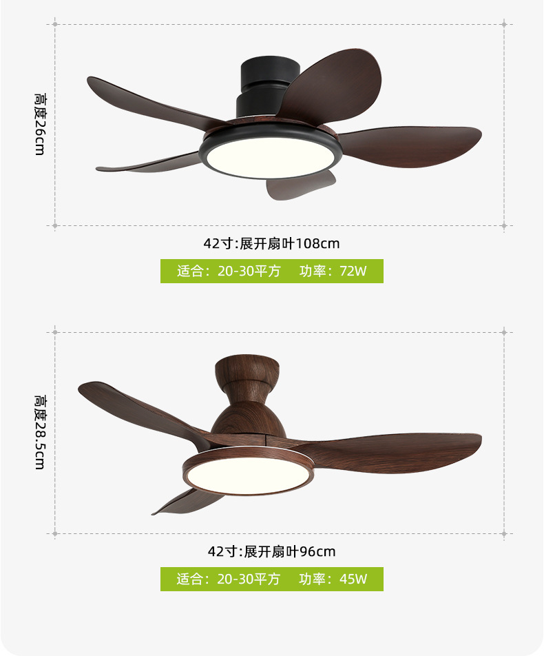 팬 램프 거실 식당 42 인치 큰 바람 복고풍 호두 나무 복고풍 음소거 통합 눈 보호 전기 팬 램프스토어 가기