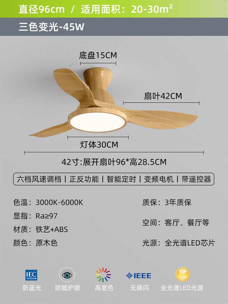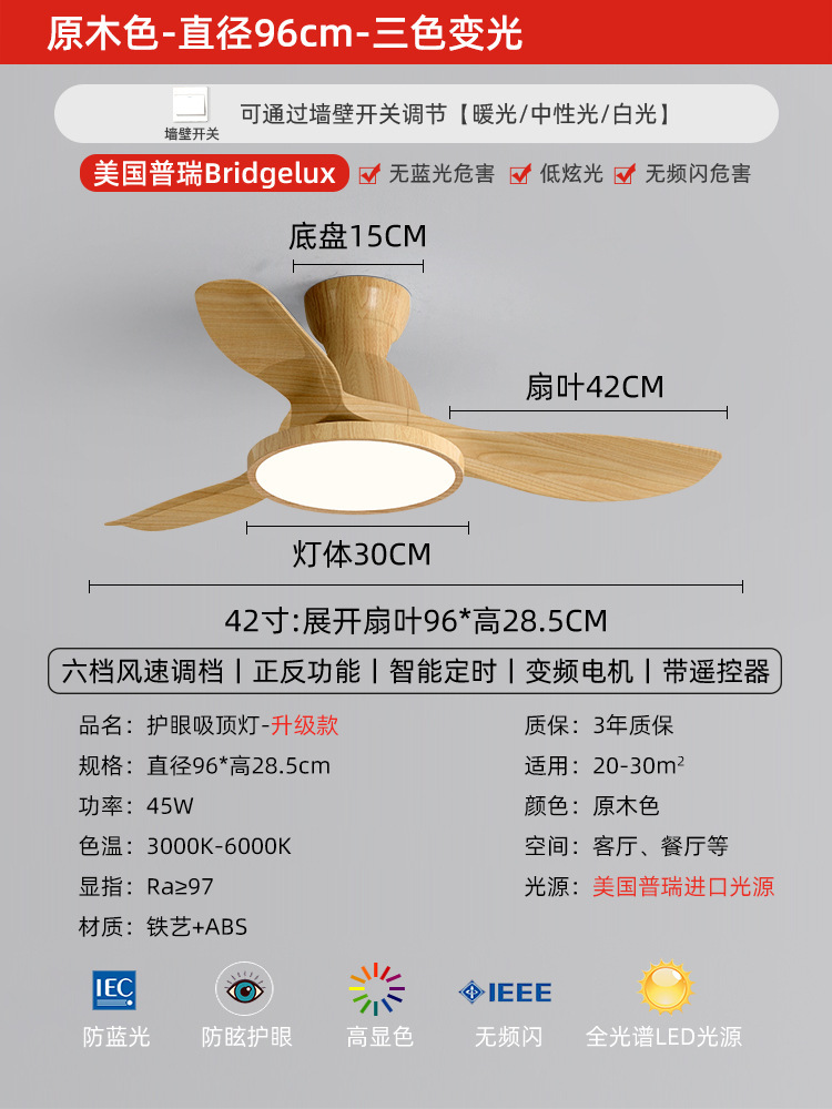 • 로그 컬러 42inch -6 속도 원격 제어 전체 스펙트럼 눈 보호 3가지 색상