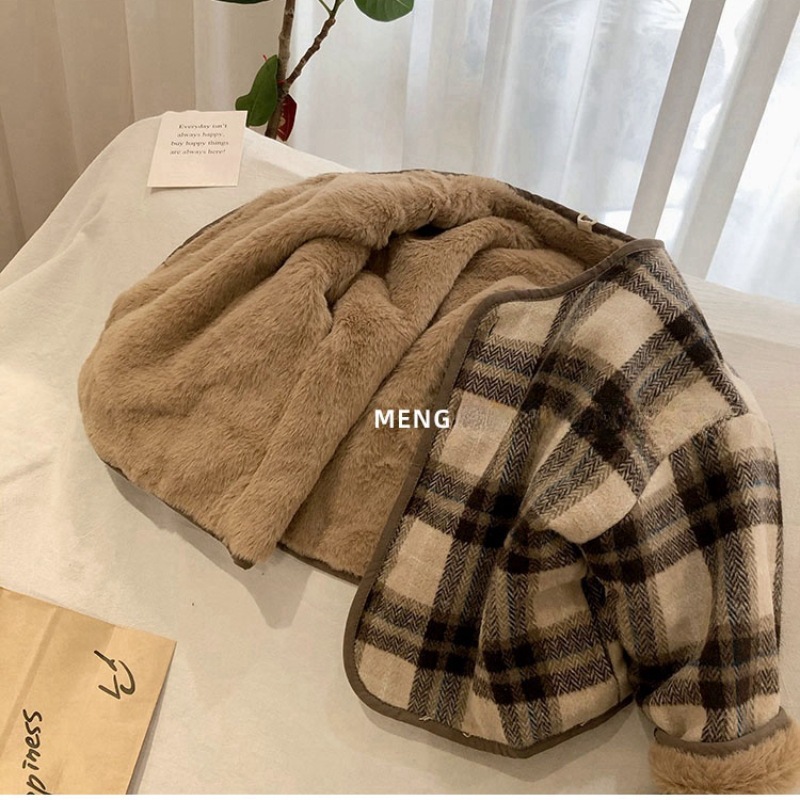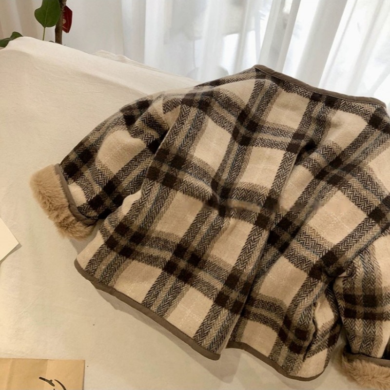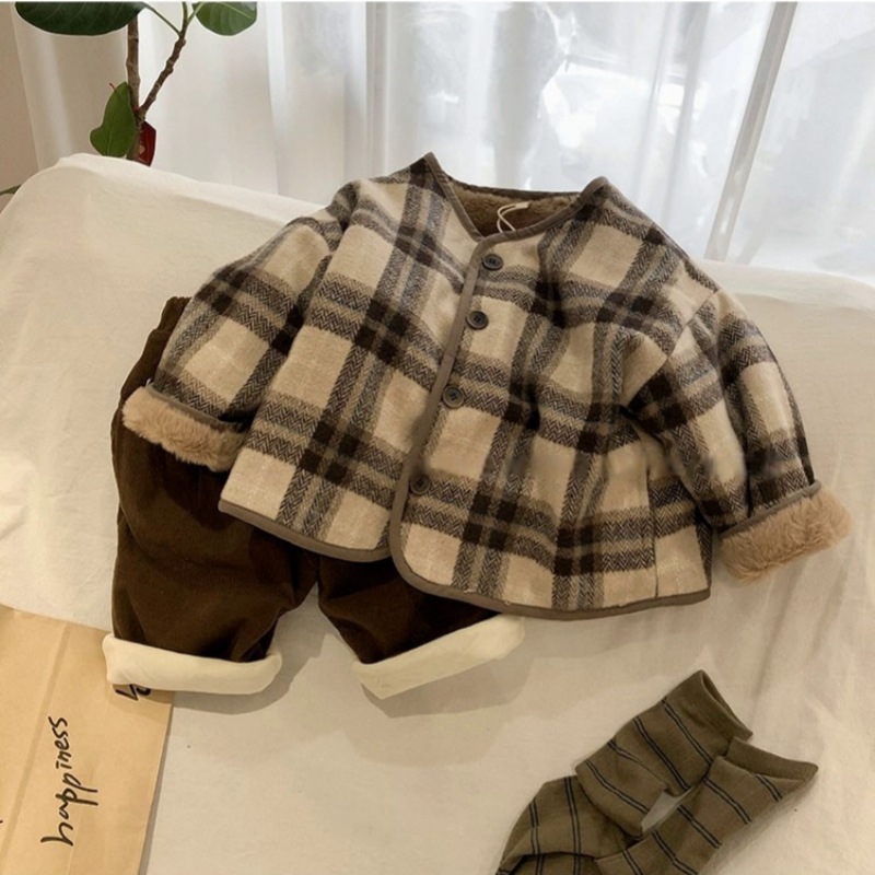 남아 겨울 코트 2025 겨울 신상 체크 코트 플러스 플리스 남아 겨울 의류 아기 보온 상의
