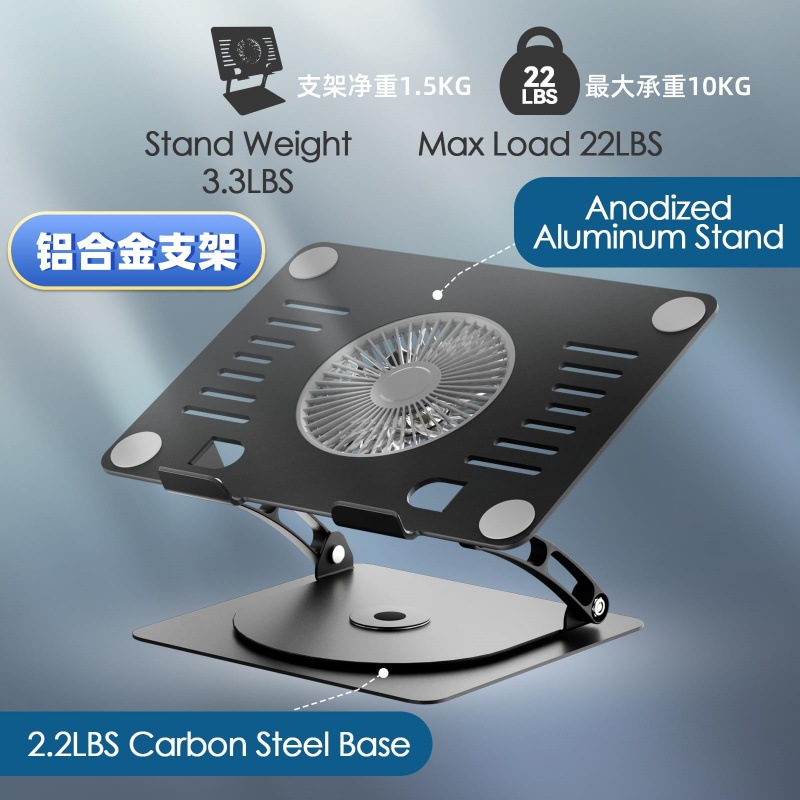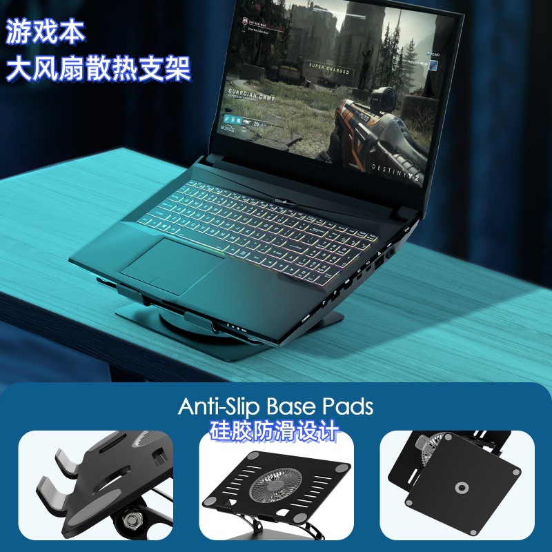 新款加大游戏本散热支架360旋转铝合金笔记本散热支架