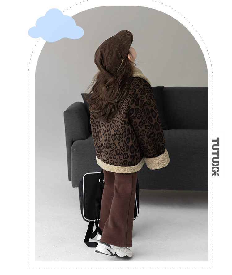 TUTU 아기 코끼리 여아용 플리스 재킷 가을 겨울 신상 오토바이 스타일 두꺼운 보온 호피무늬 아동용 재킷 상의스토어 가기