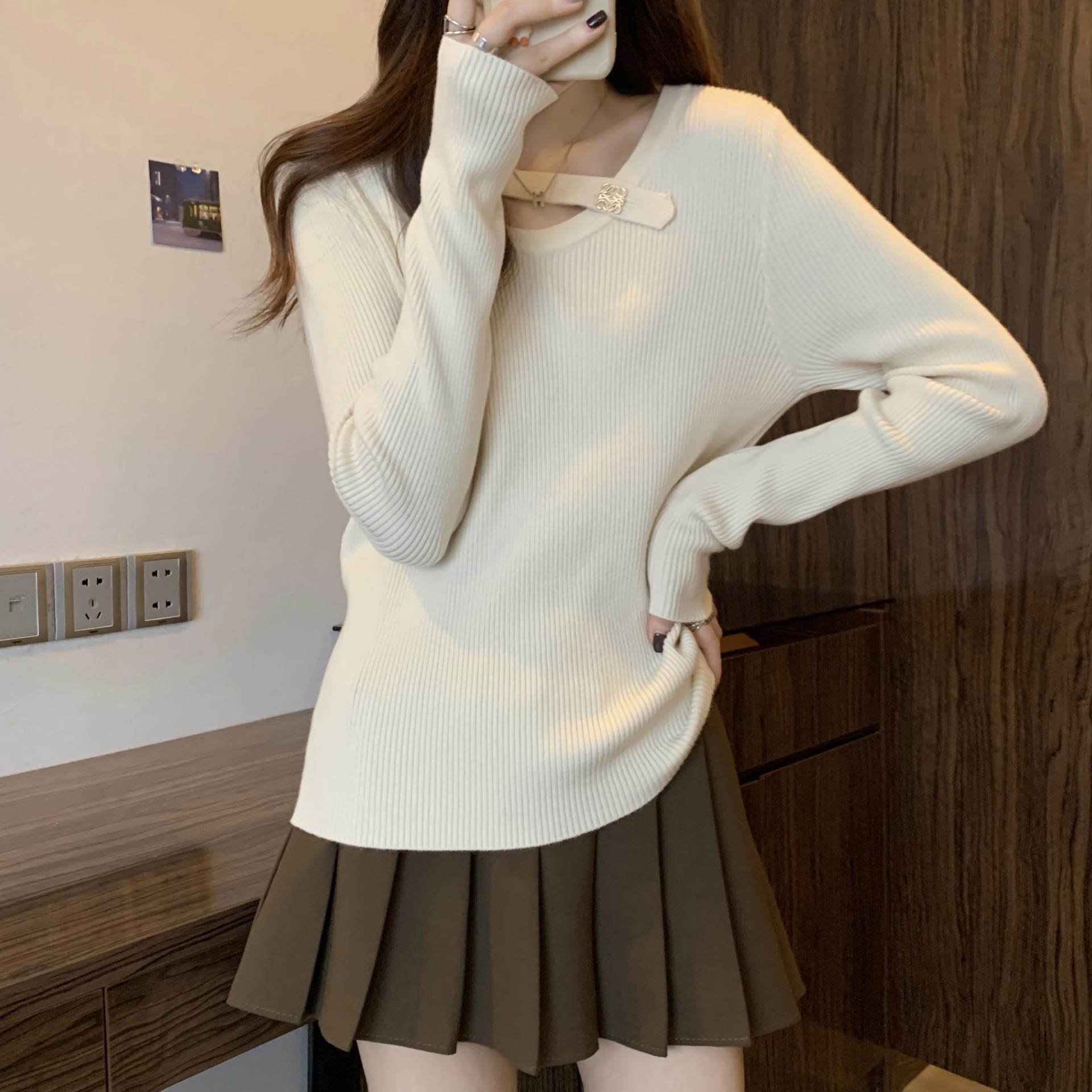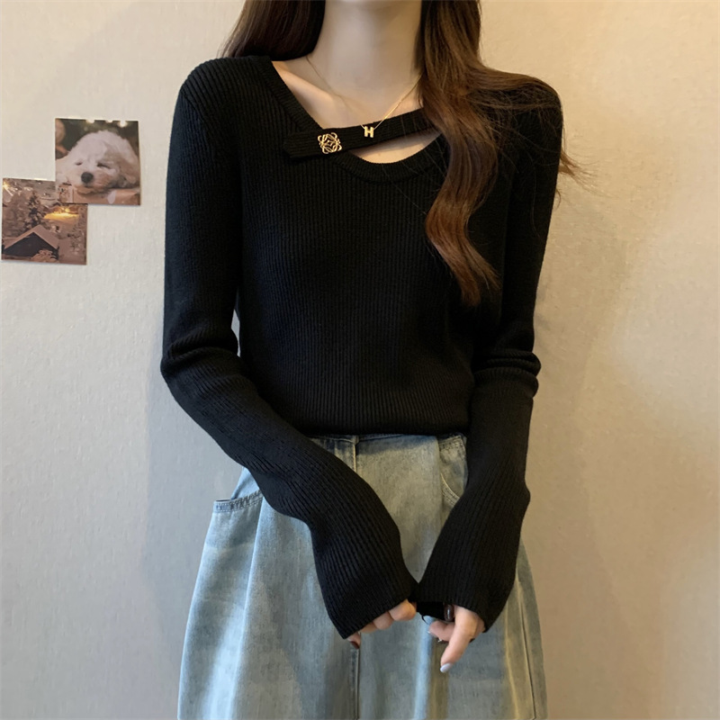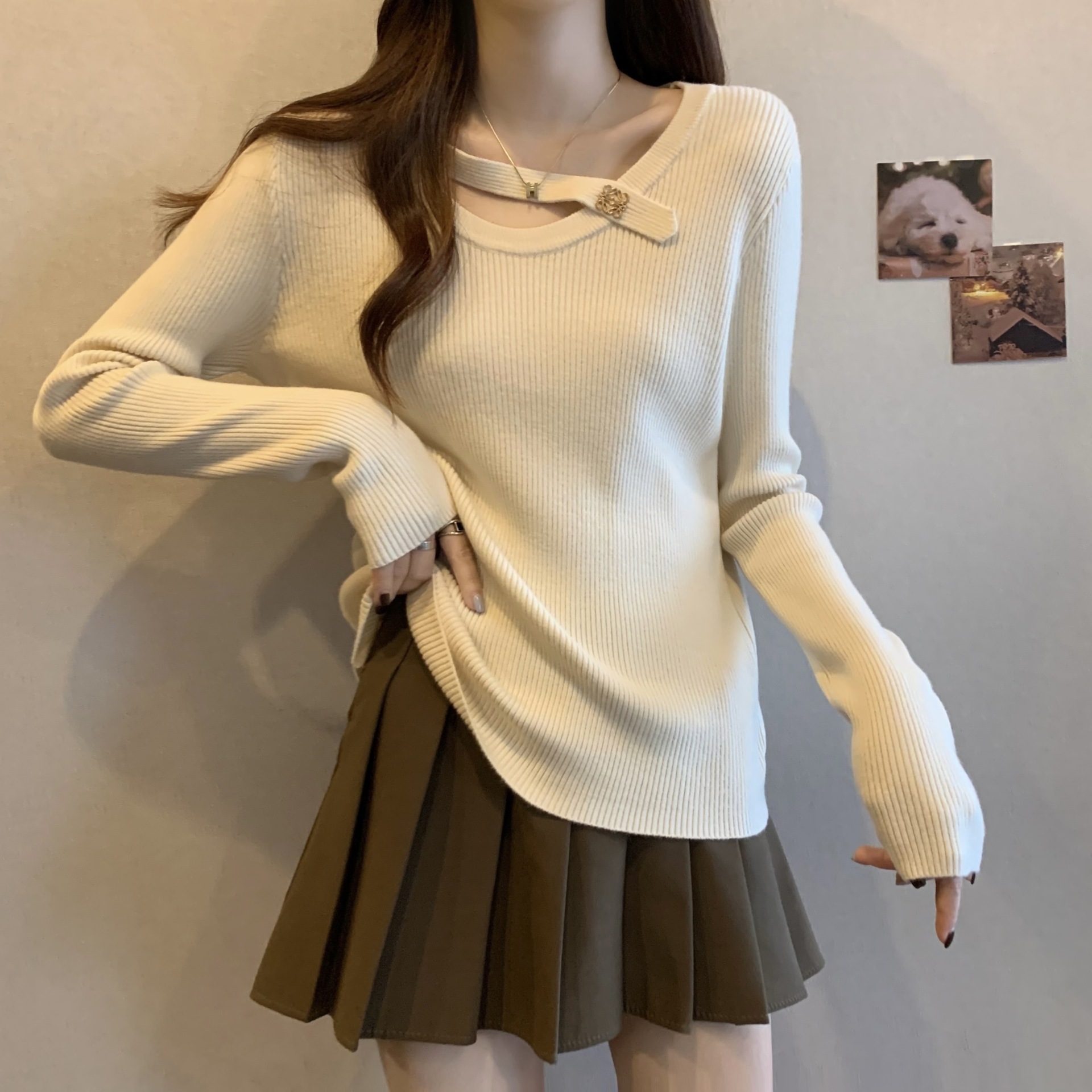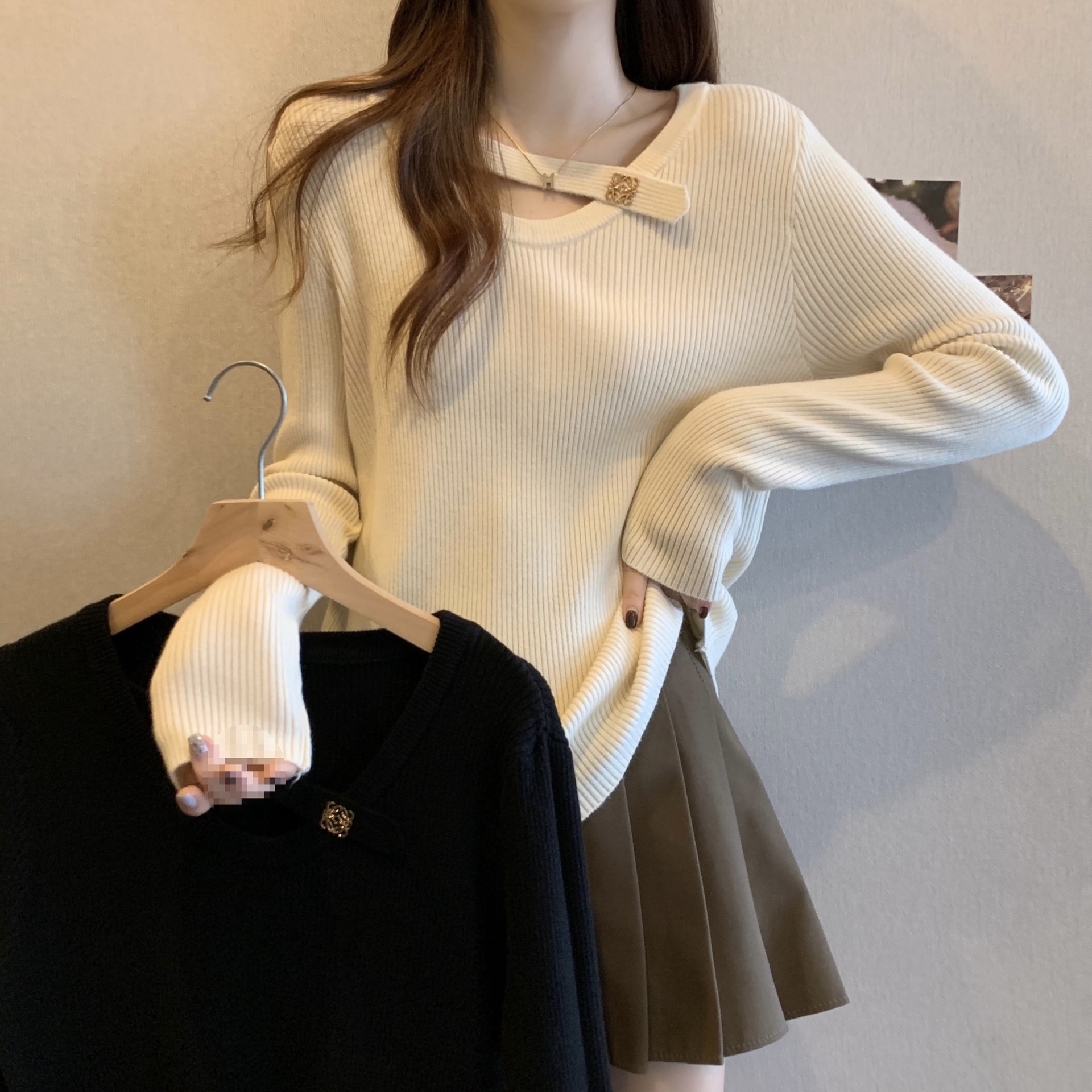 플러스 사이즈 한국 스타일 통통녀 슬림 핏 가을과 겨울 긴 소매베이스 탑 여자 유행 슬리밍 올 매치 불규칙한 울 스웨터