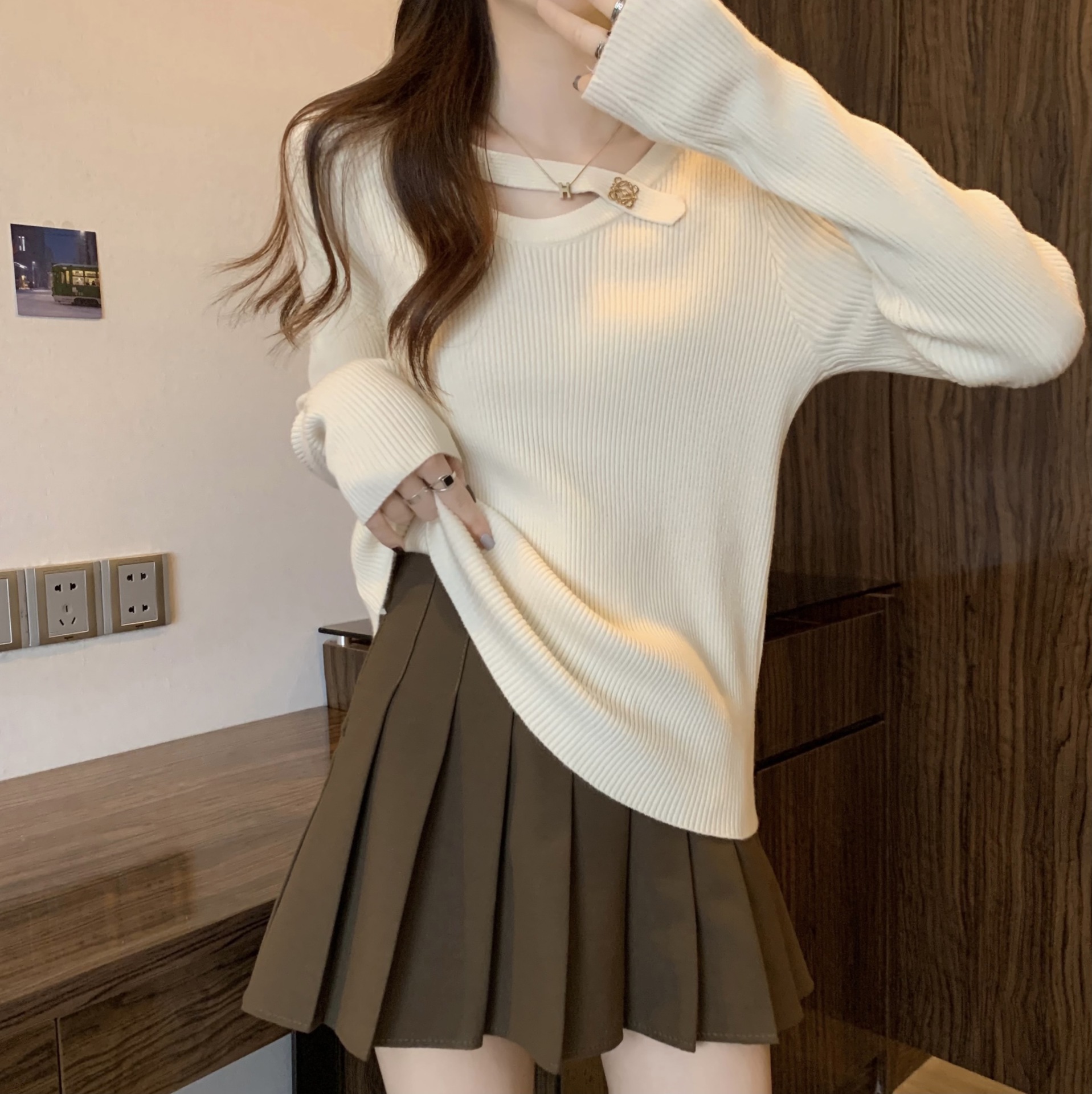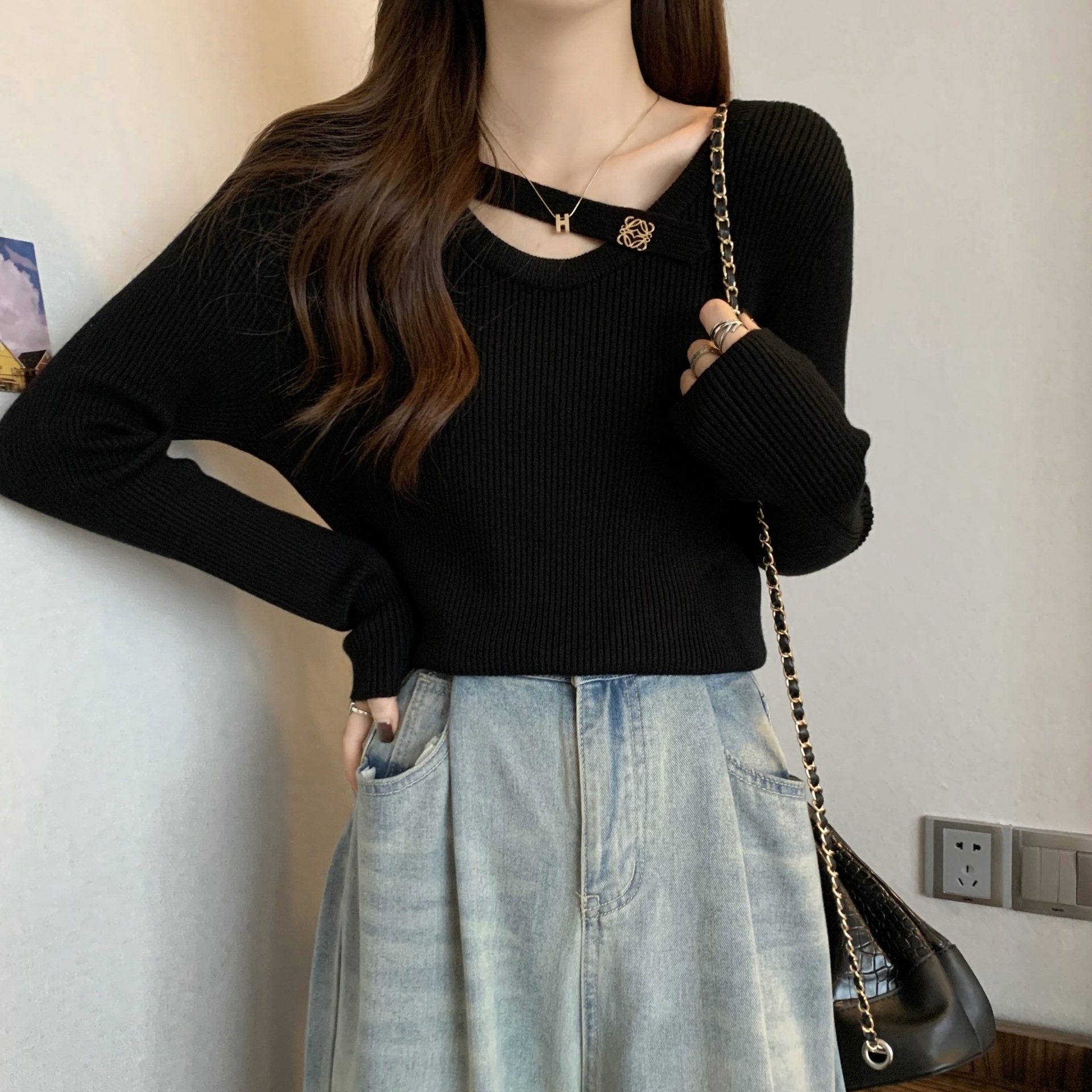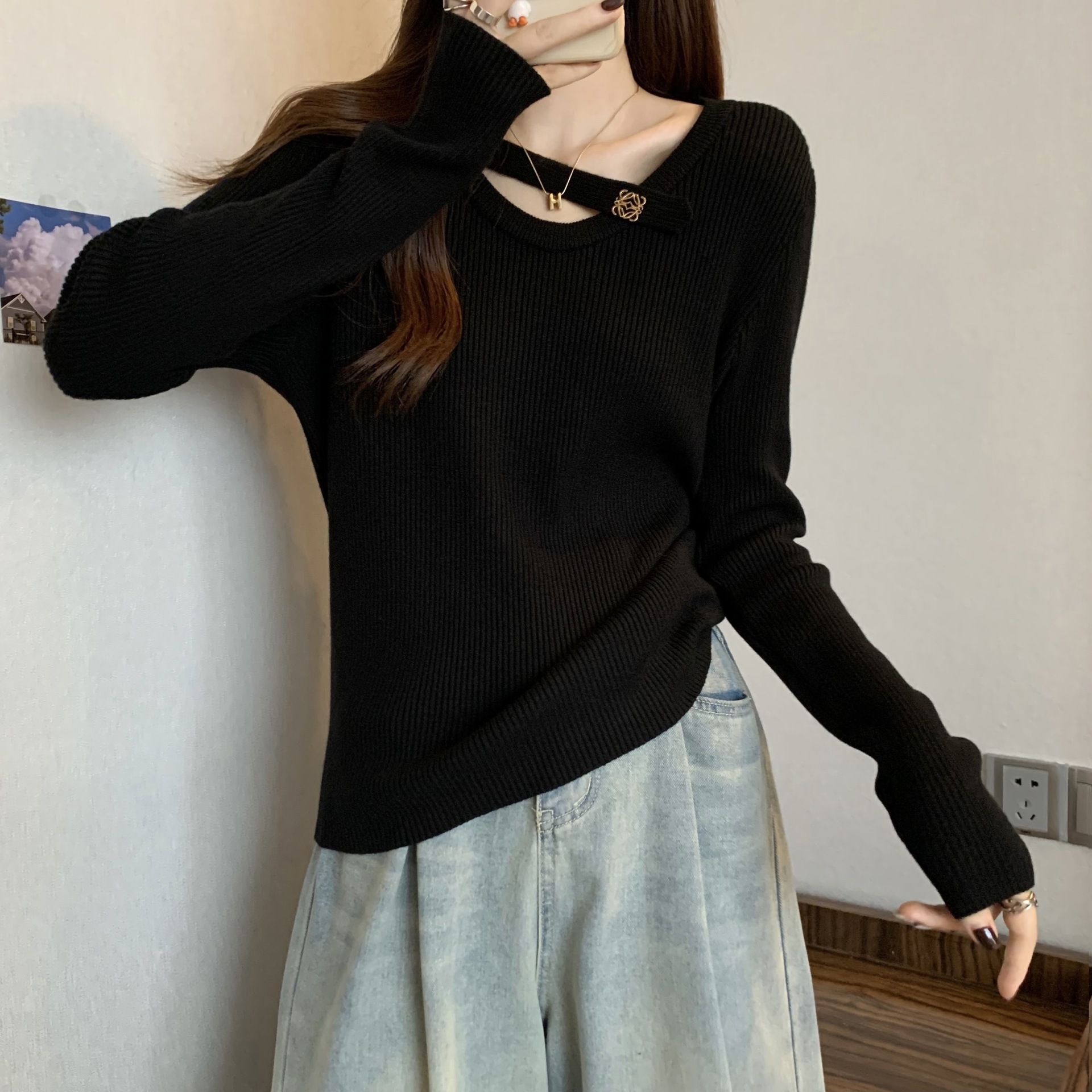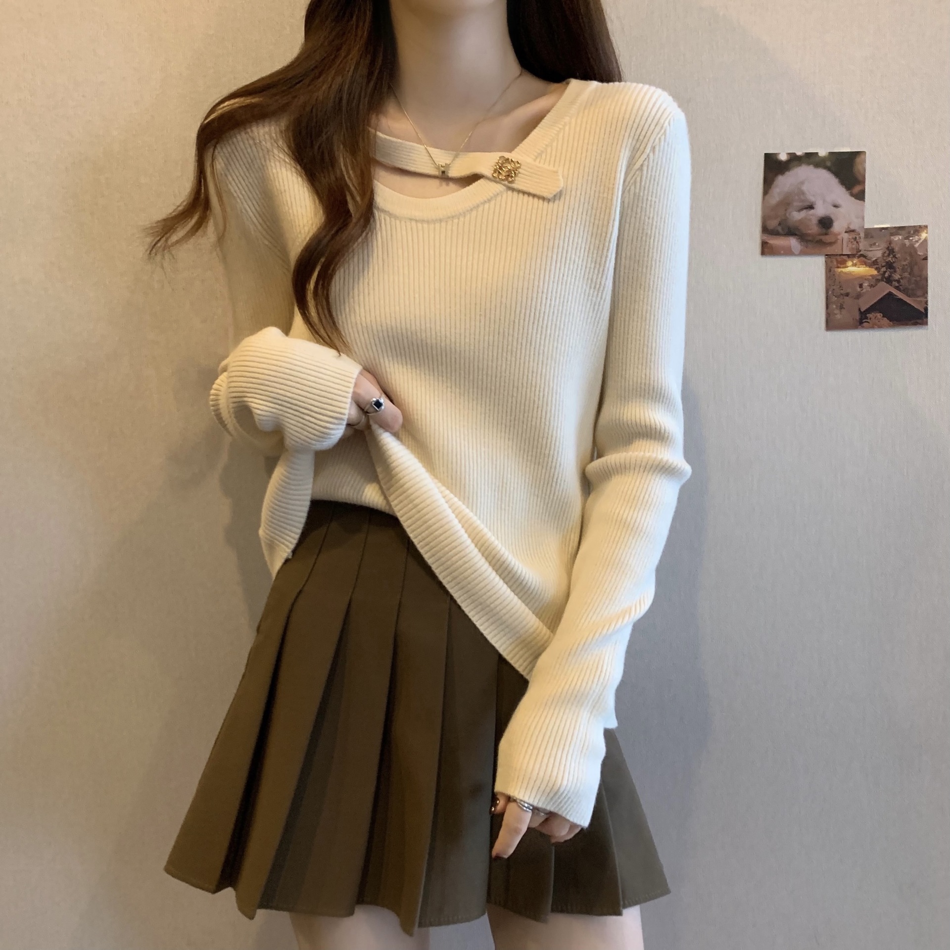 플러스 사이즈 한국 스타일 통통녀 슬림 핏 가을과 겨울 긴 소매베이스 탑 여자 유행 슬리밍 올 매치 불규칙한 울 스웨터