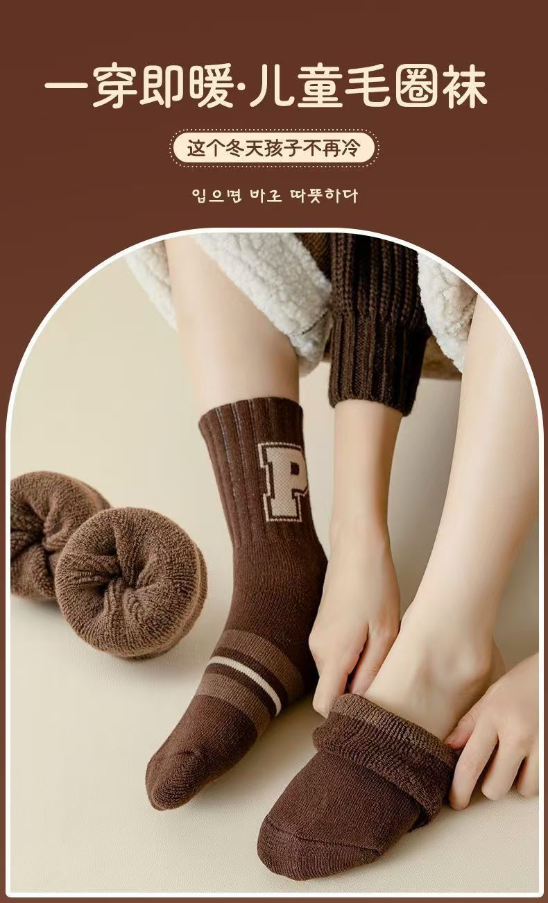 어린이 양말 가을과 겨울 테리 소년 중 · 대형 어린이 기모 두꺼운 겨울 방한 따뜻한 미드 튜브 소년 양말