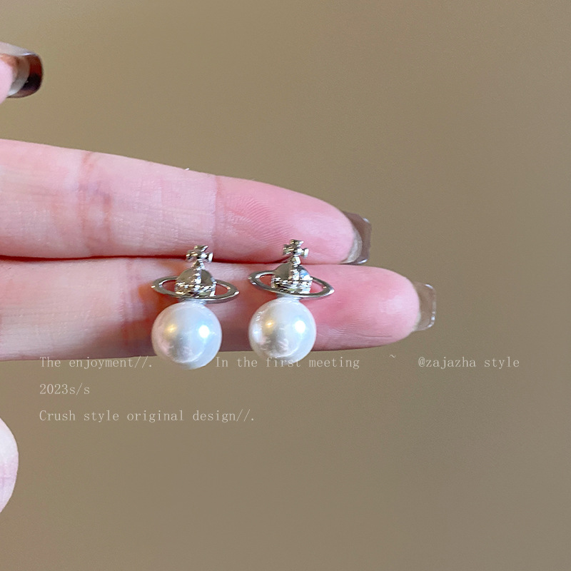 황후 Dowager 토성 행성 진주 귀걸이 여성 진주 펜던트 귀걸이 가벼운 고급 고급 고급 틈새 디자인 귀걸이