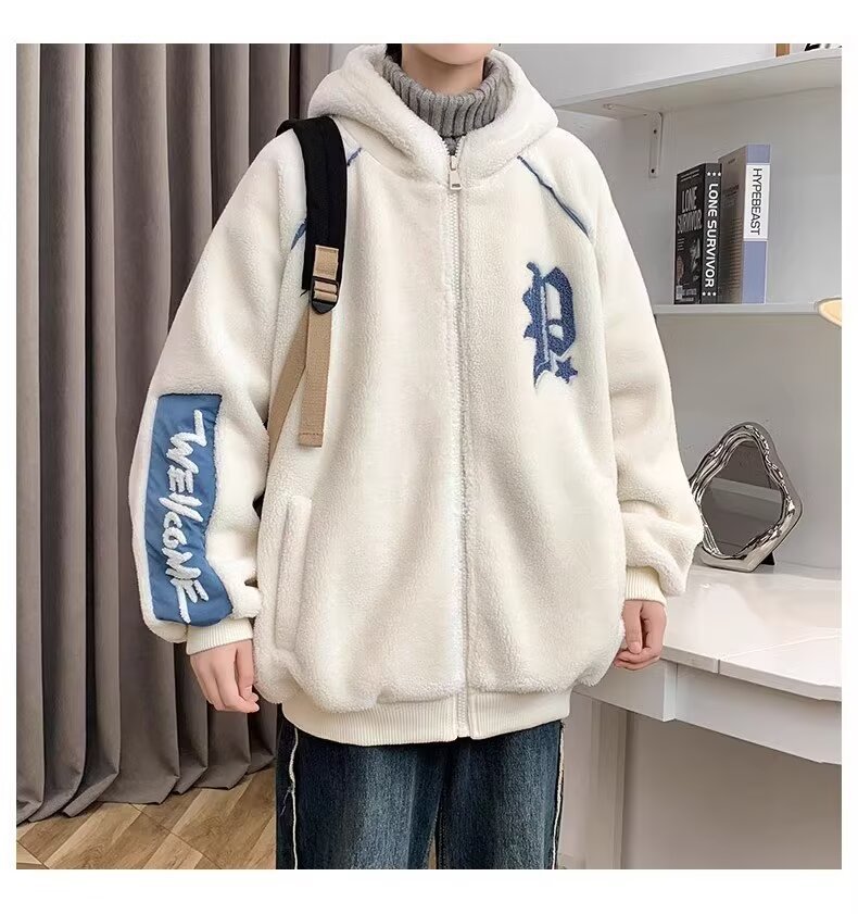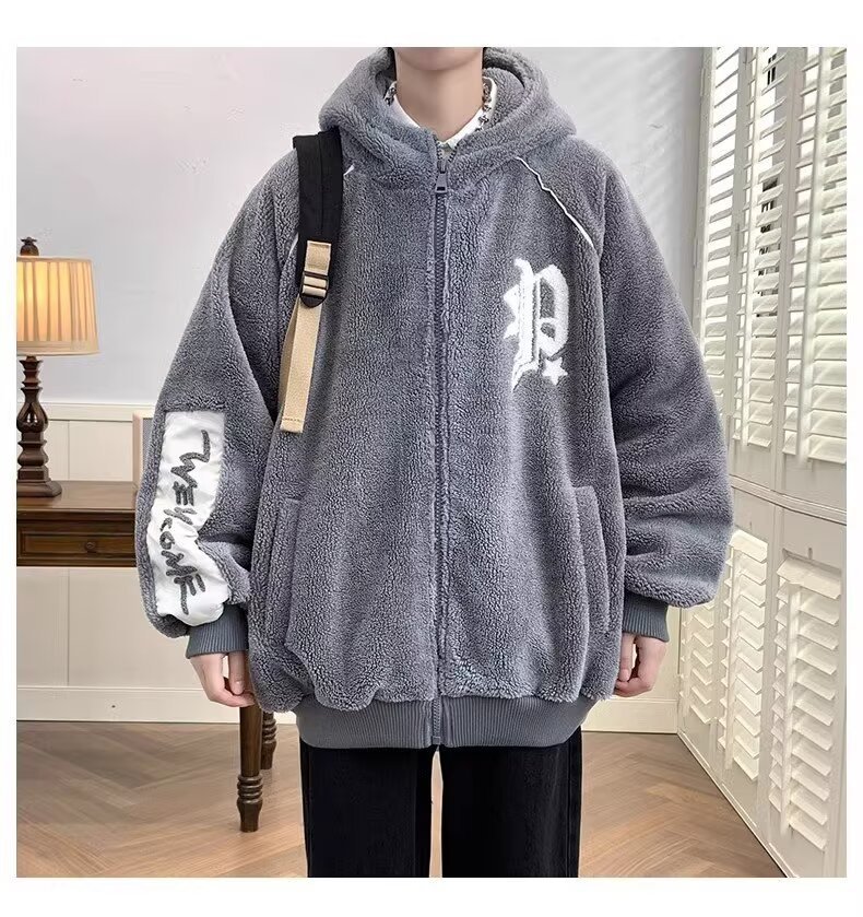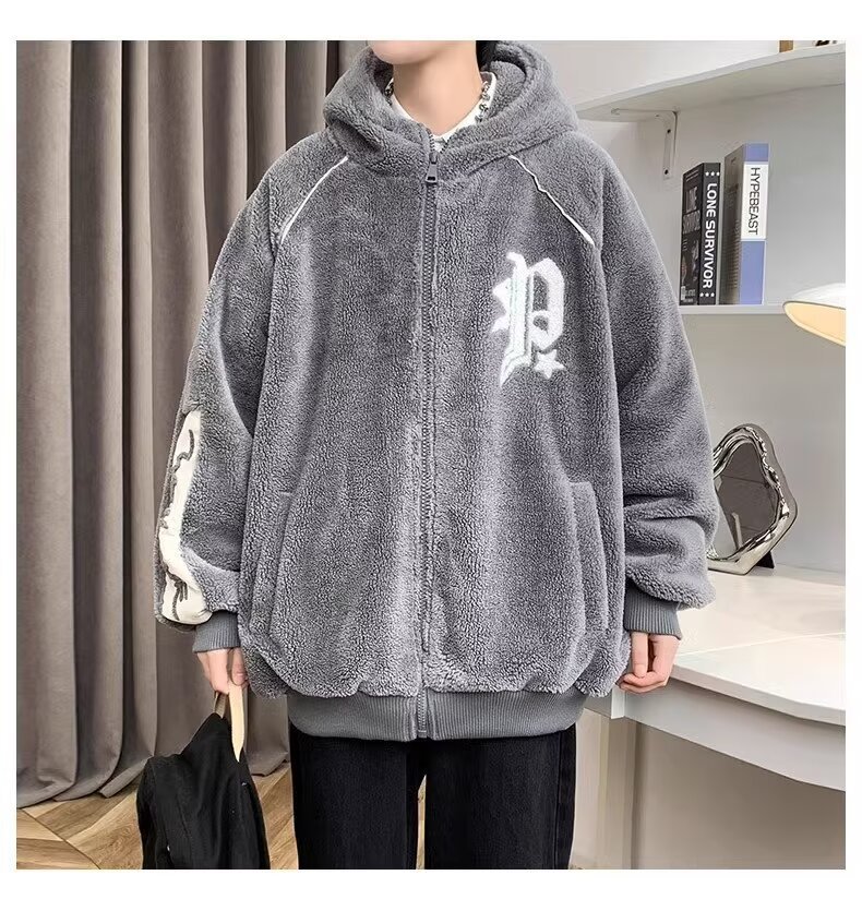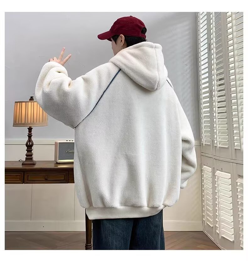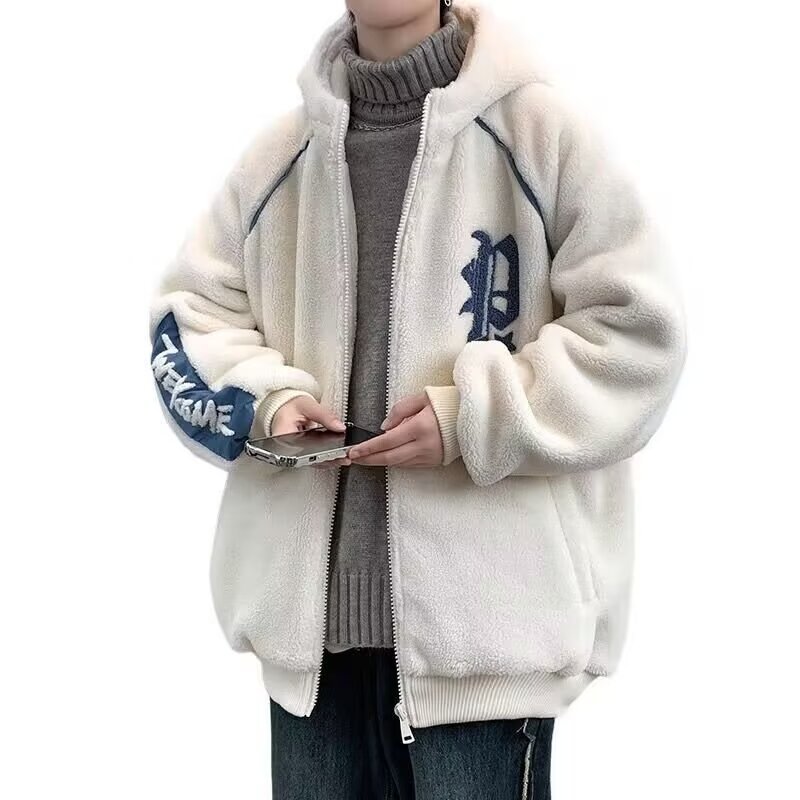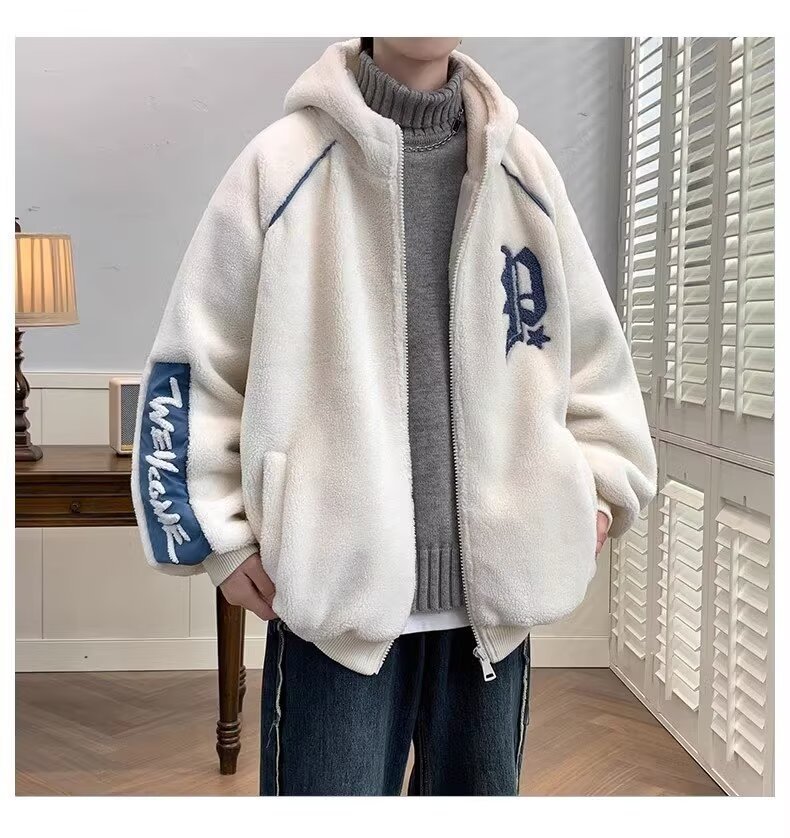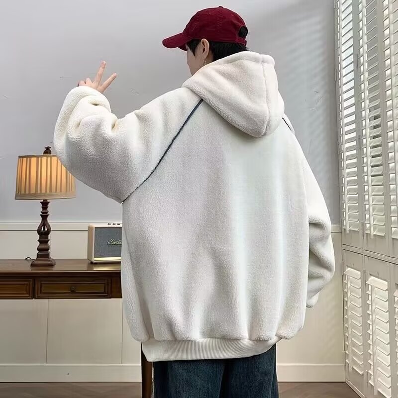 가을과 겨울 양고기 양털 자켓 남자 후드 십대 트렌디 브랜드 Ins 트렌디 캐주얼 사이버 연예인 홍콩 스타일 양털 자켓스토어 가기