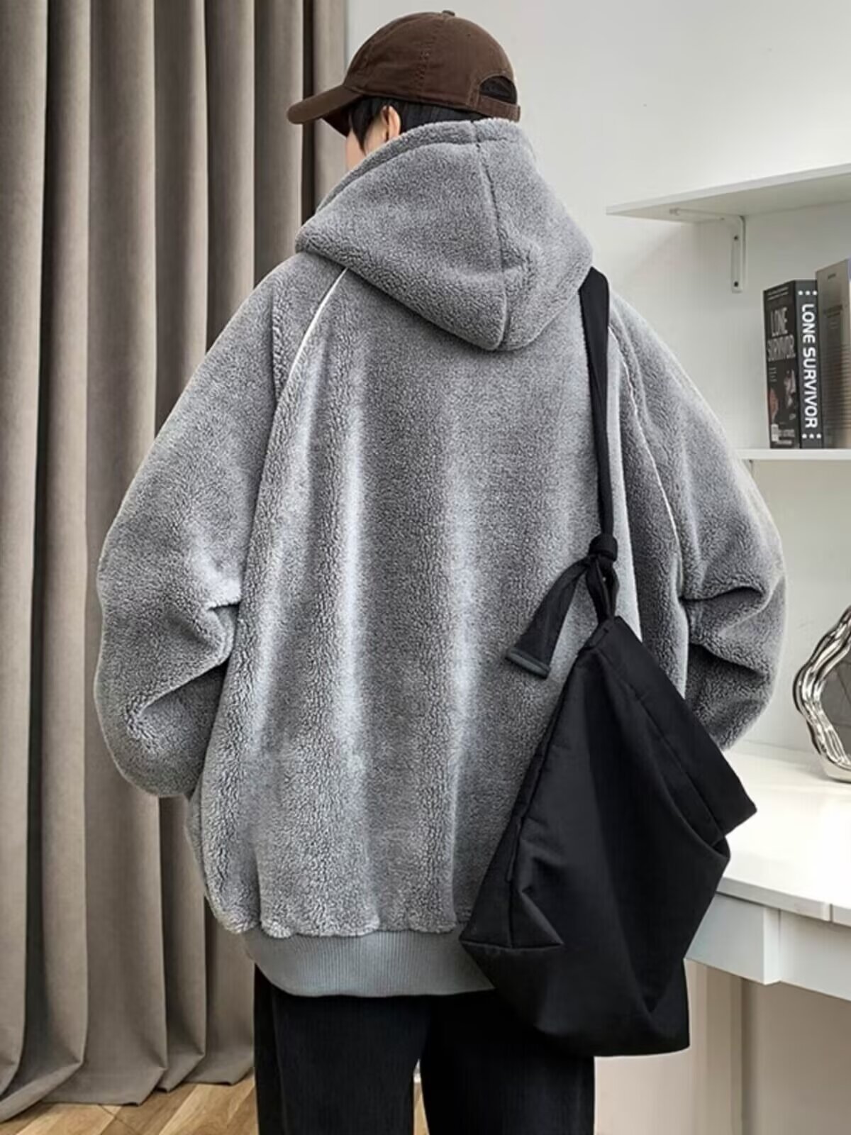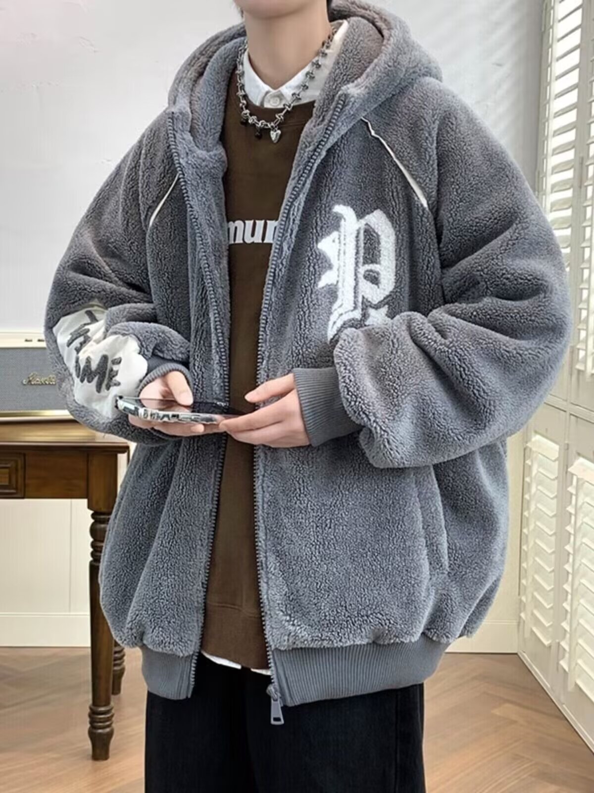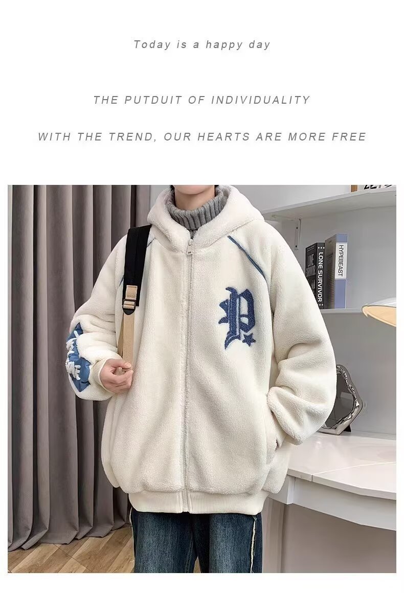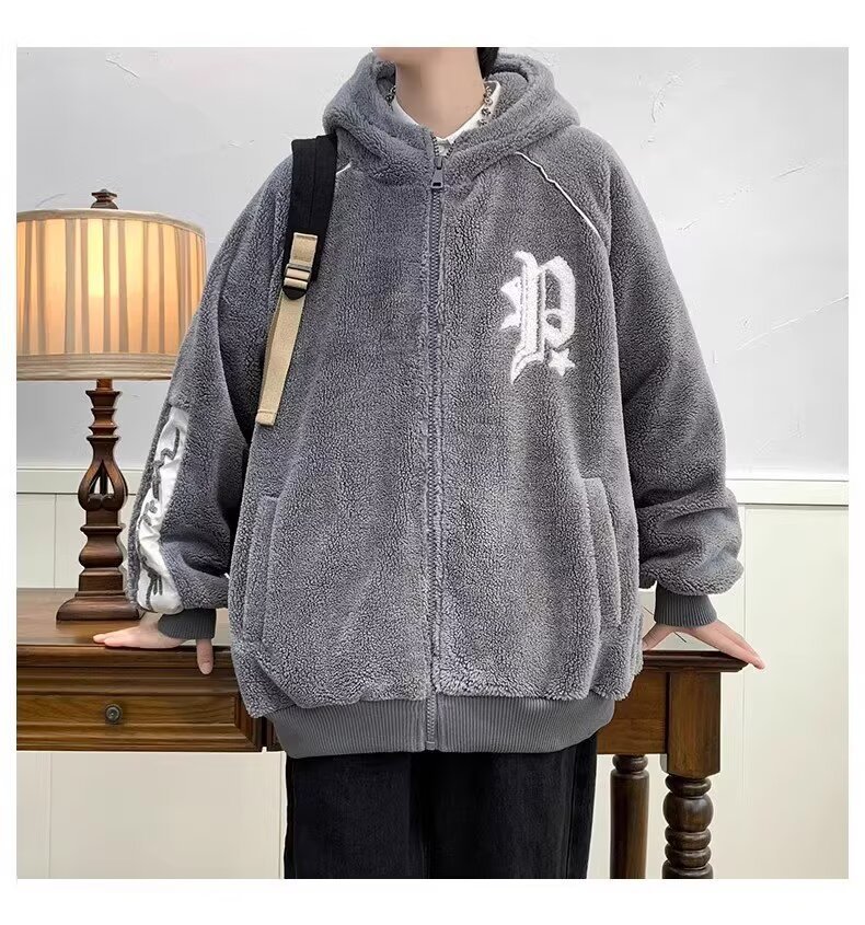 가을과 겨울 양고기 양털 자켓 남자 후드 십대 트렌디 브랜드 Ins 트렌디 캐주얼 사이버 연예인 홍콩 스타일 양털 자켓스토어 가기