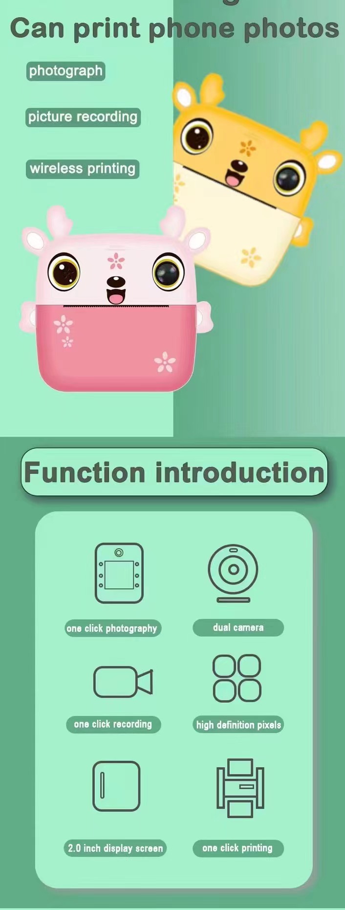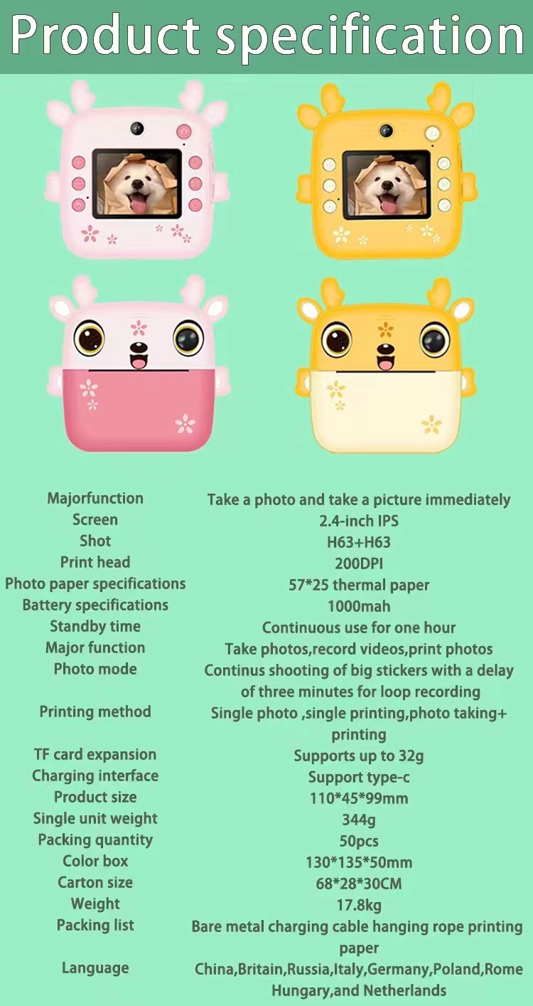 可爱卡通数码相机拍立得迷你学生高清打印照相机儿童相机礼物