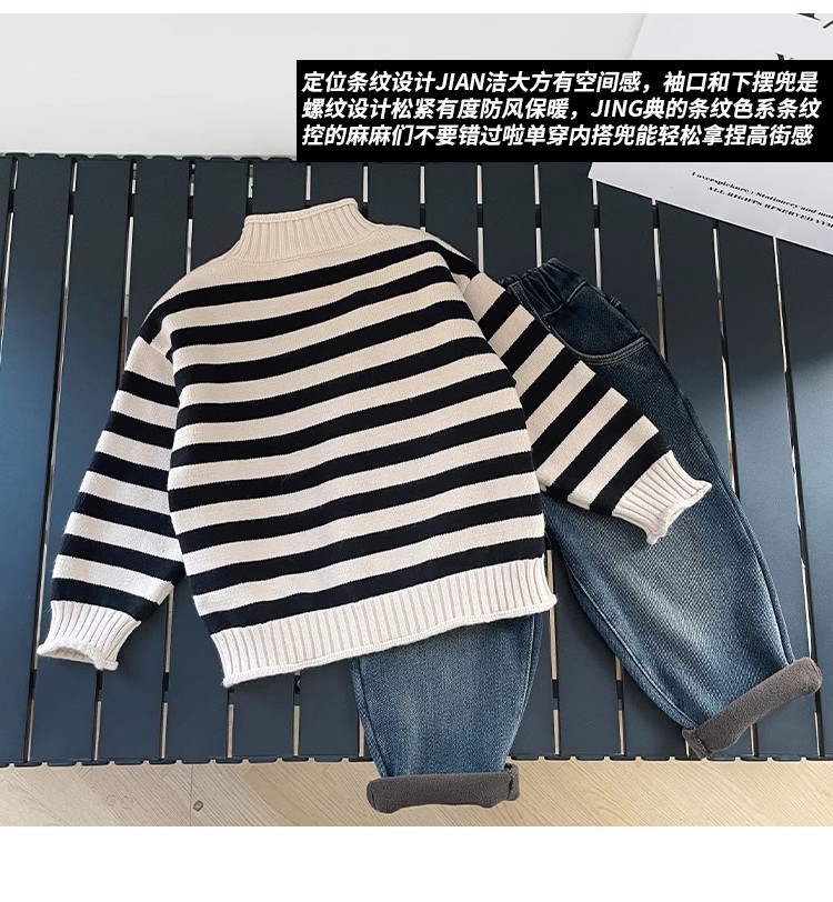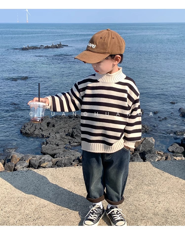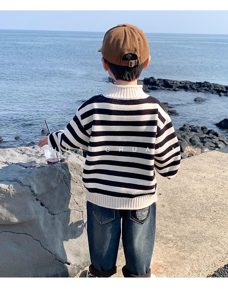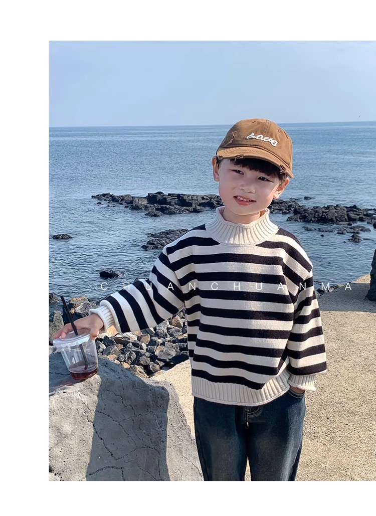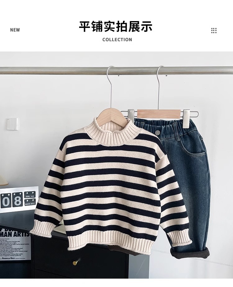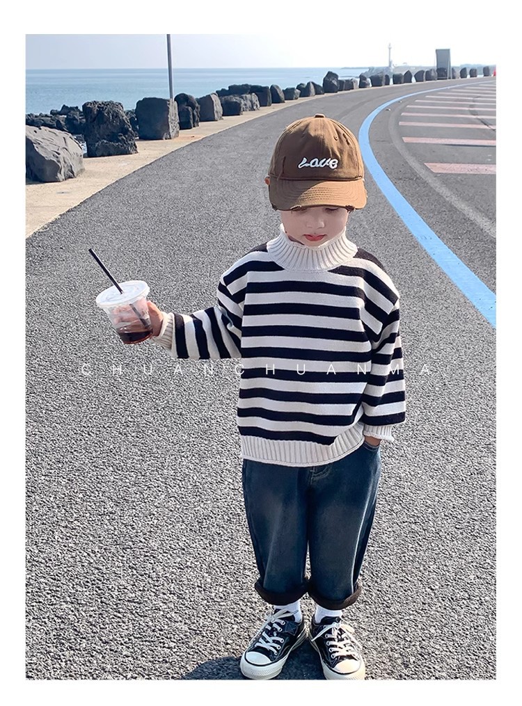 소녀 스웨터 터틀넥 가을과 겨울 소년의 두꺼운 줄무늬 내복 어린이 아기의 니트 베이스 기모 스웨터스토어 가기