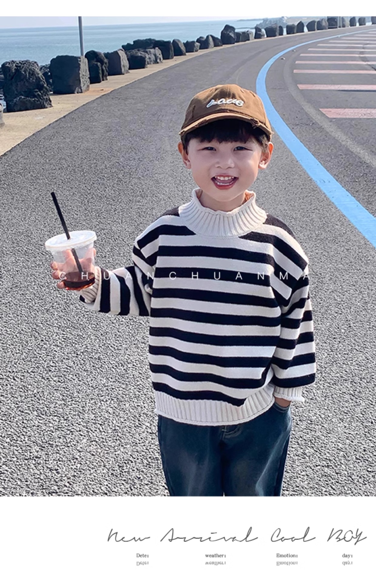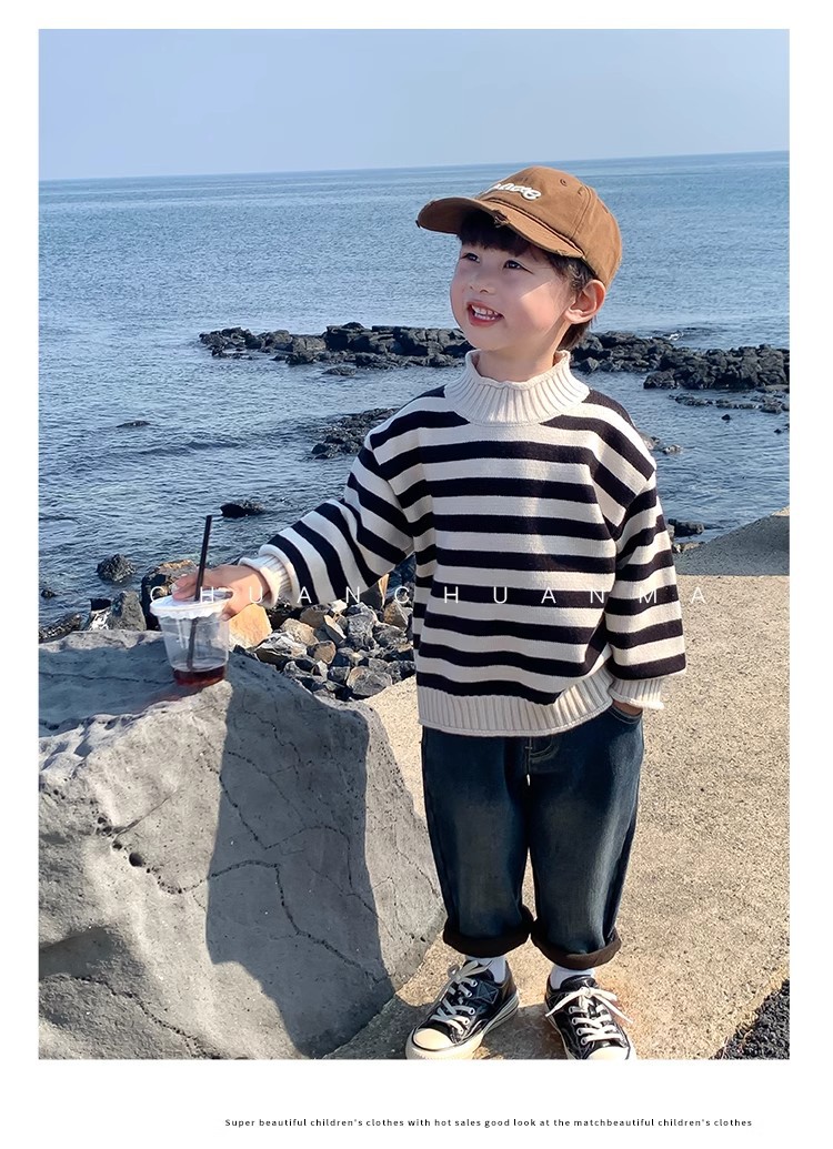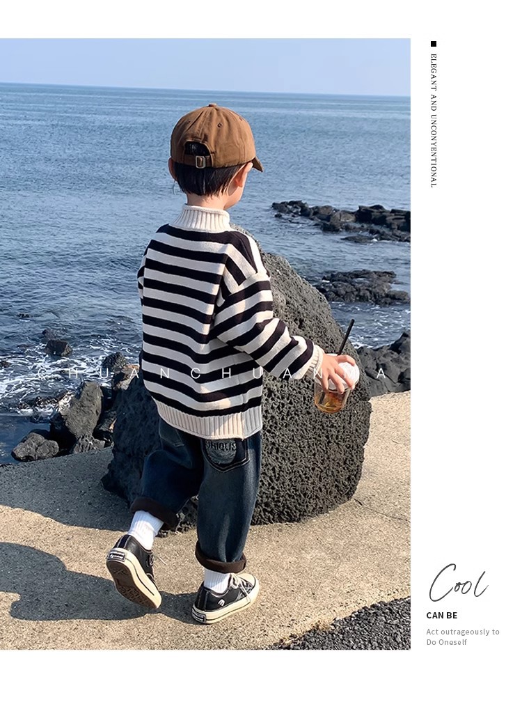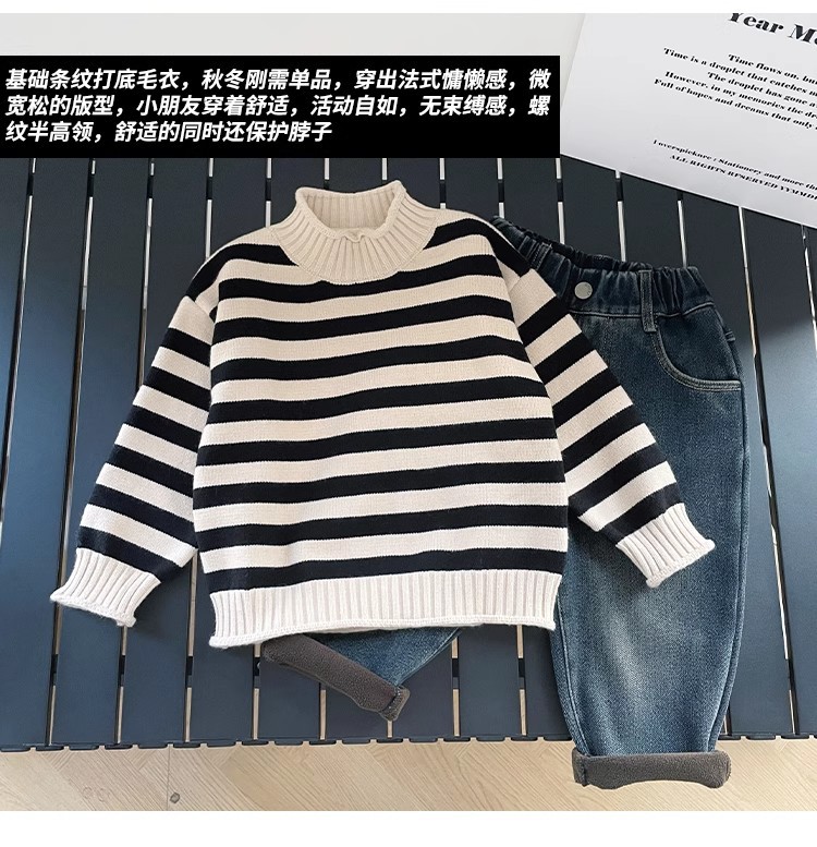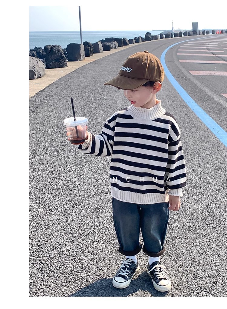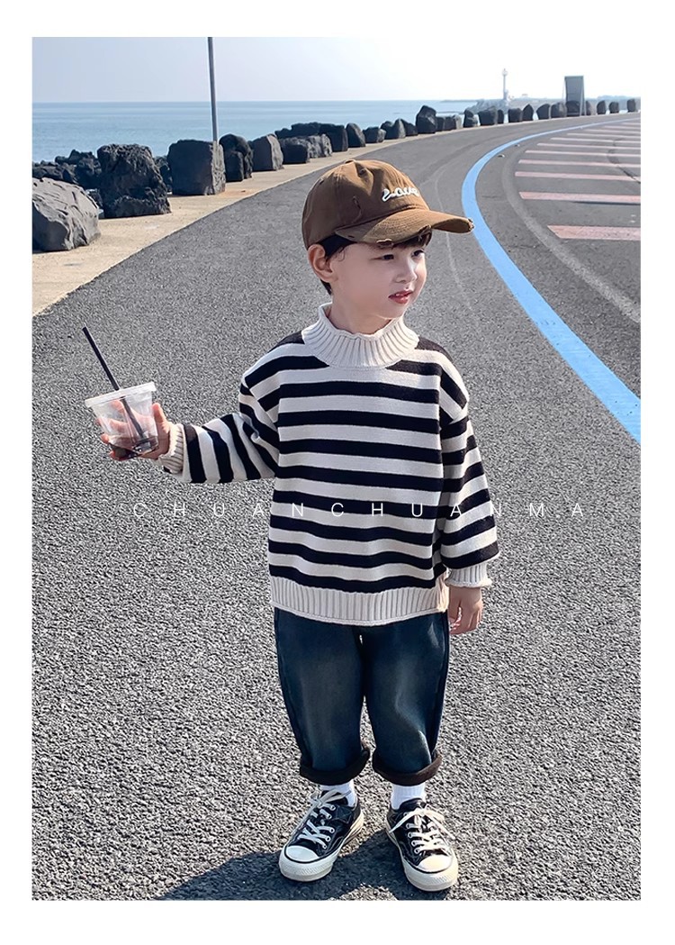 소녀 스웨터 터틀넥 가을과 겨울 소년의 두꺼운 줄무늬 내복 어린이 아기의 니트 베이스 기모 스웨터스토어 가기