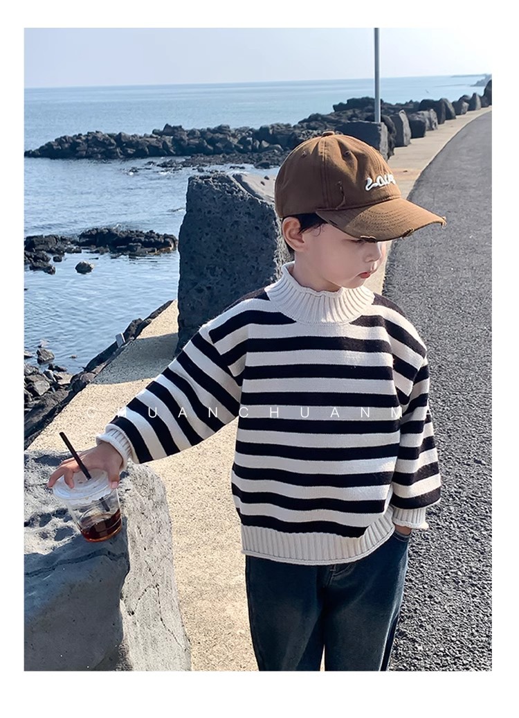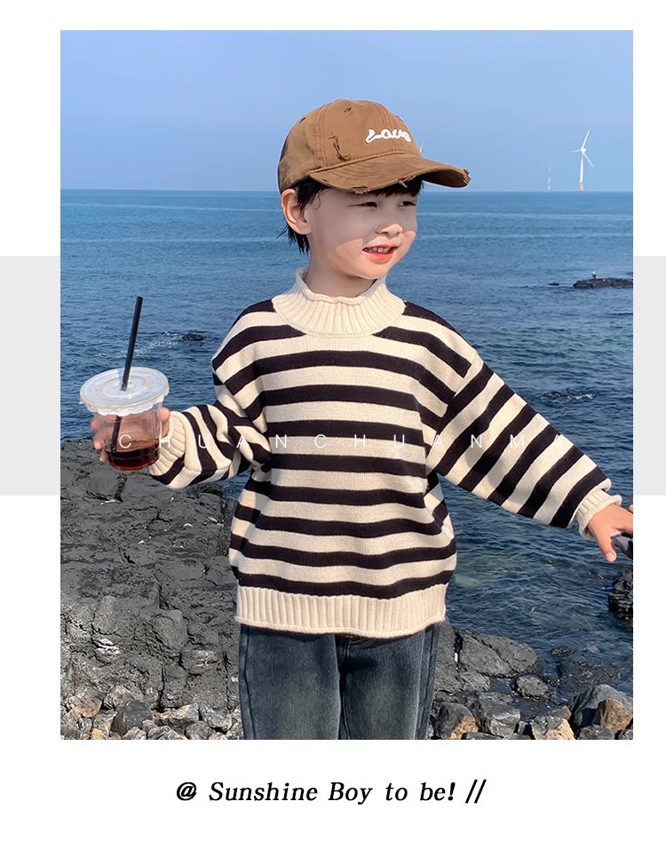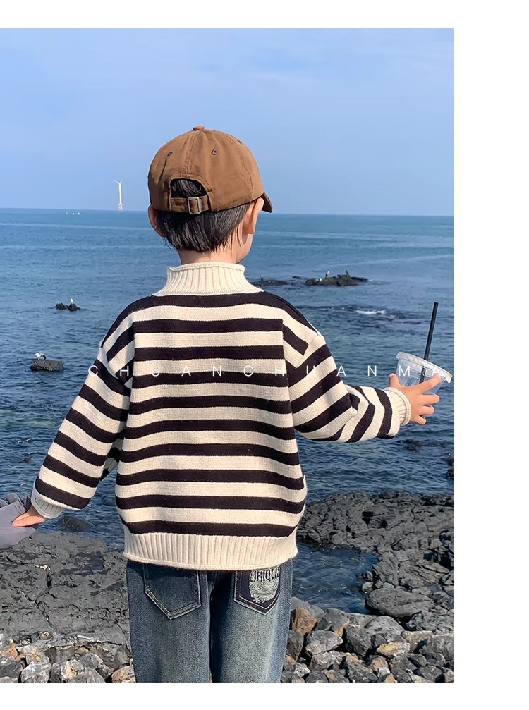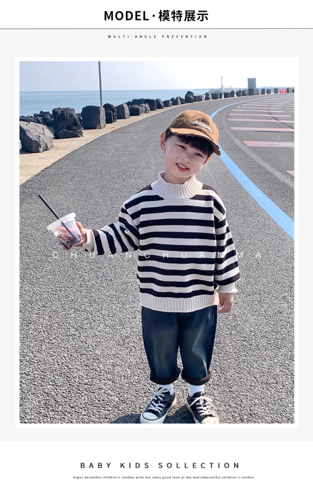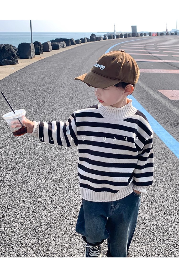 소녀 스웨터 터틀넥 가을과 겨울 소년의 두꺼운 줄무늬 내복 어린이 아기의 니트 베이스 기모 스웨터스토어 가기