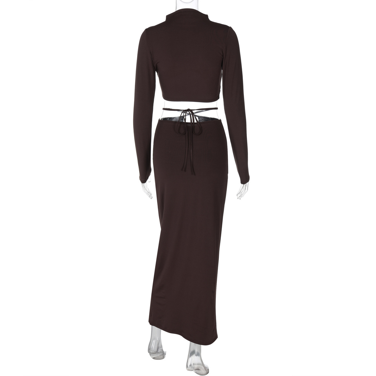 유럽과 미국 여성 의류 2025 여름 새로운 단색 긴팔 탑 슬림 레이스 업 섹시한 스커트 여성을위한 패션 정장