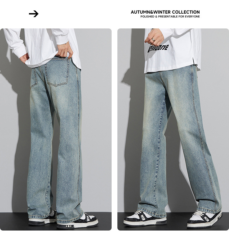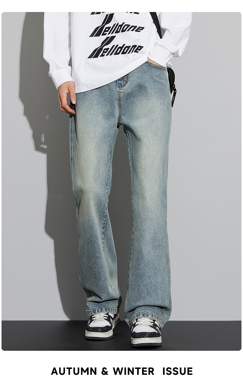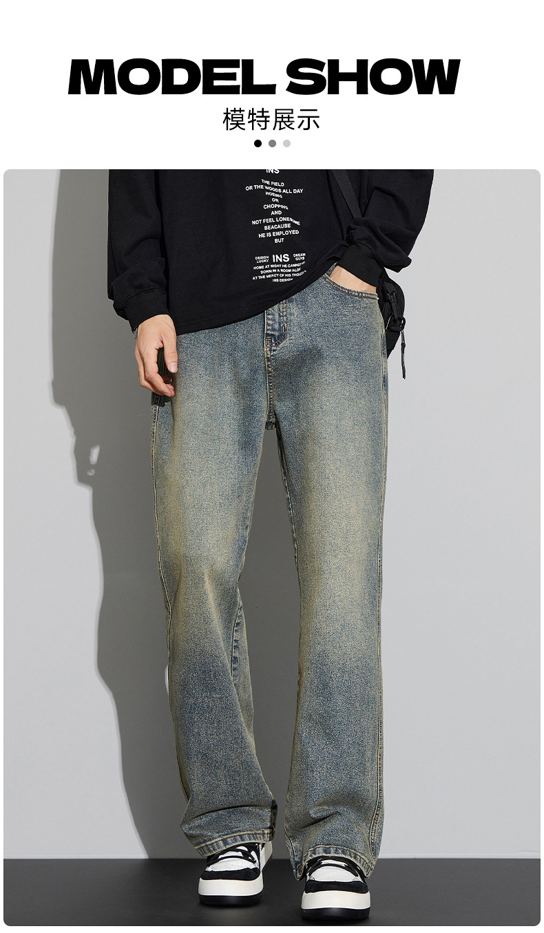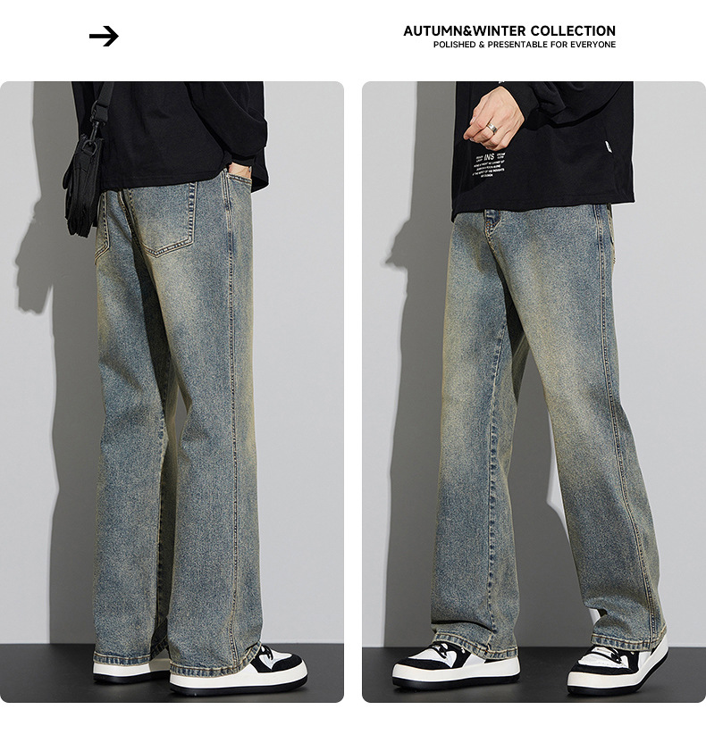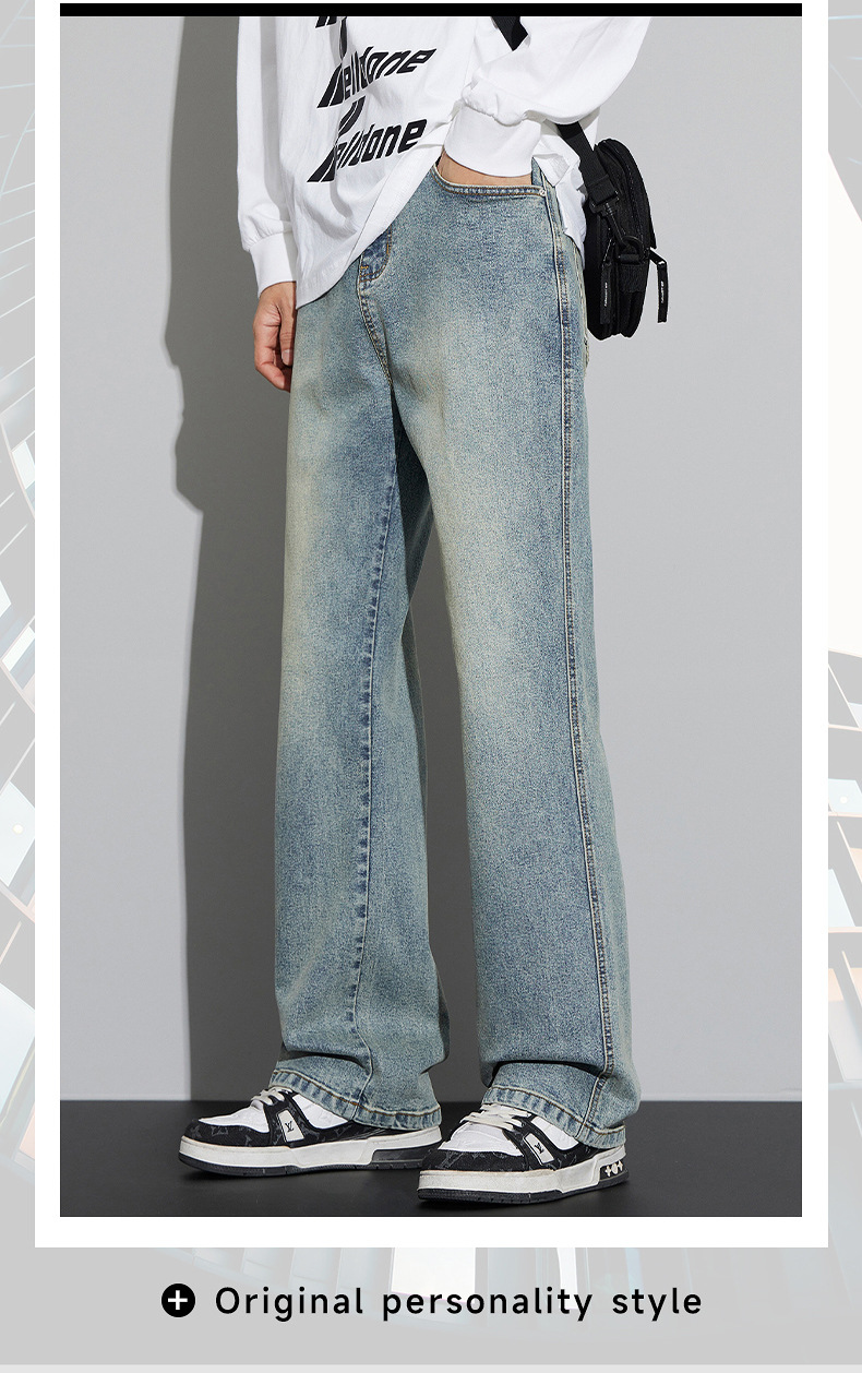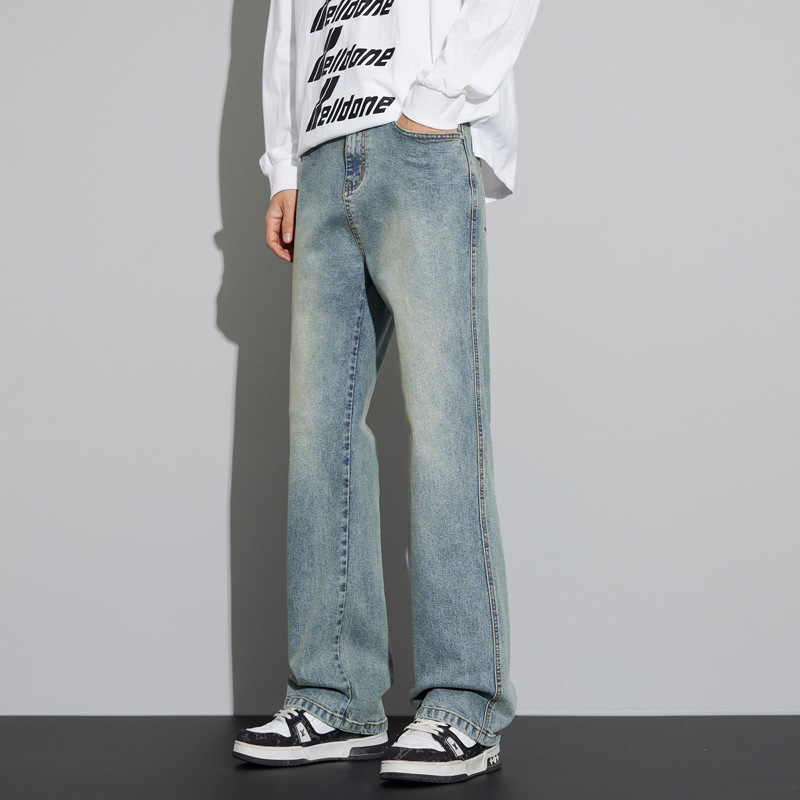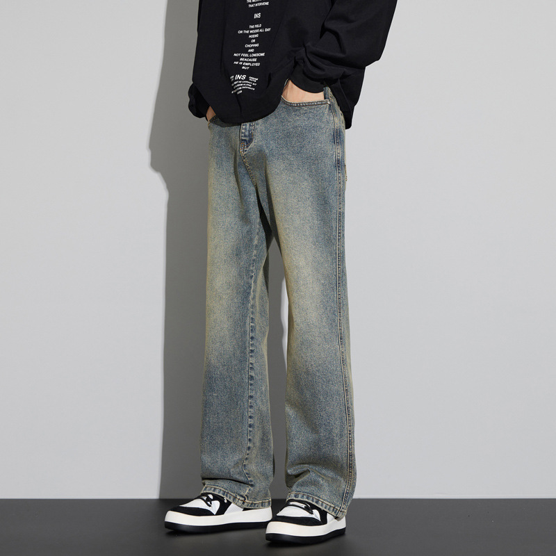 2024 가을/겨울 새로운 미국 하이 스트리트 올 매치 레트로 청바지 남자 넓은 다리 느슨한 마이크로 클린 핏 바지스토어 가기