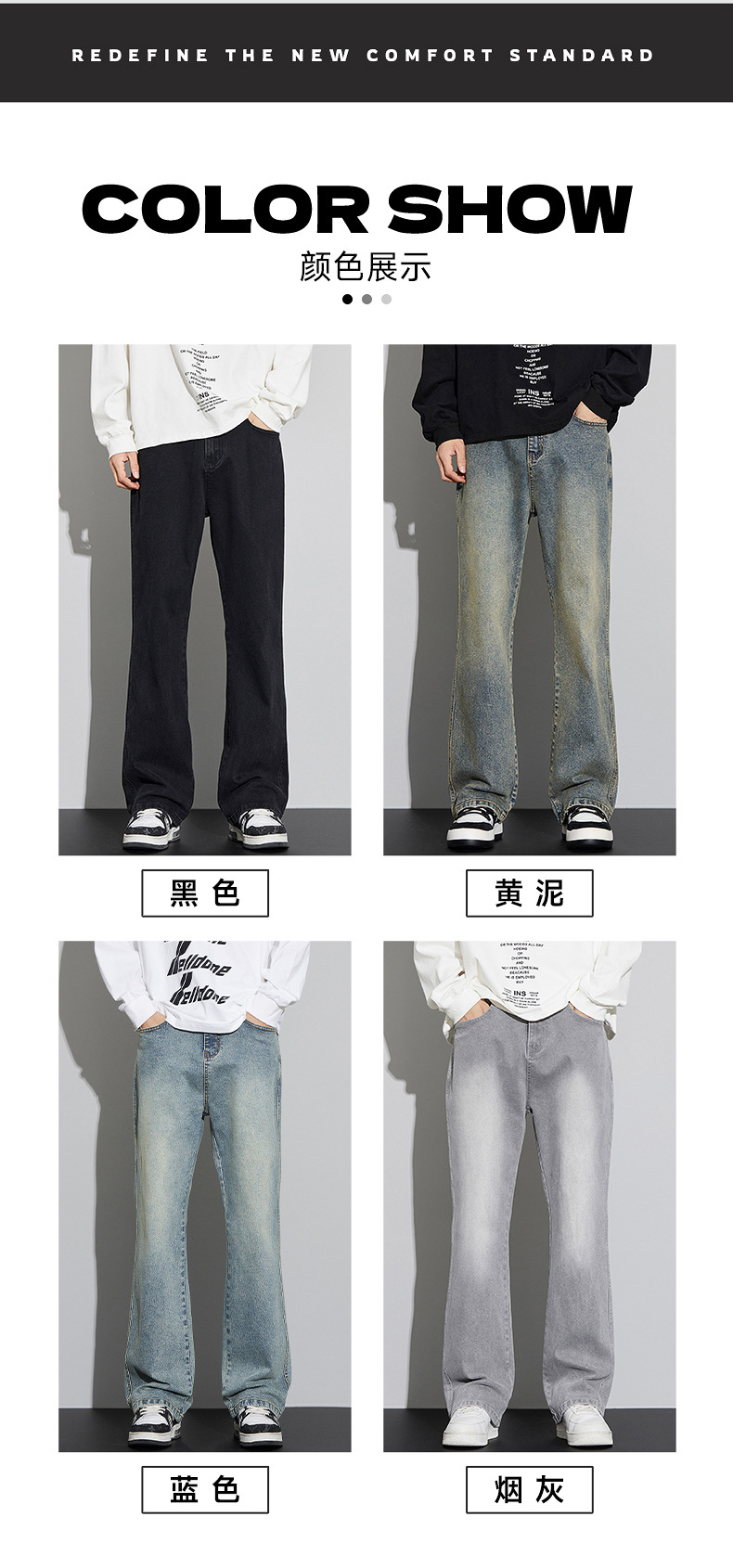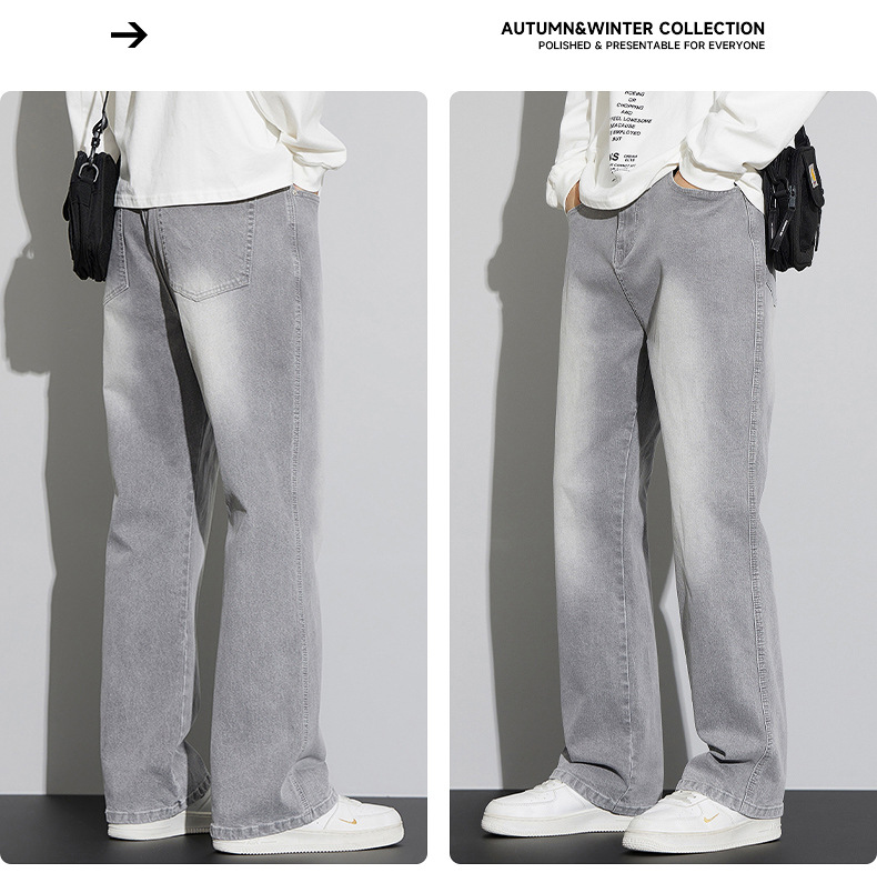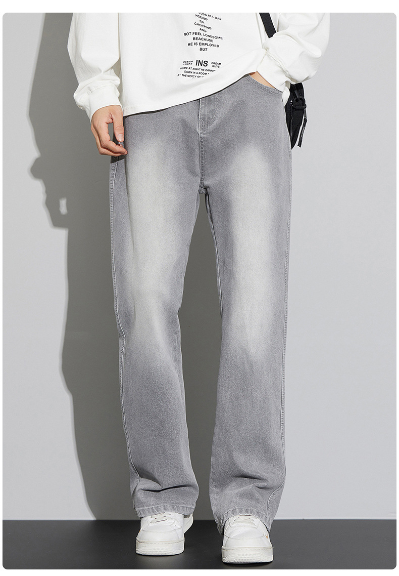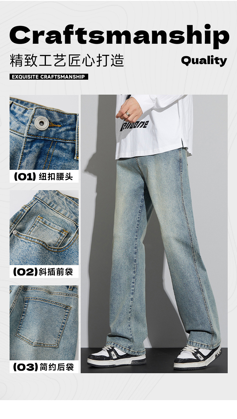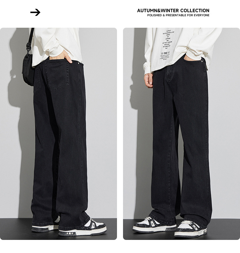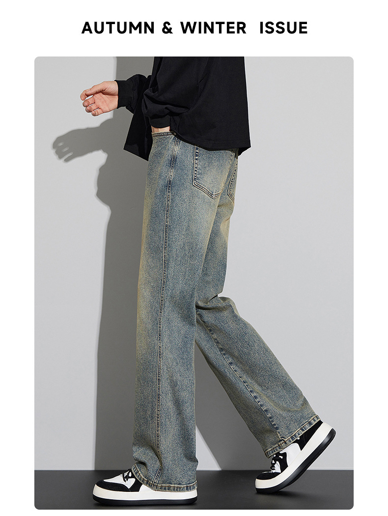 2024 가을/겨울 새로운 미국 하이 스트리트 올 매치 레트로 청바지 남자 넓은 다리 느슨한 마이크로 클린 핏 바지스토어 가기