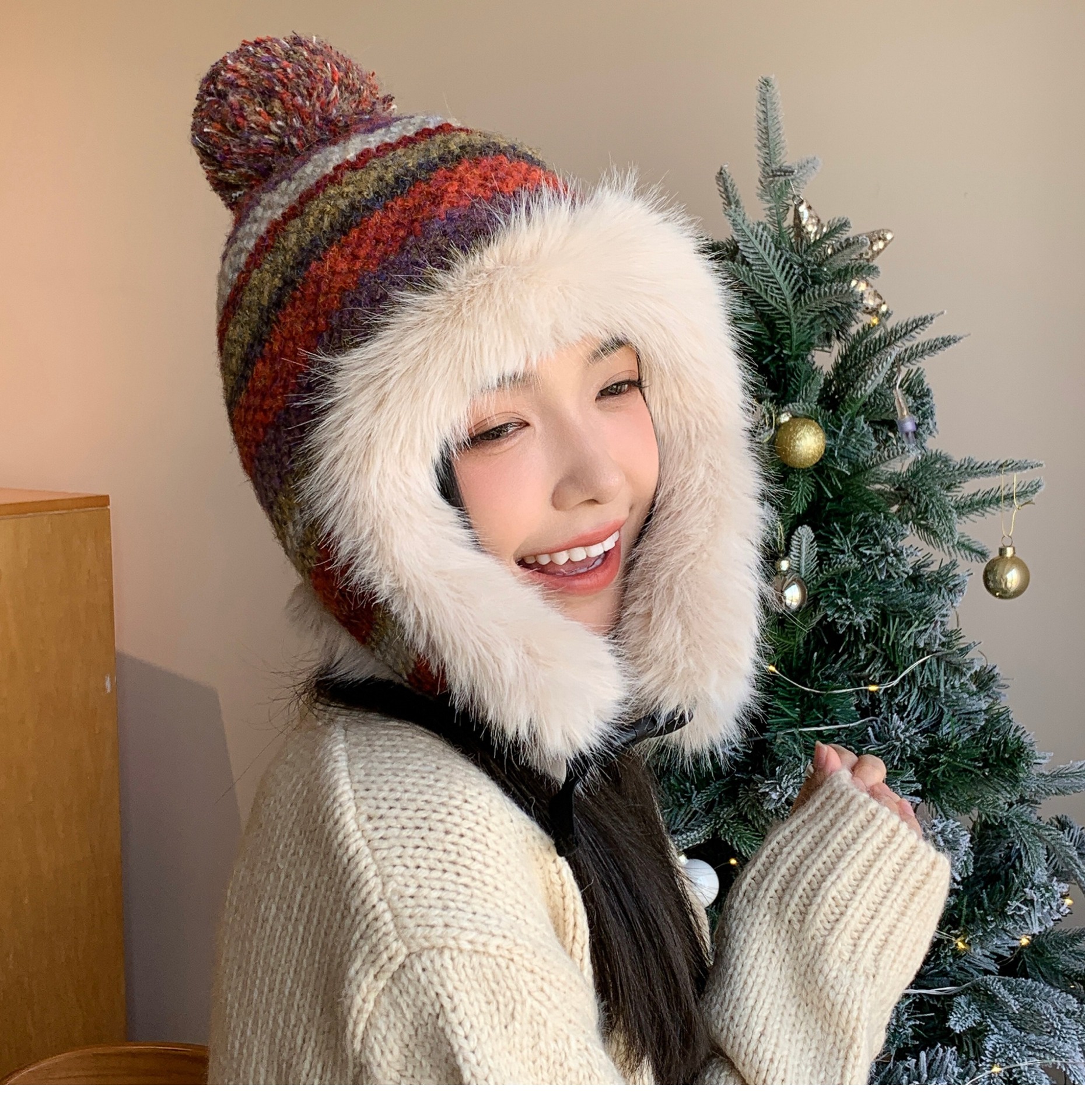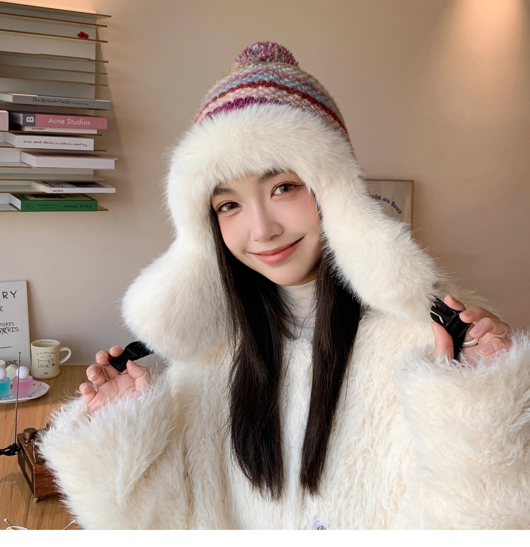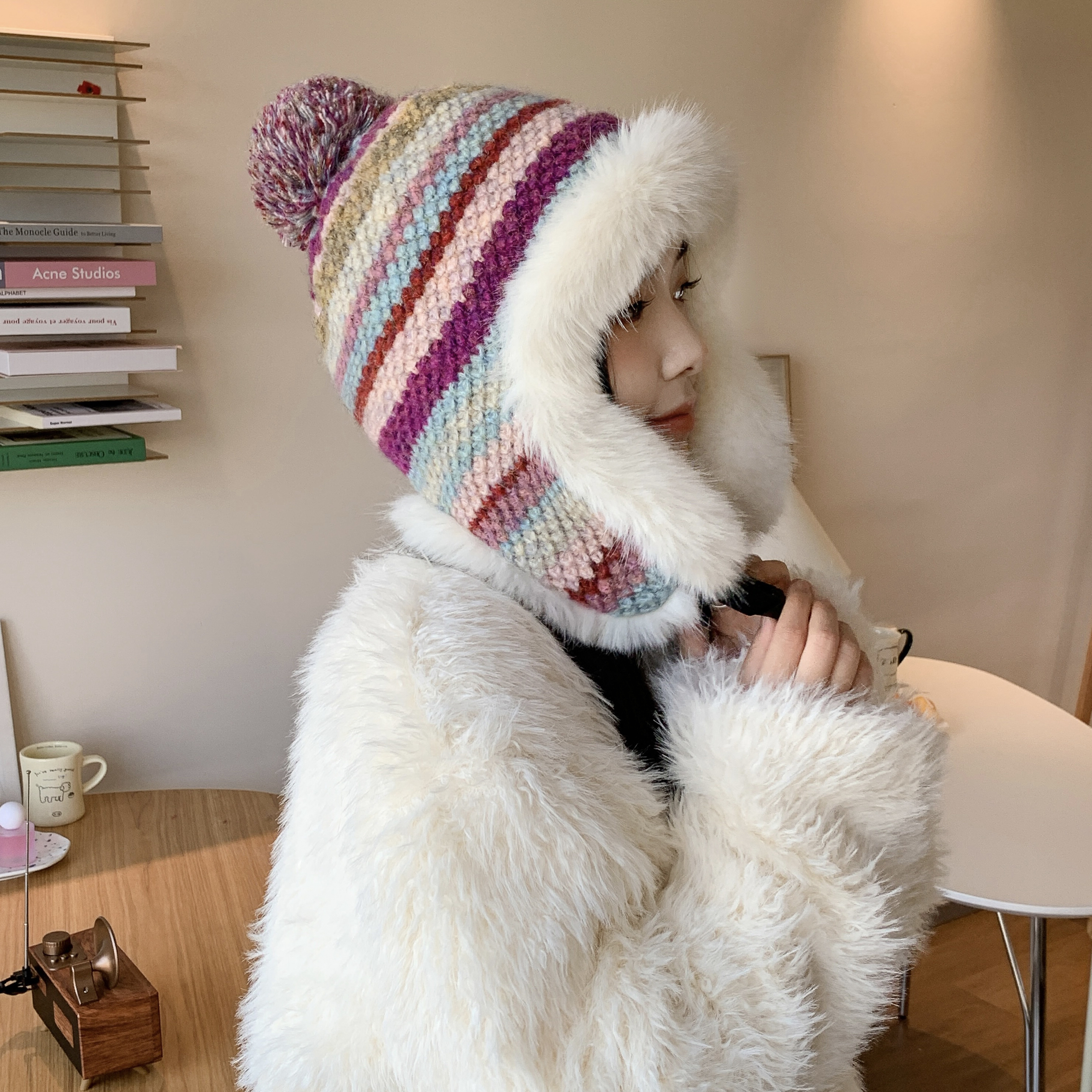 2024 새로운 레인보우 니트 레이 펑 모자 어린이 겨울 기모 두꺼운 따뜻한 귀 보호 냉장 사이클링 동북 모자스토어 가기