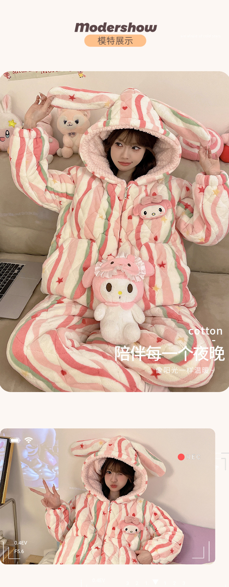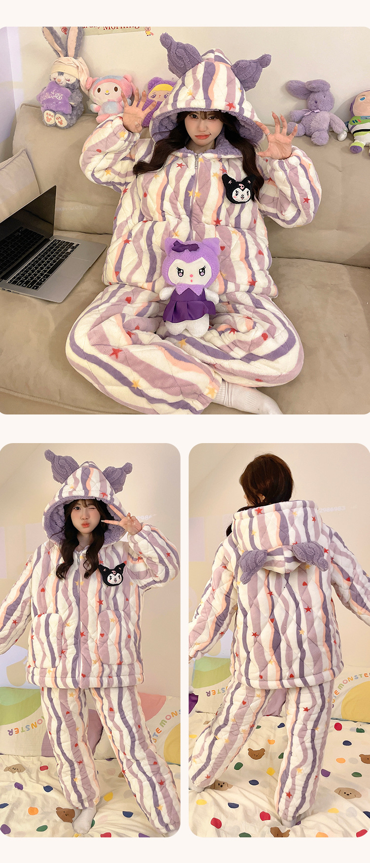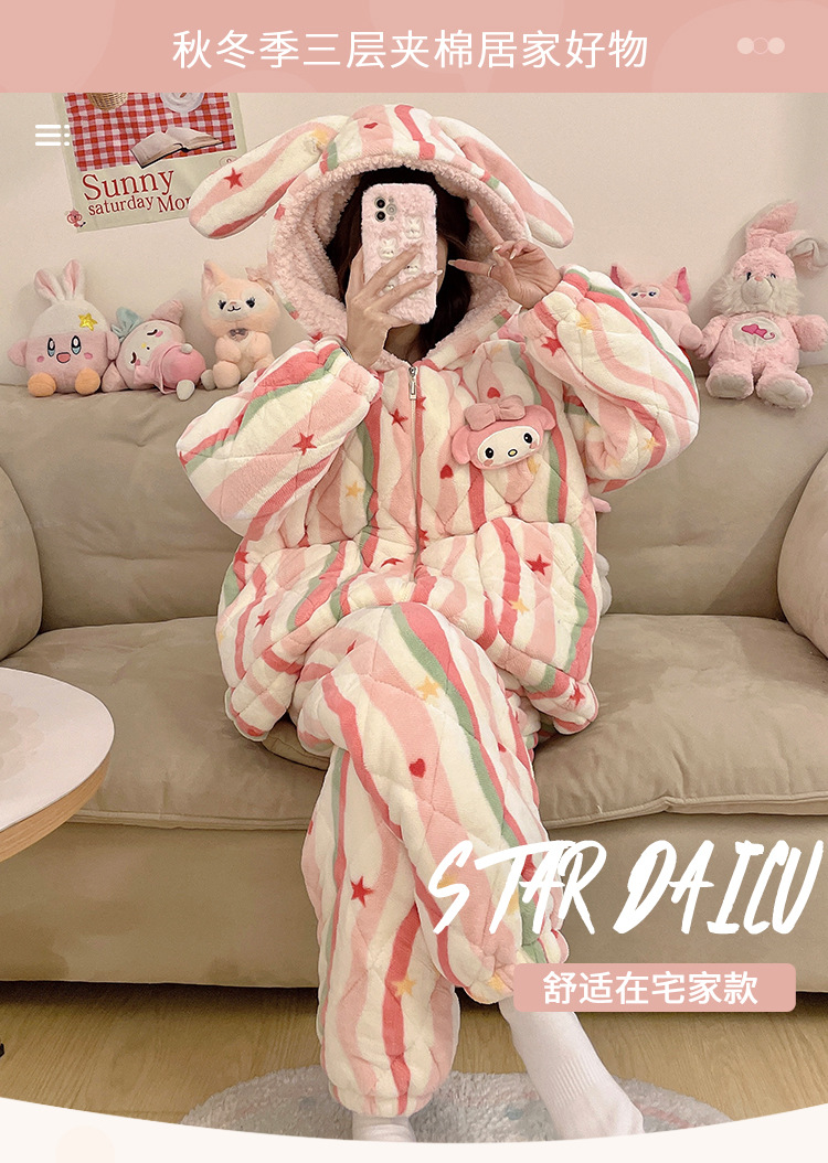 산호 양털 파자마 여성의 겨울 3 층 두께면 패딩 홈 재킷 플란넬 여성 만화 세트 새로운 스타일스토어 가기
