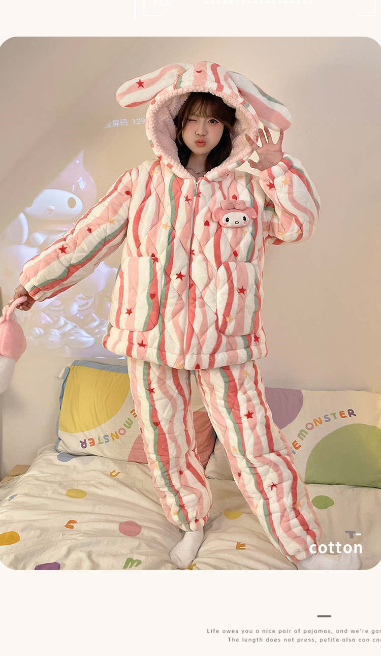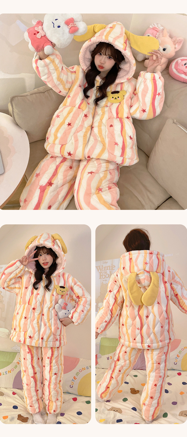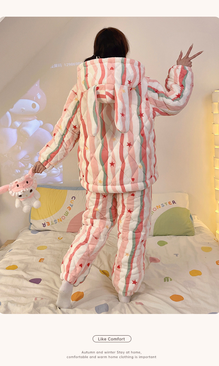 산호 양털 파자마 여성의 겨울 3 층 두께면 패딩 홈 재킷 플란넬 여성 만화 세트 새로운 스타일
