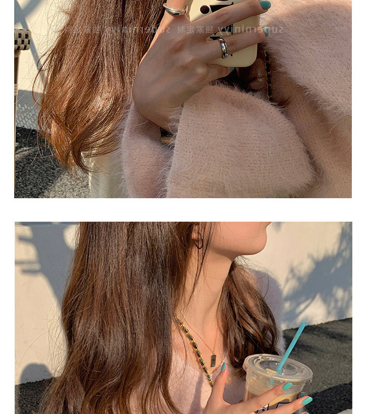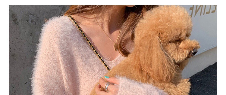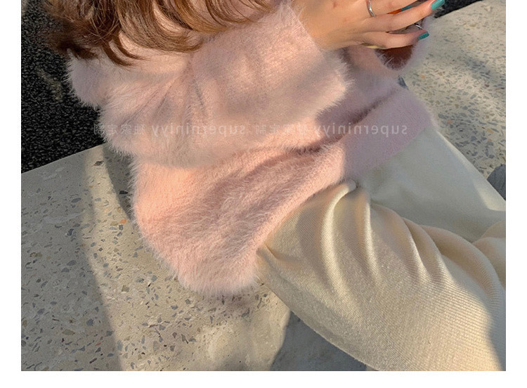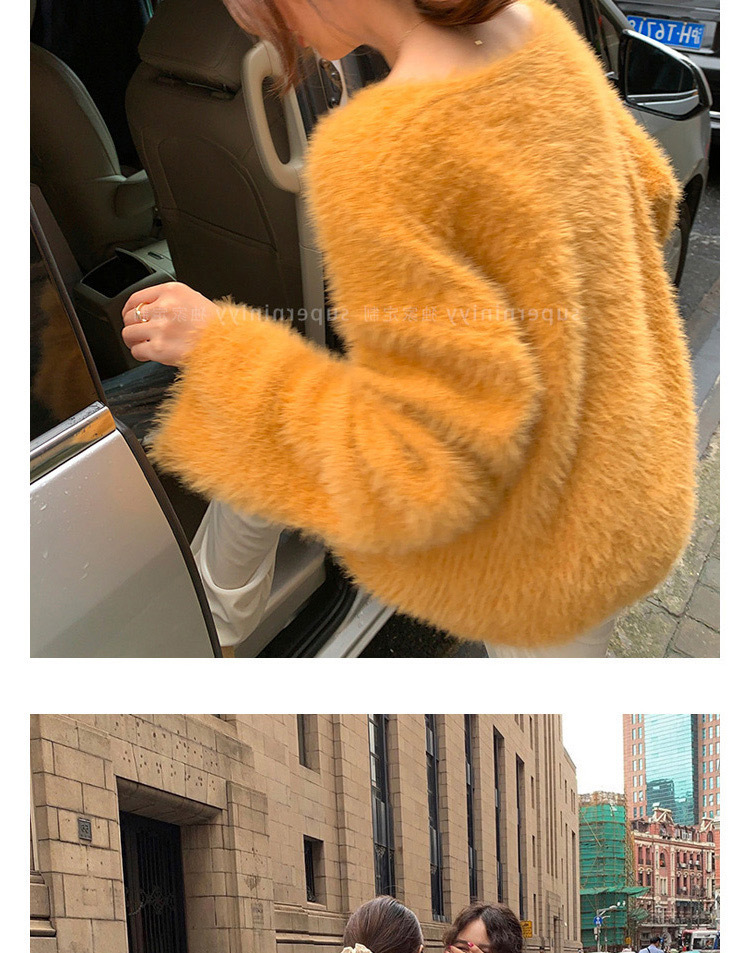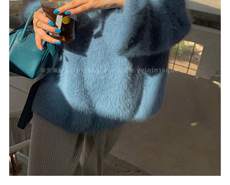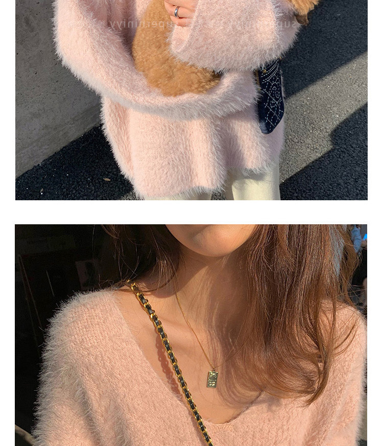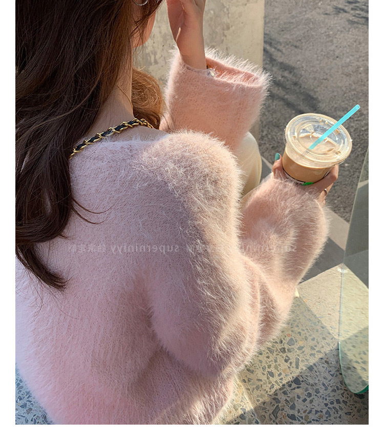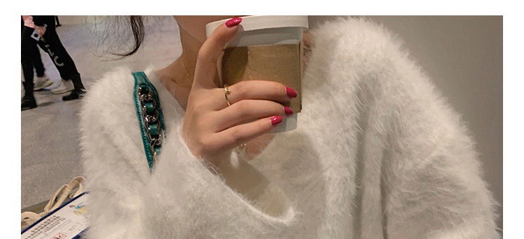 Ai Chunshi 가을과 겨울 새로운 한국 스타일 화이트 V 넥 해마 스웨터 여성의 느슨한 모방 밍크 벨벳 니트 재킷 탑