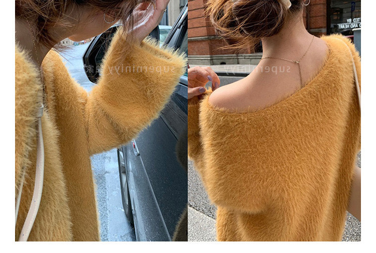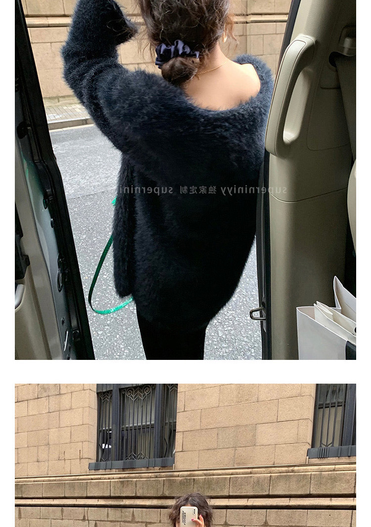 Ai Chunshi 가을과 겨울 새로운 한국 스타일 화이트 V 넥 해마 스웨터 여성의 느슨한 모방 밍크 벨벳 니트 재킷 탑스토어 가기