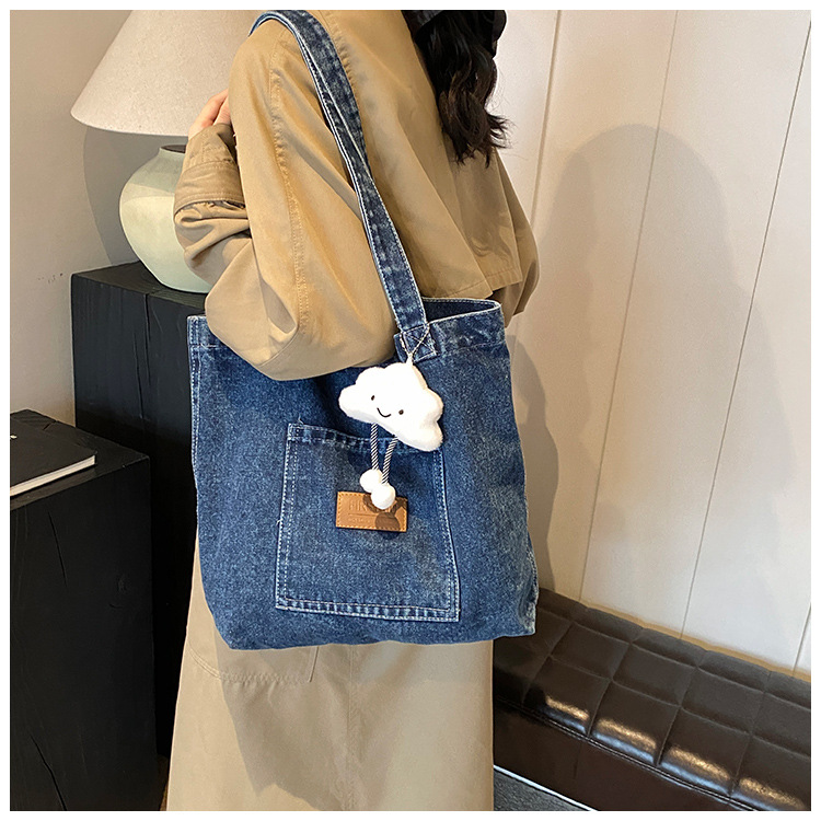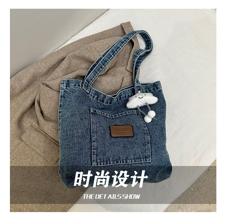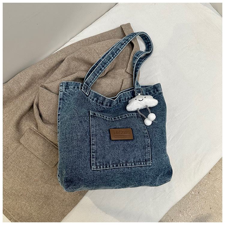 미국식 골동품 데님 가방 토트 백 트렌디 한 새로운 대용량 토트 백 유행 통근 캐주얼 숄더 백