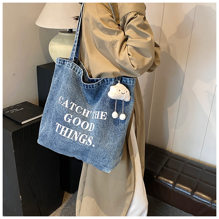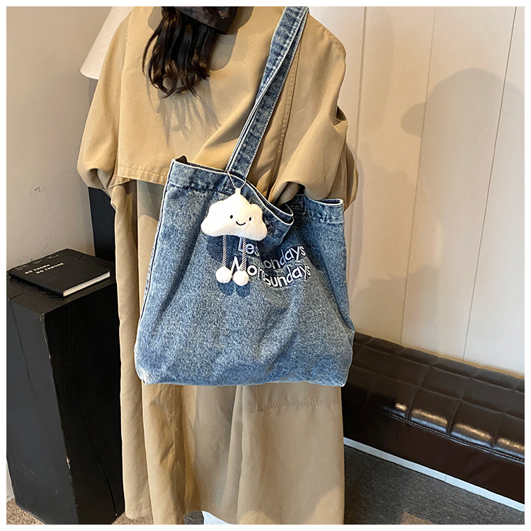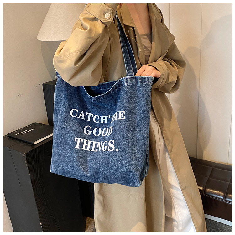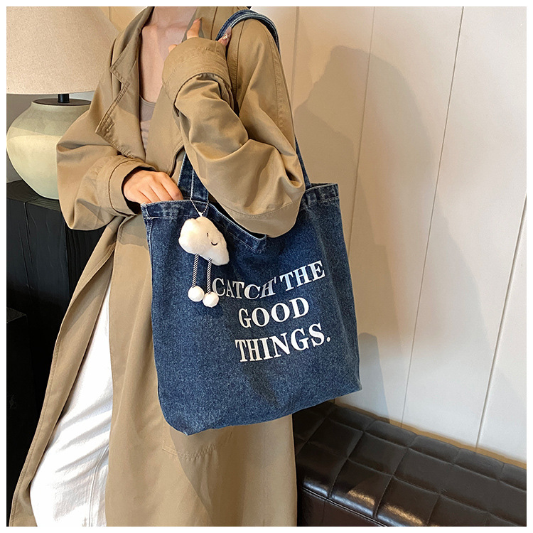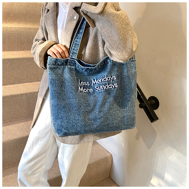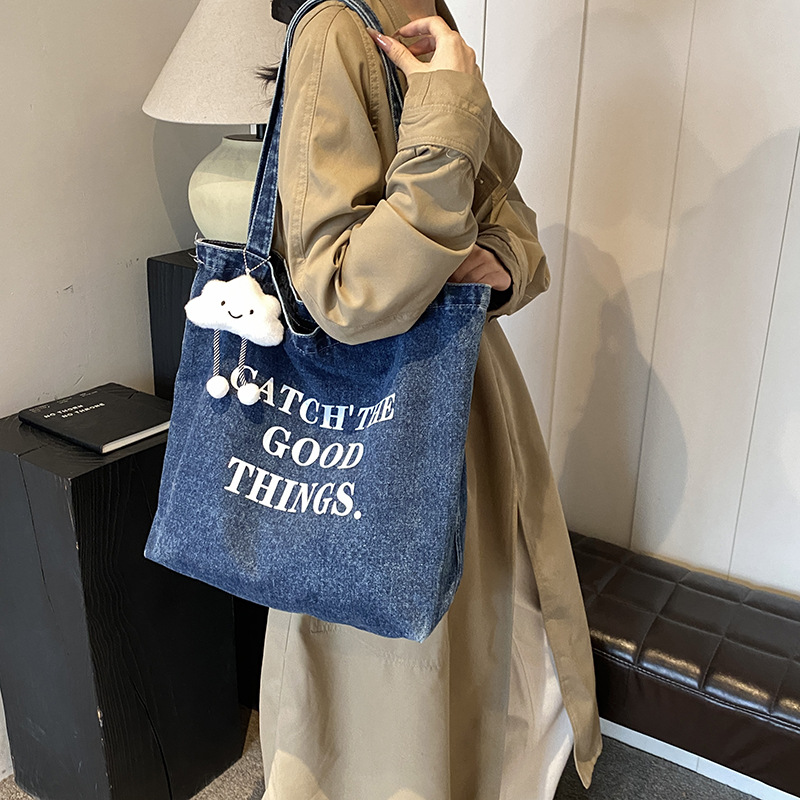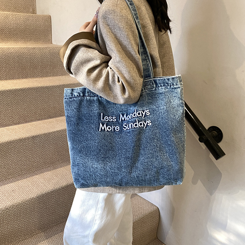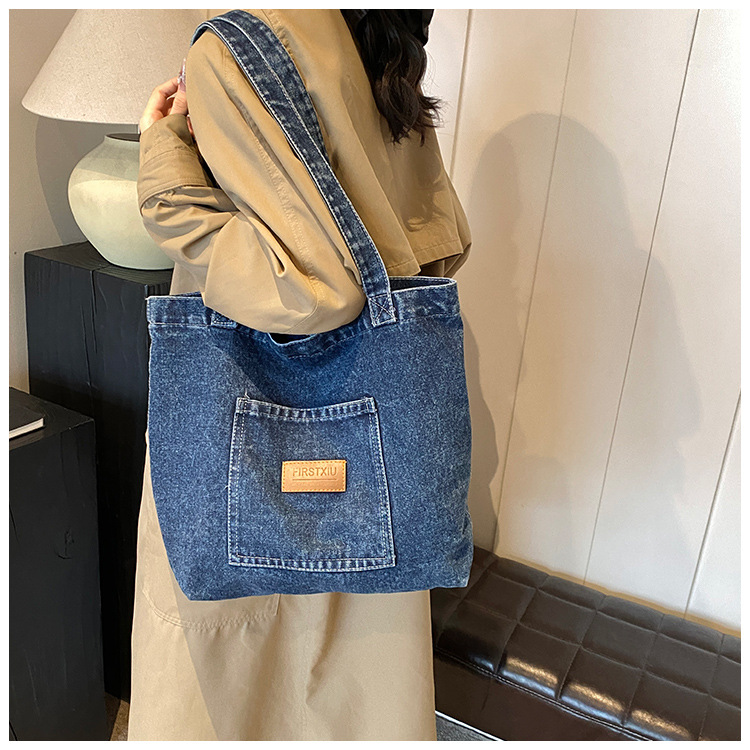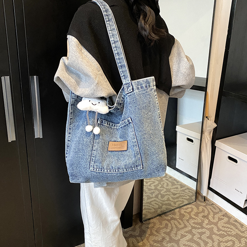 미국식 골동품 데님 가방 토트 백 트렌디 한 새로운 대용량 토트 백 유행 통근 캐주얼 숄더 백스토어 가기