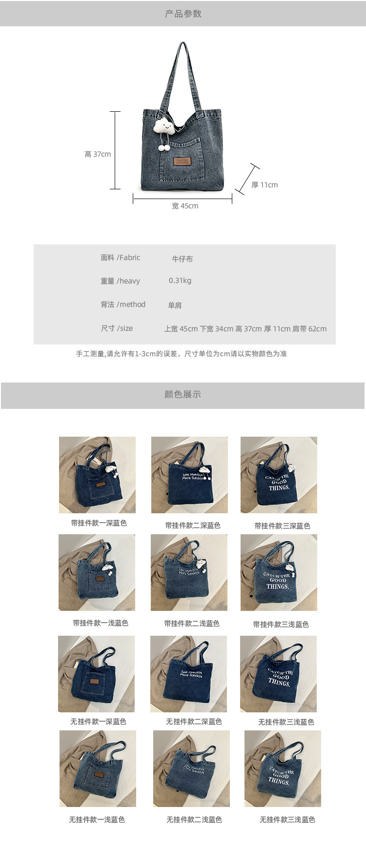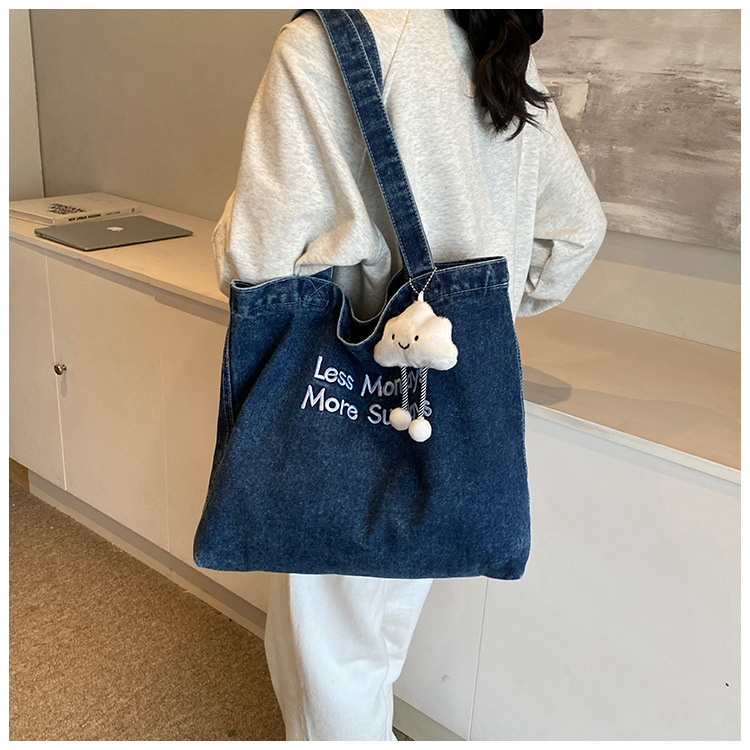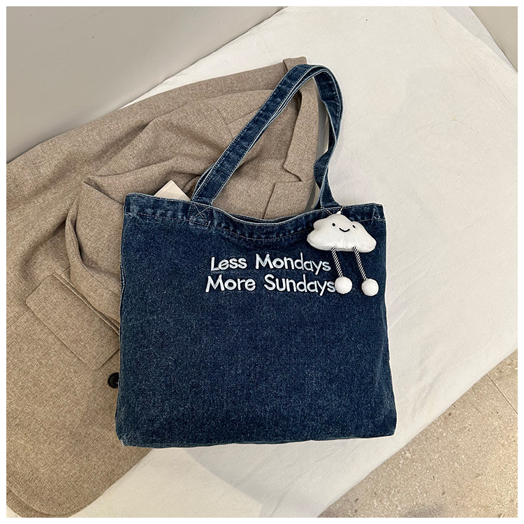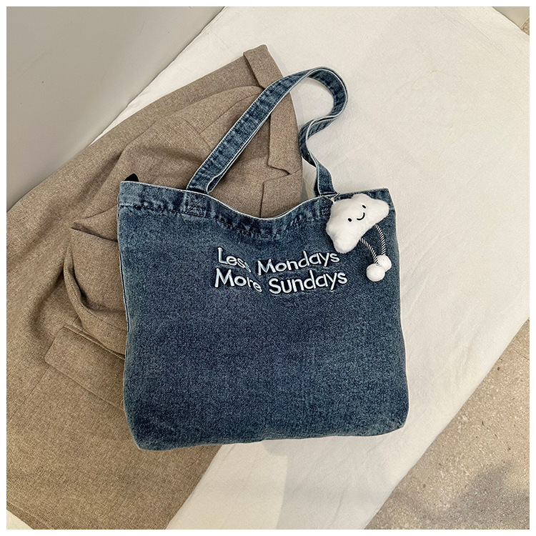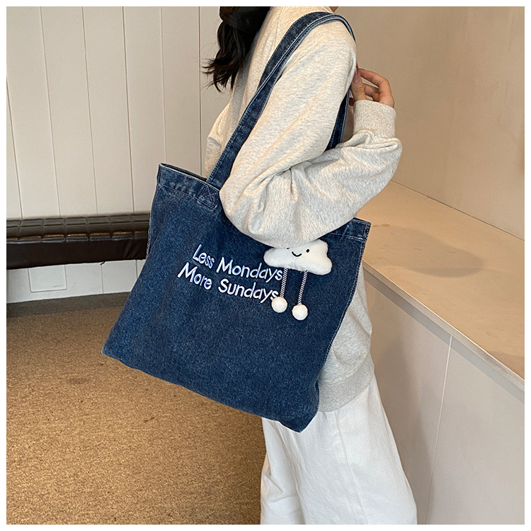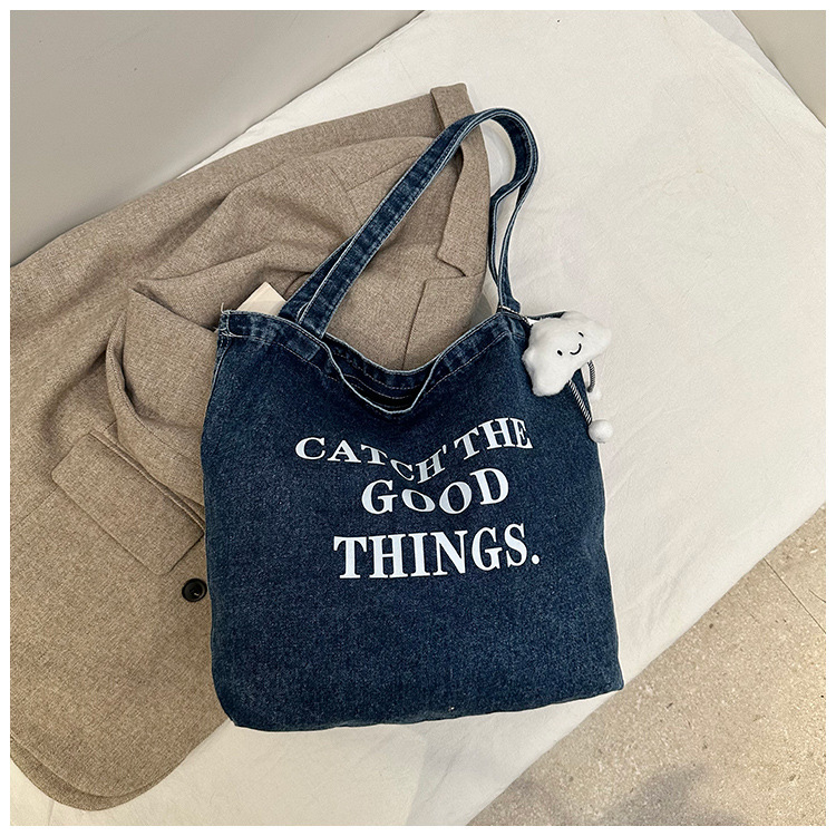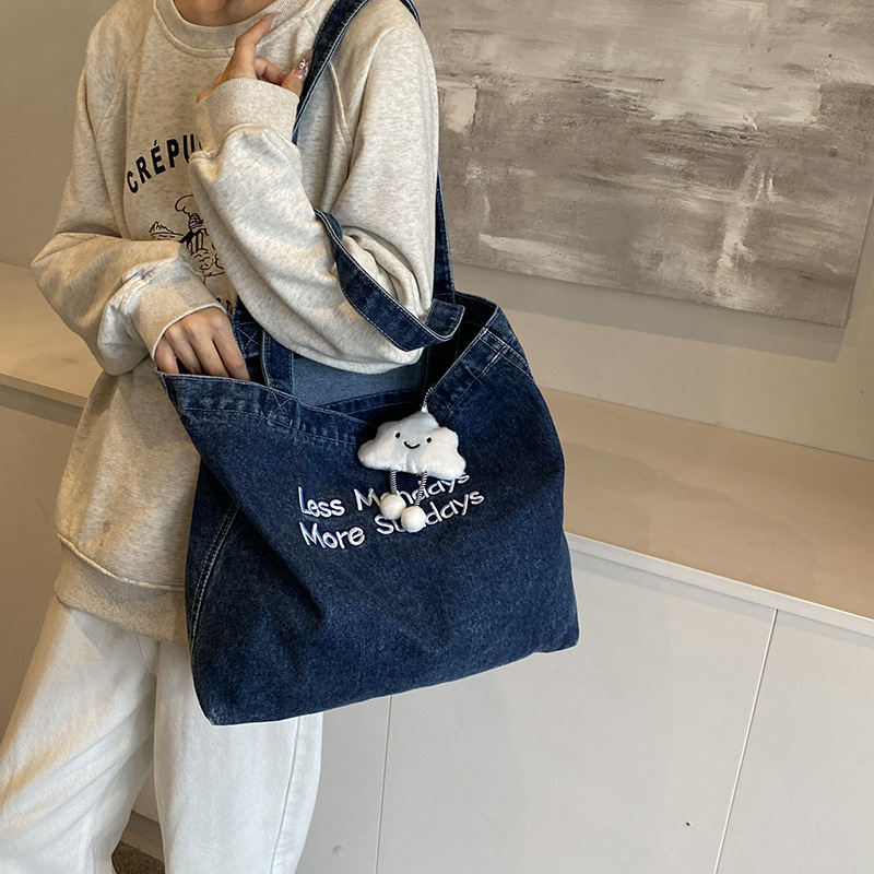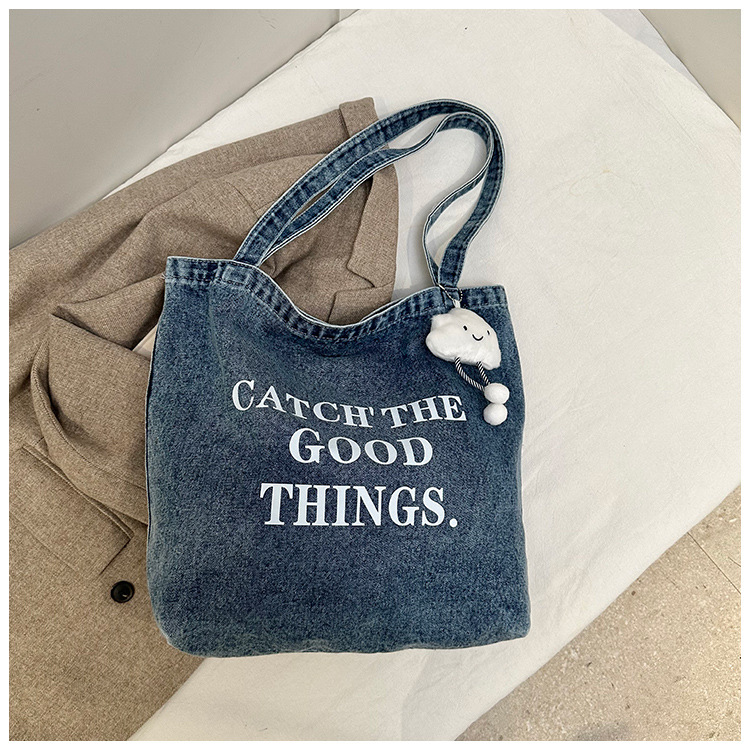 미국식 골동품 데님 가방 토트 백 트렌디 한 새로운 대용량 토트 백 유행 통근 캐주얼 숄더 백스토어 가기