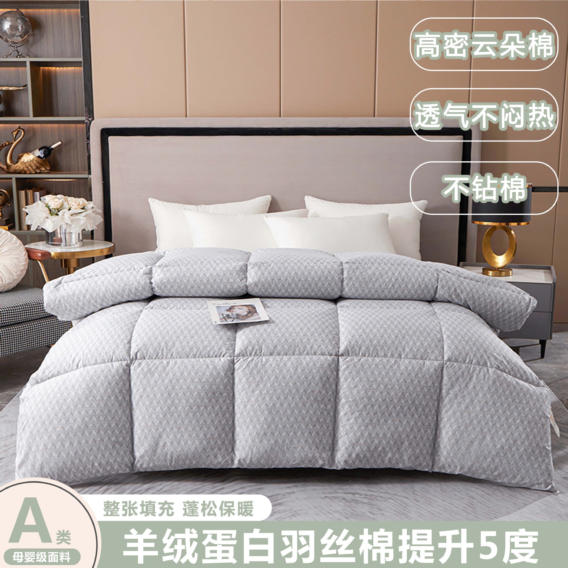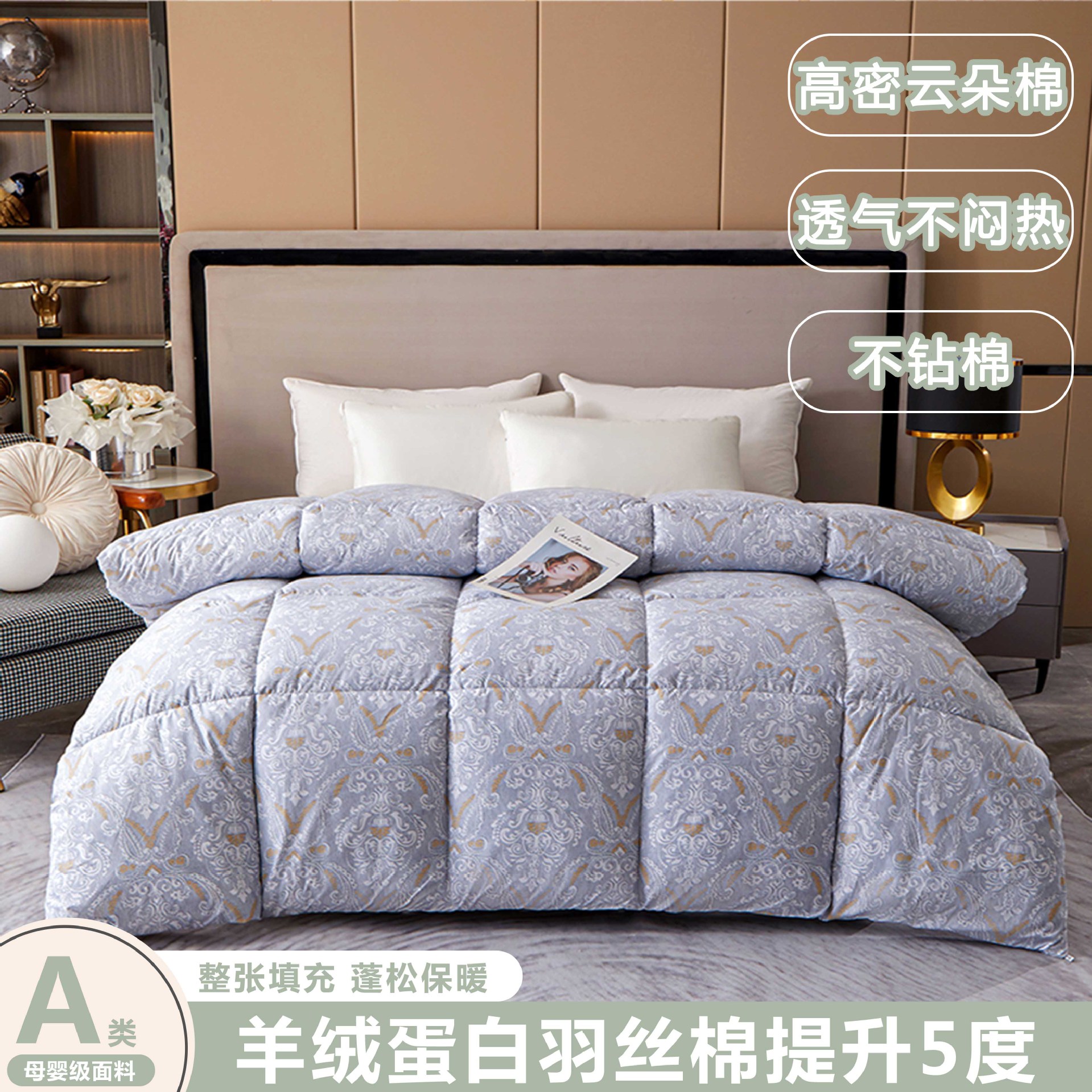 跨境新款羊绒蛋白冬被轻奢云朵棉印花保暖羽丝绒棉被子春秋夏凉被芯褥子