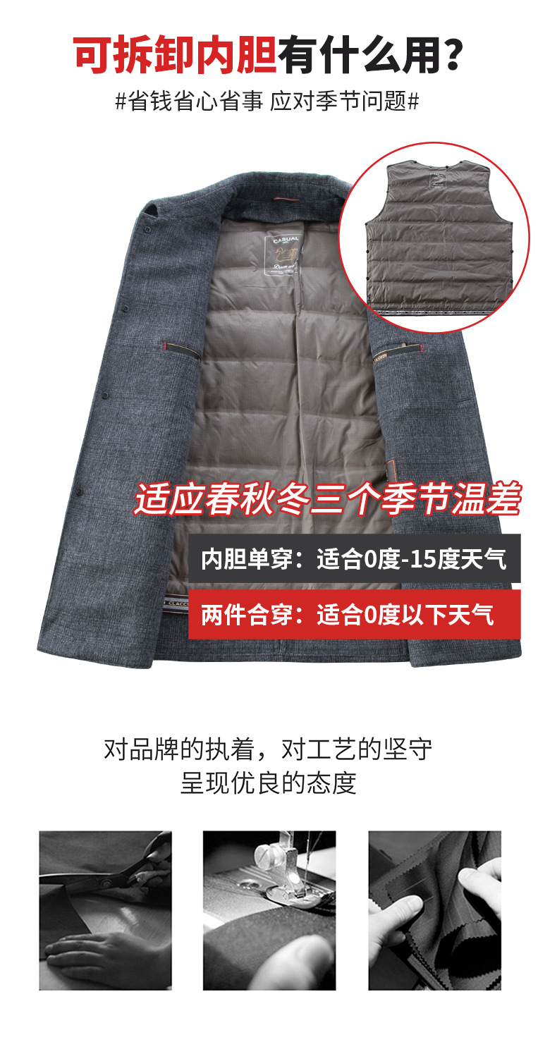 카운터 하이 엔드 가을과 겨울 중년 아빠 남성용 울 다운 라이너 양면 티트 코트 비즈니스 캐시미어 코트