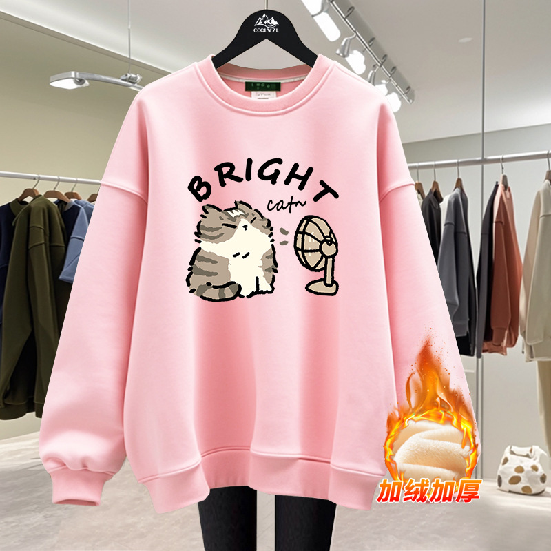 무거운 승무원 기모 두꺼운 땀 남자 여자 유니버설 2024 가을 및 겨울 폭발 느슨한 슬림 탑