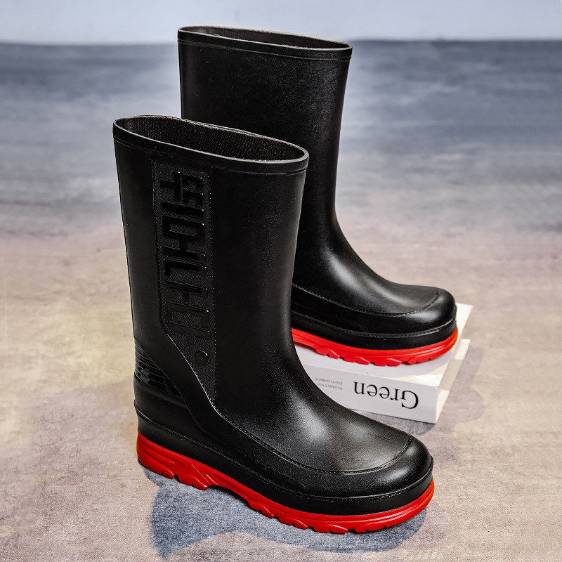국경 간 장화 중반 배럴 남성 장화 방수 미끄럼 방지 세차 테이크 아웃 주방 물 신발 거들 낚시 바다 고무 신발