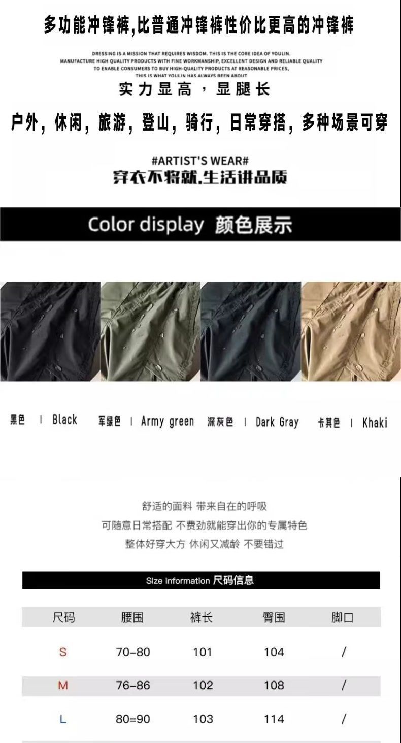 아메리칸 스타일 기능성 스타일 충전 바지 남성 봄과 가을 빠른 건조 드로우 스트링 발목 바지 야외 툴링 하이킹 바지스토어 가기