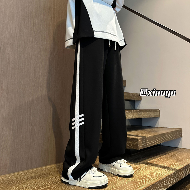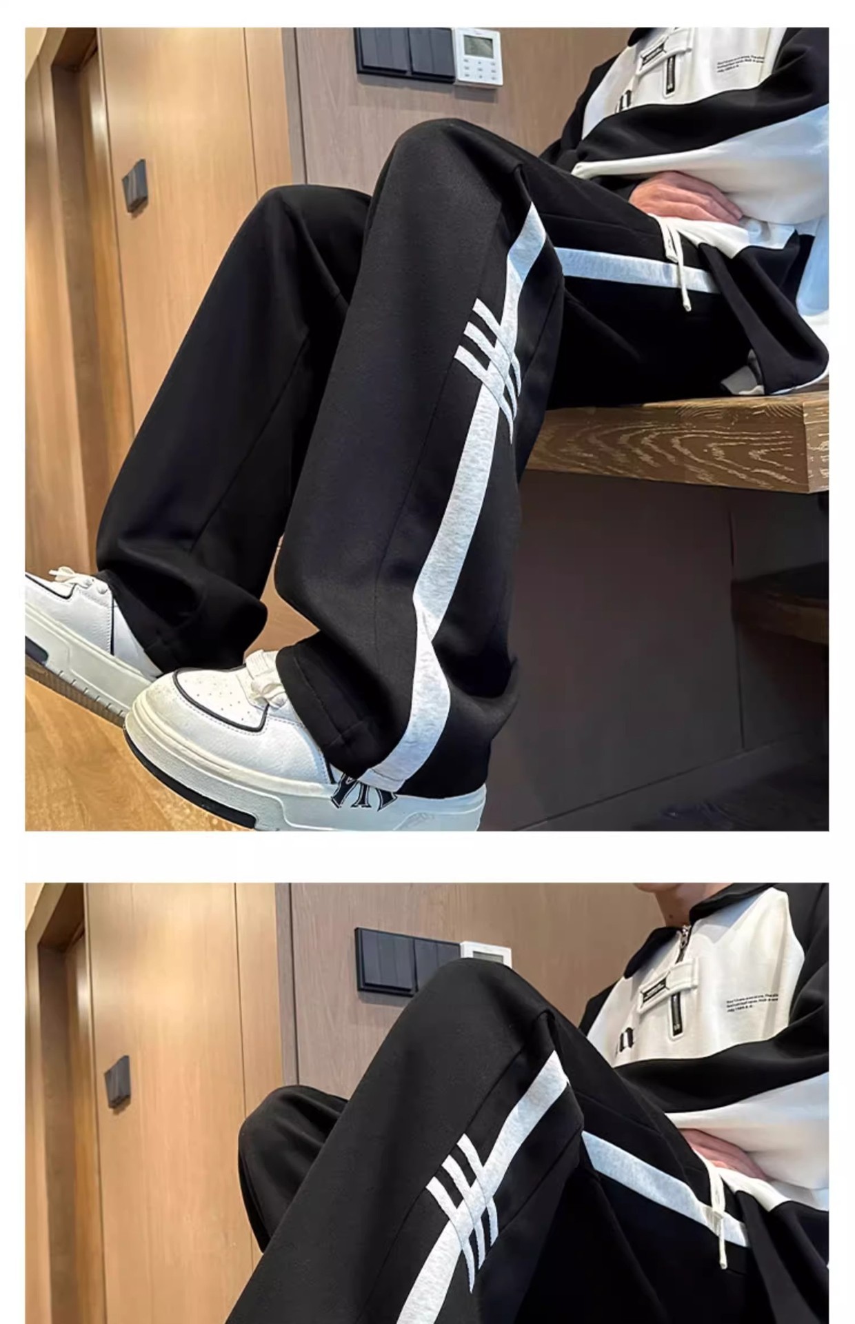 아메리칸 스타일 드로스트링 그레이 스포츠 바지 남자의 2024 새로운 가을과 겨울 스트레이트 바지 수직 캐주얼 바지 하이 스트리트 트렌디스토어 가기