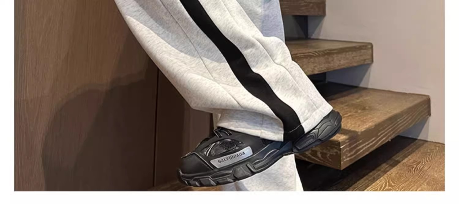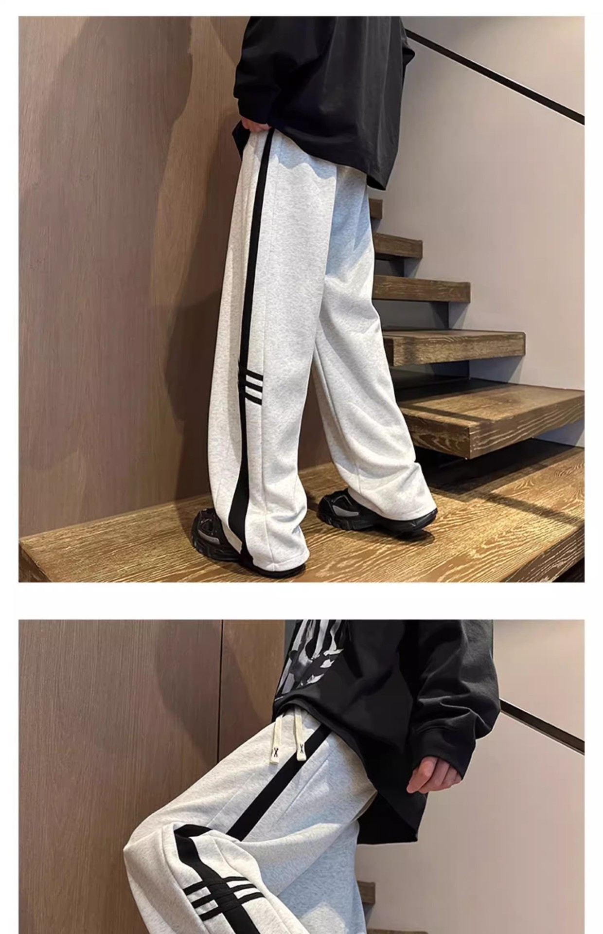 아메리칸 스타일 드로스트링 그레이 스포츠 바지 남자의 2024 새로운 가을과 겨울 스트레이트 바지 수직 캐주얼 바지 하이 스트리트 트렌디