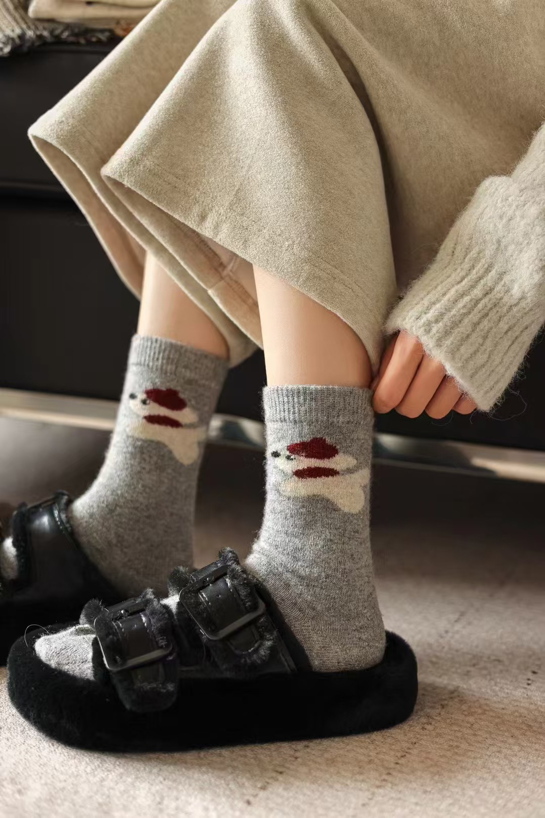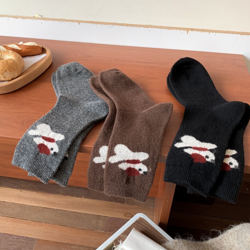 Beret Puppy 예술적 가을과 겨울 두꺼운 양모 양말 한국 동대문내 만화 더미 양말